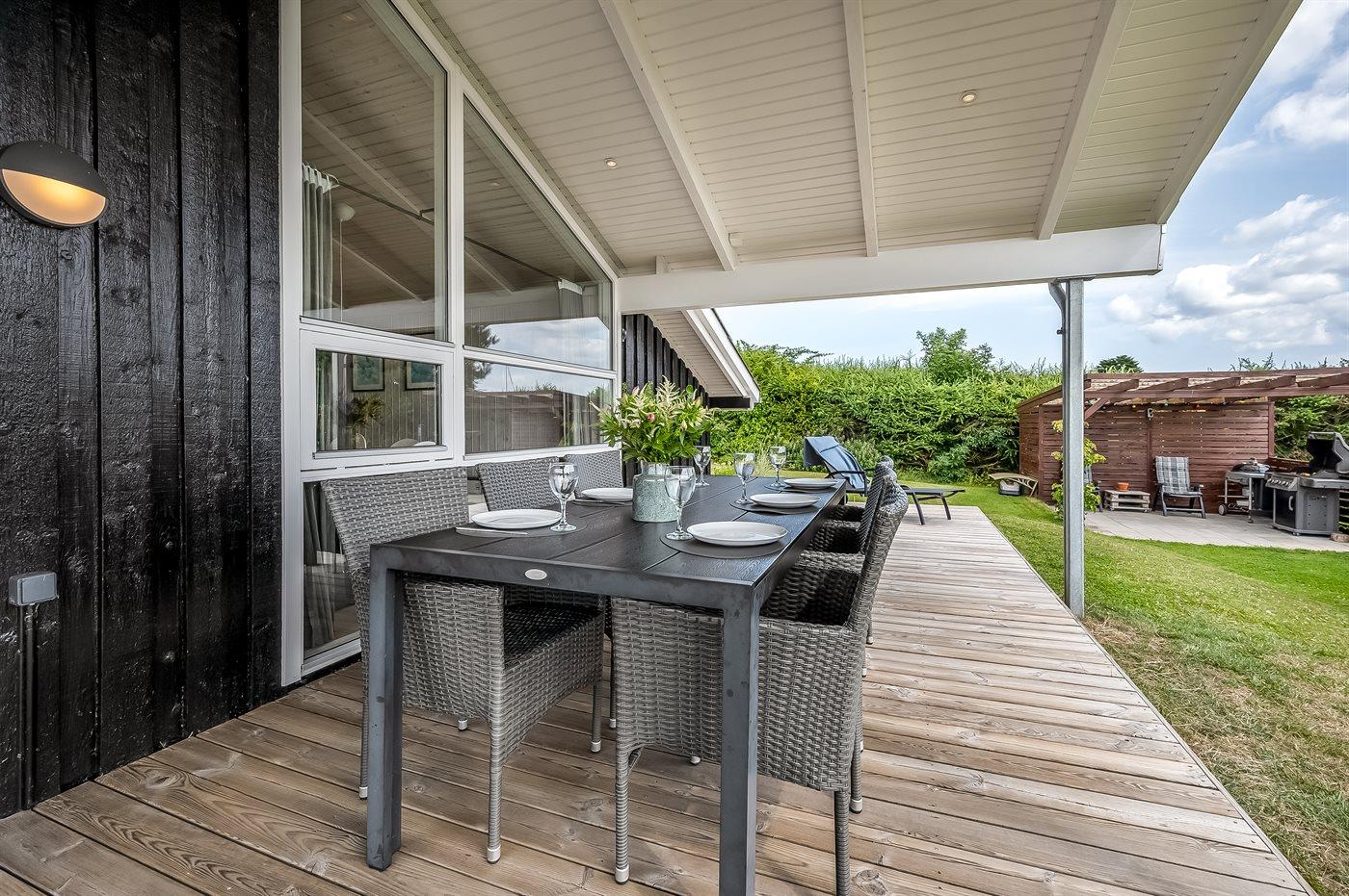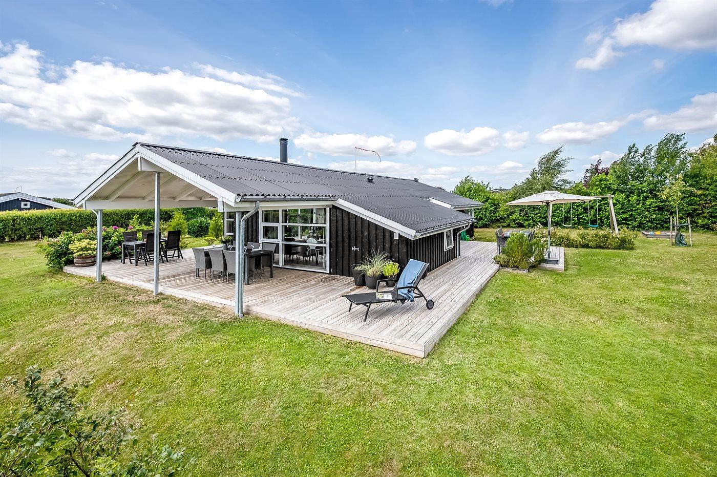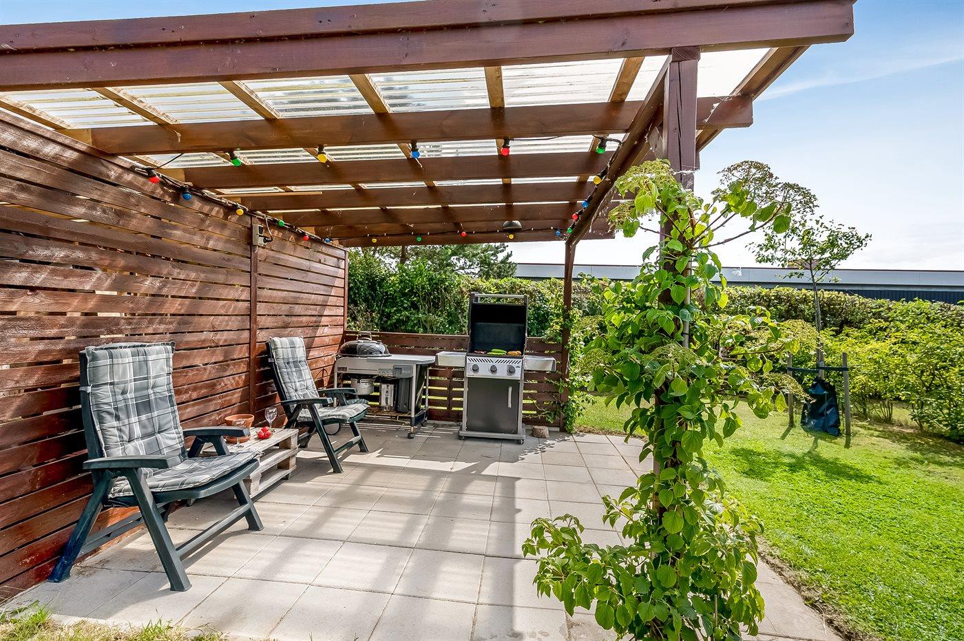 De vakantiewoning is gelegen op een 1250 m² groot aangelegde tuin. Afstand tot de zee 350 m. Dichtstbijzijnde winkel 4000 m. Bij de vakantiewoning hoort terras en 10 m2 overdekt terras. Schommel. Zandbak. Voetbaldoel.Vuurplaats. 2 Barbecues. Het huis heeft een stopcontact voor het opladen van een elektrische auto. Met 11 kW-laadvermogen. Parkeerplaats bij het huis.