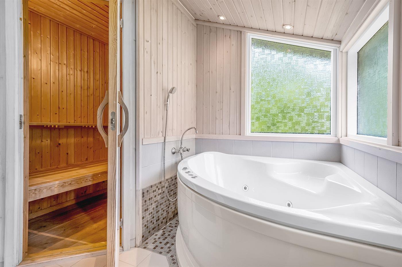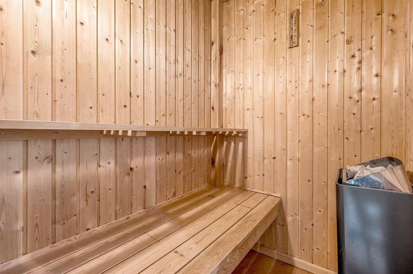 Er is 2 badkamers met douchehok en 2 toiletten. Er is vloerverwarming in 2 van de badkamers. De sauna biedt de gelegenheid tot ontspanning.