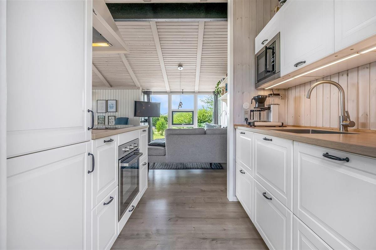 De keuken is uitgerust met koelkast Er is 4 inductiekookplaten, heteluchtoven, magnetron en vaatwasser.