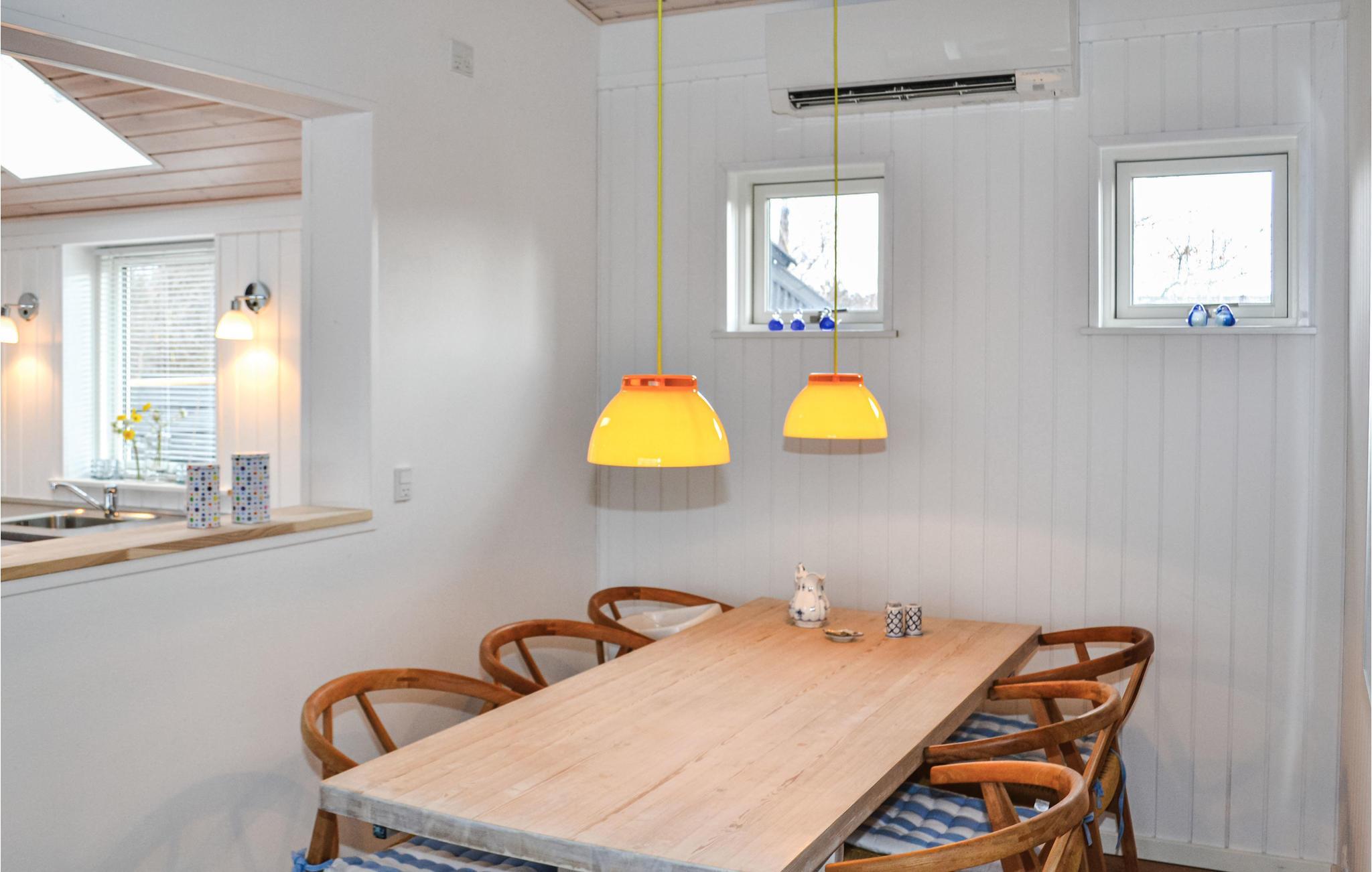 Dit moderne vakantiehuis ligt aan het populaire strand van Boeslum. Het ligt aan een rustige weg direct naar het strand. Door de lichte inrichting ziet het interieur er uitnodigend uit, zoals de slaapkamers en een goed uitgeruste keuken. Als u thuiskomt na het zwemmen in de zee, kunt u ook gebruikmaken van de buitendouche. Er zijn mooie terrassen rondom het huis waar u buiten kunt genieten van uw maaltijden en bij mooi weer een zonnig plekje kunt vinden. Het hele terrein is omgeven door een 180 cm hoge omheining en er is een hondenruimte met kooi in het bijgebouw.