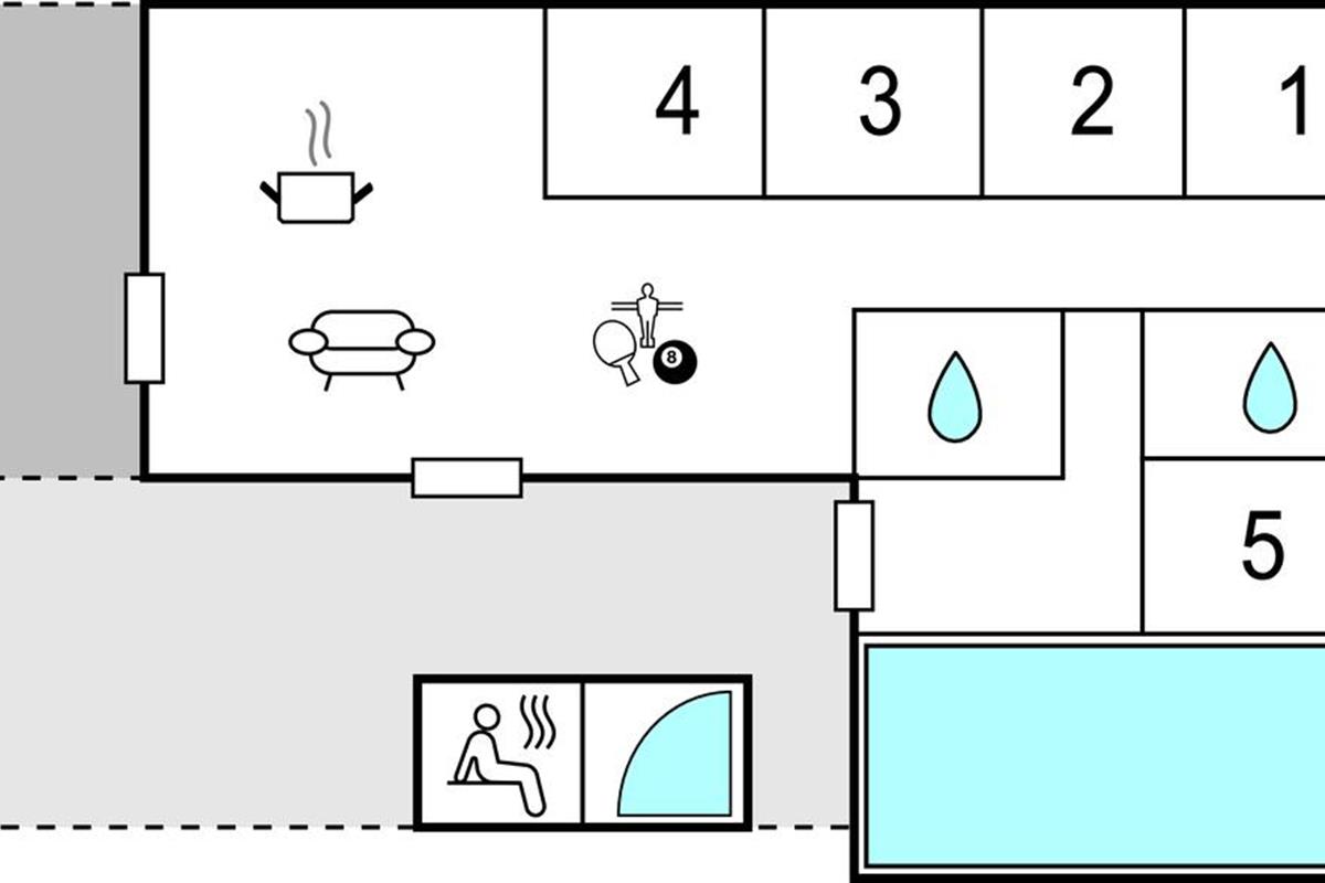 In het grote huis kunt u samen koken, samen eten, bordspellen en biljart spelen of gewoon ontspannen voor de tv in de grote woon- en activiteitenruimte. Een prachtig overdekt zwembad geeft u de mogelijkheid om vele leuke uren in het water door te brengen, zelfs bij regenachtig weer. Van hieruit heeft u ook toegang tot de wellnessruimte op het terras. Geniet van de zon op de ligstoelen, in de whirlpool of in de barrelsauna. De mogelijkheden zijn eindeloos! Het uitnodigende, ruime en overdekte terras nodigt uit tot barbecueën en gezellig tafelen. Na het diner kunt u een tafeltennistoernooi organiseren en de winnaar kronen.