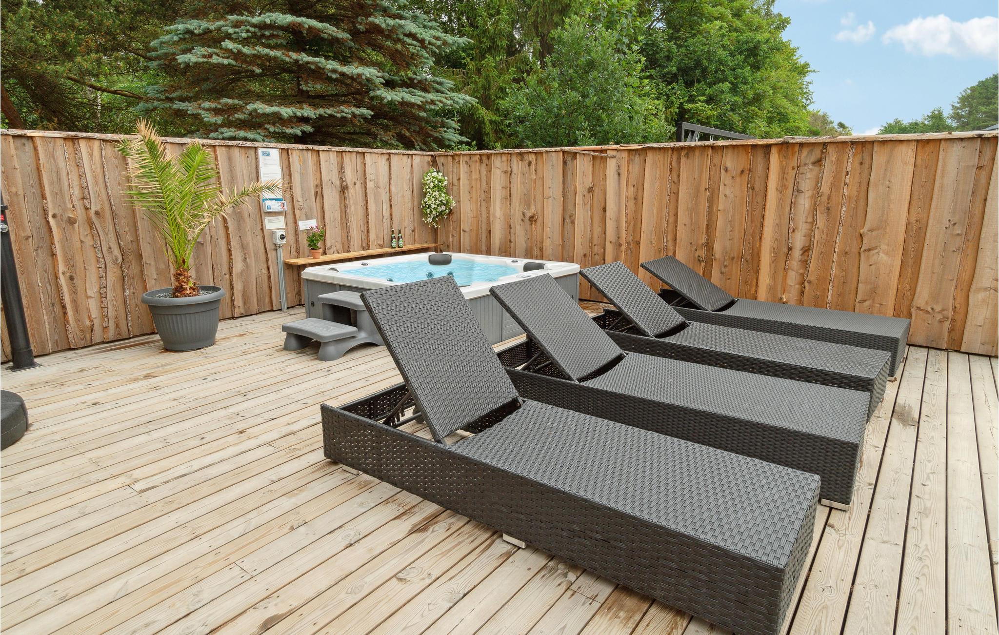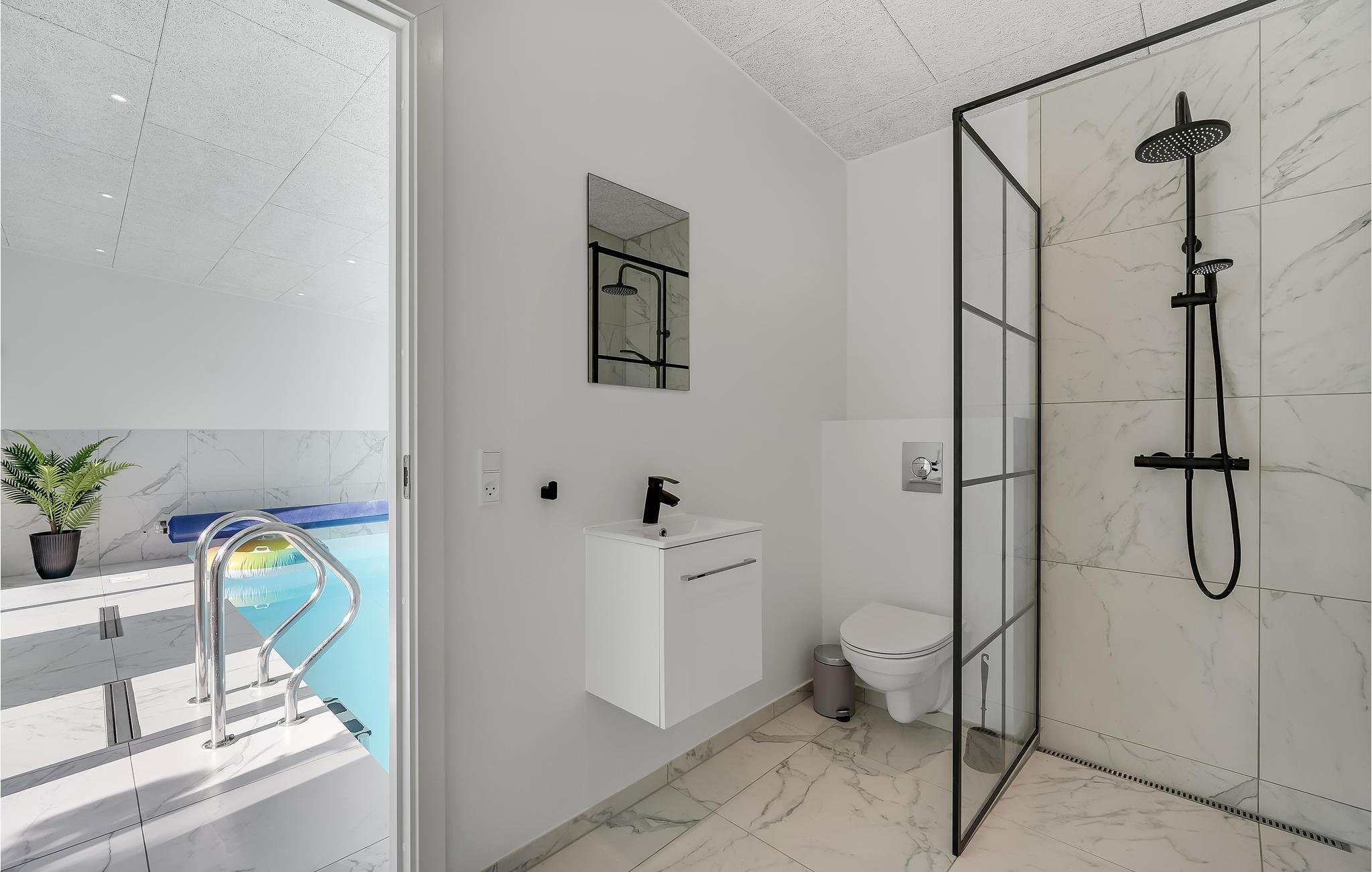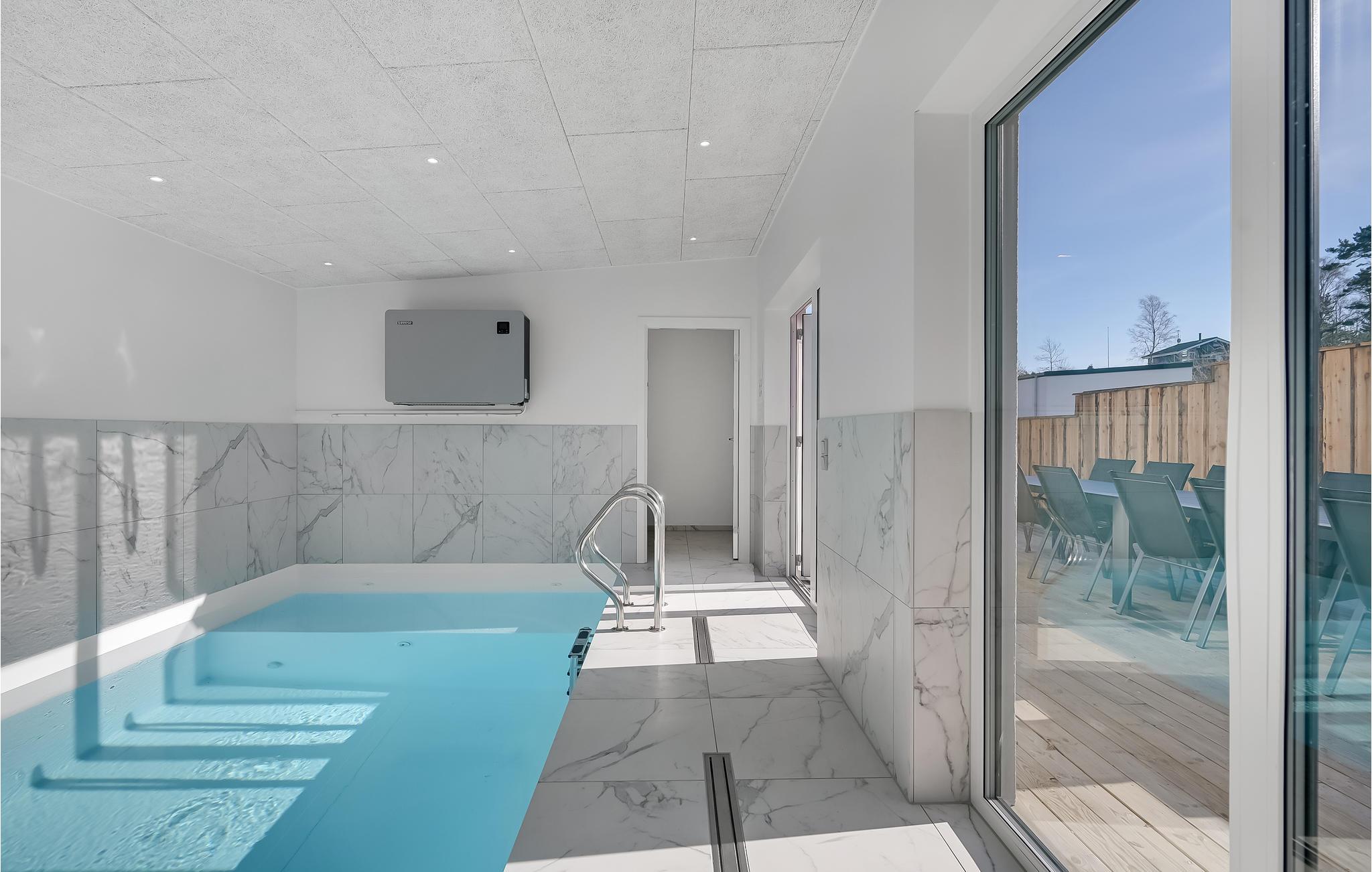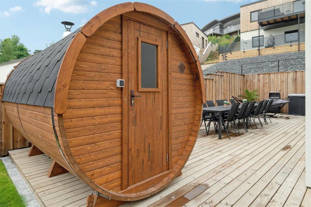 Het comfortabele huis heeft twee verdiepingen en een apart gebouw, waarin zich op een terras een exclusieve wellnessruimte bevindt met zwembad, whirlpool en sauna. In de wellnessruimte kun je zwemmen en spelen in het zwembad, daarna ontspannen in de elegante whirlpool met ruimte voor 4-6 personen of genieten van een saunasessie.