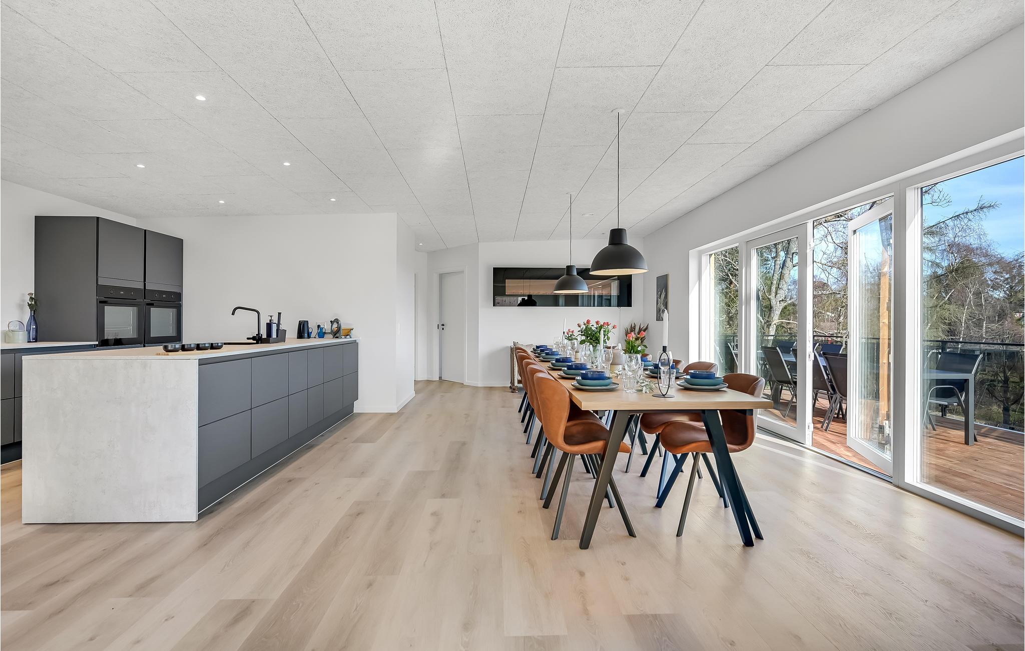 Luxe vakantiehuis in Ebeltoft met wellness, activiteitenruimte en prachtig zeezicht.
