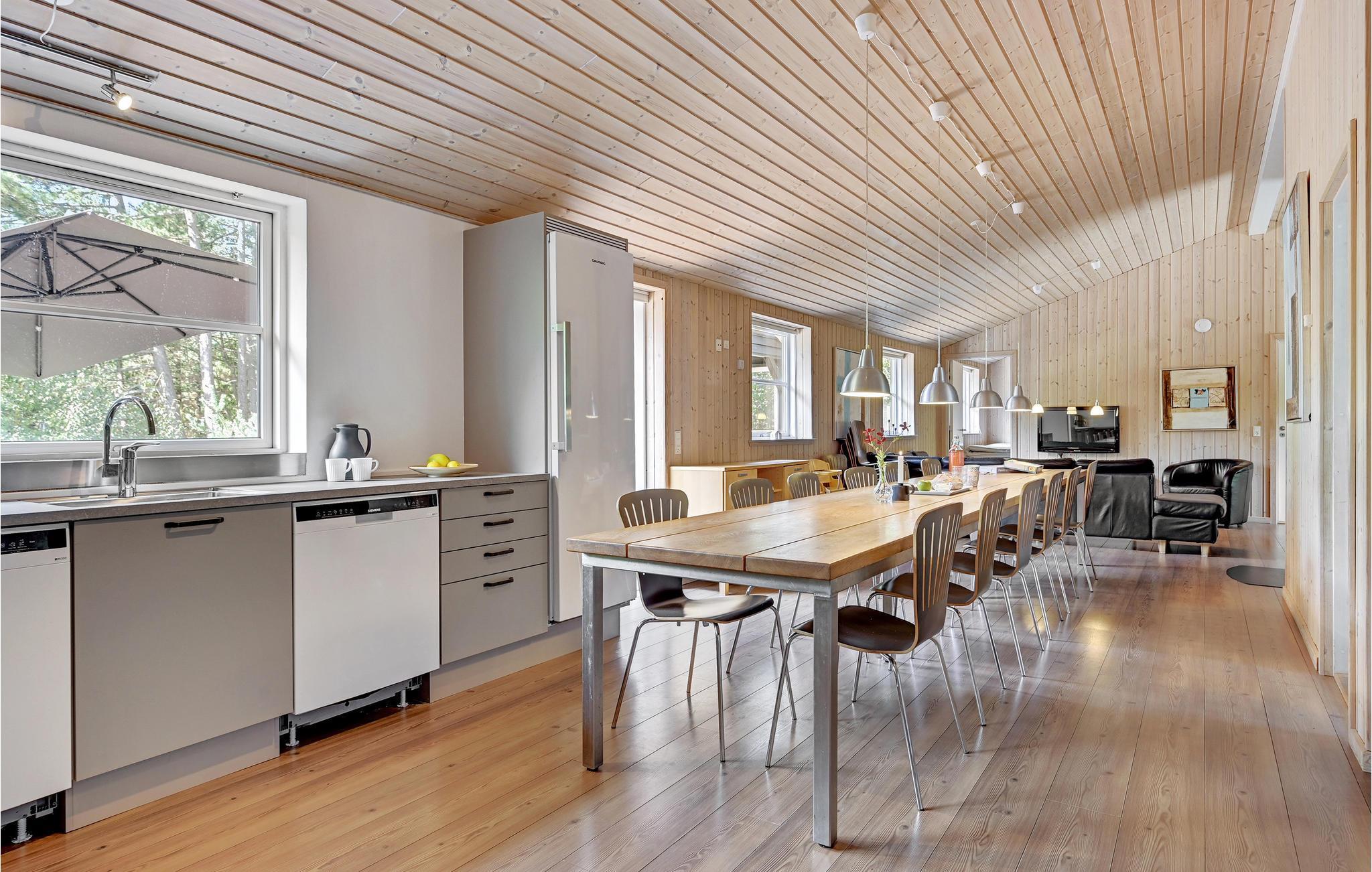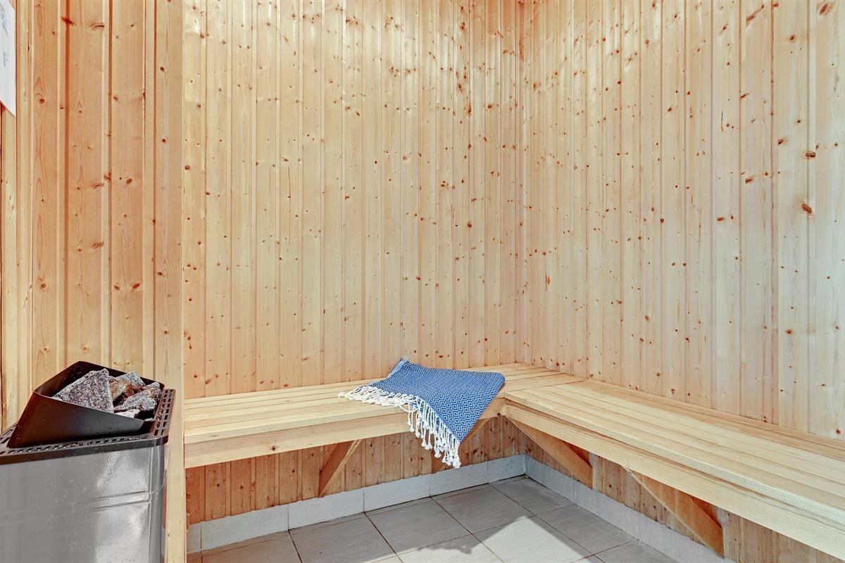 Het huis heeft twee verdiepingen, en beneden wachten u exclusieve wellness en een activiteitenruimte. In de wellnessruimte kunt u zwemmen in het zwembad en spelen op de waterglijbaan, terwijl het elegante bubbelbad plaats biedt aan 4-6 personen en een mooie opmaat is voor een saunasessie.