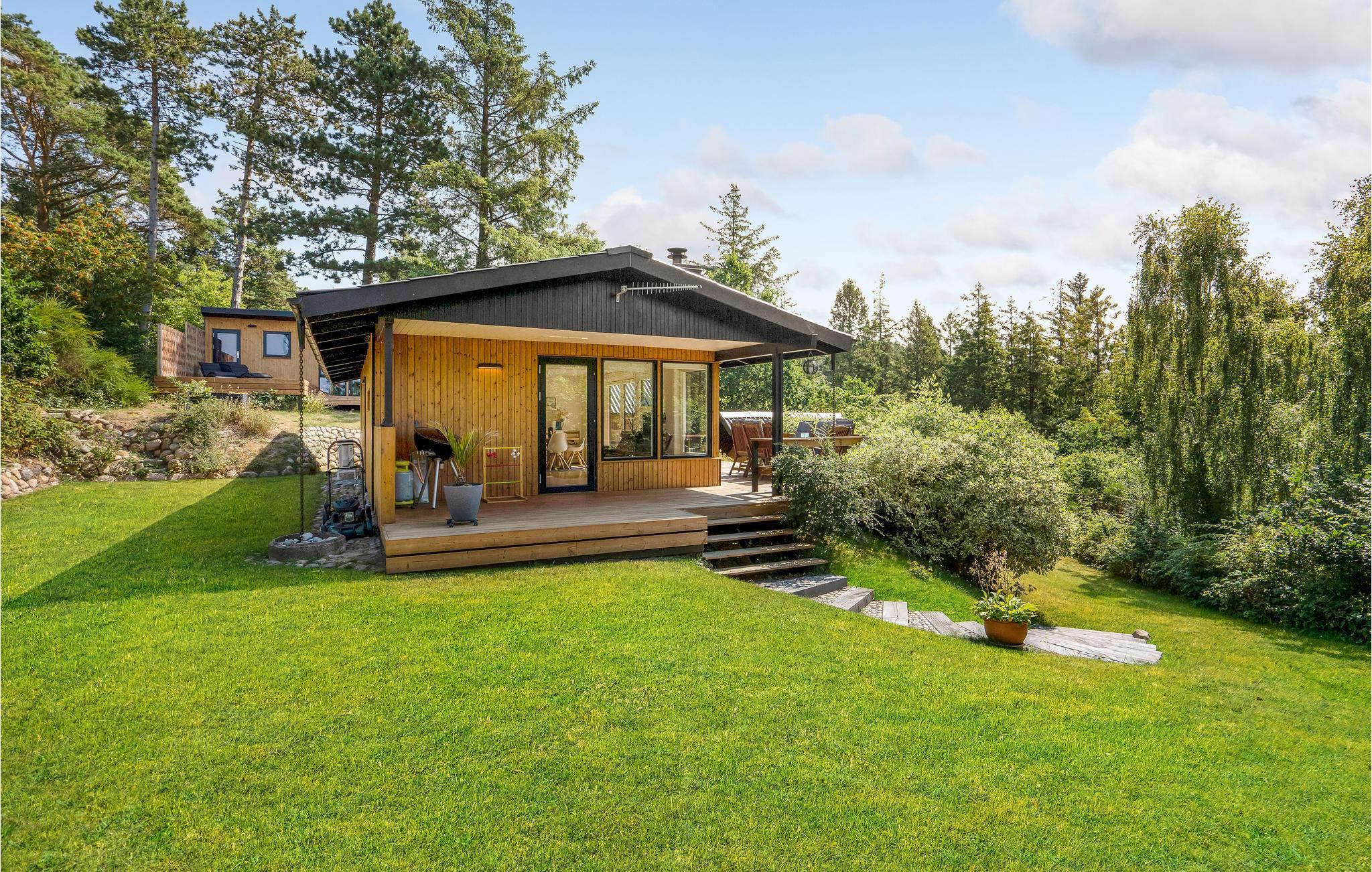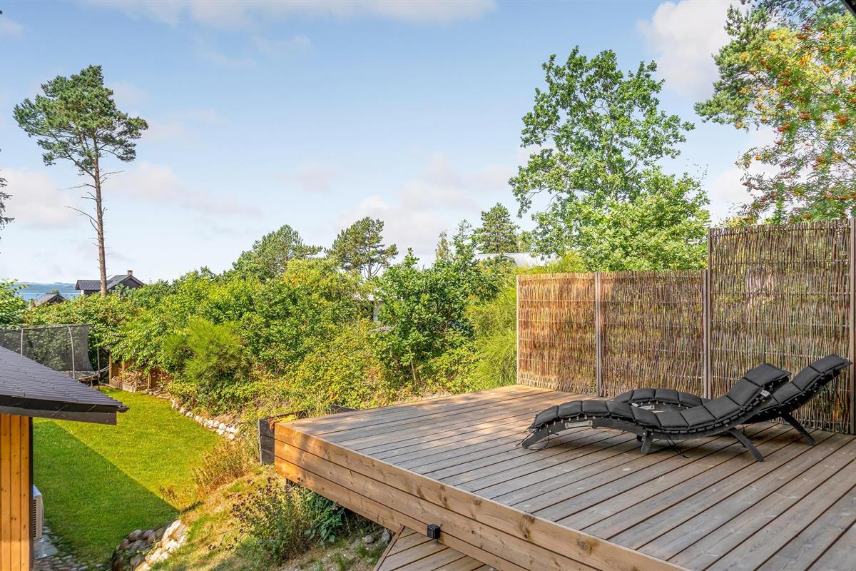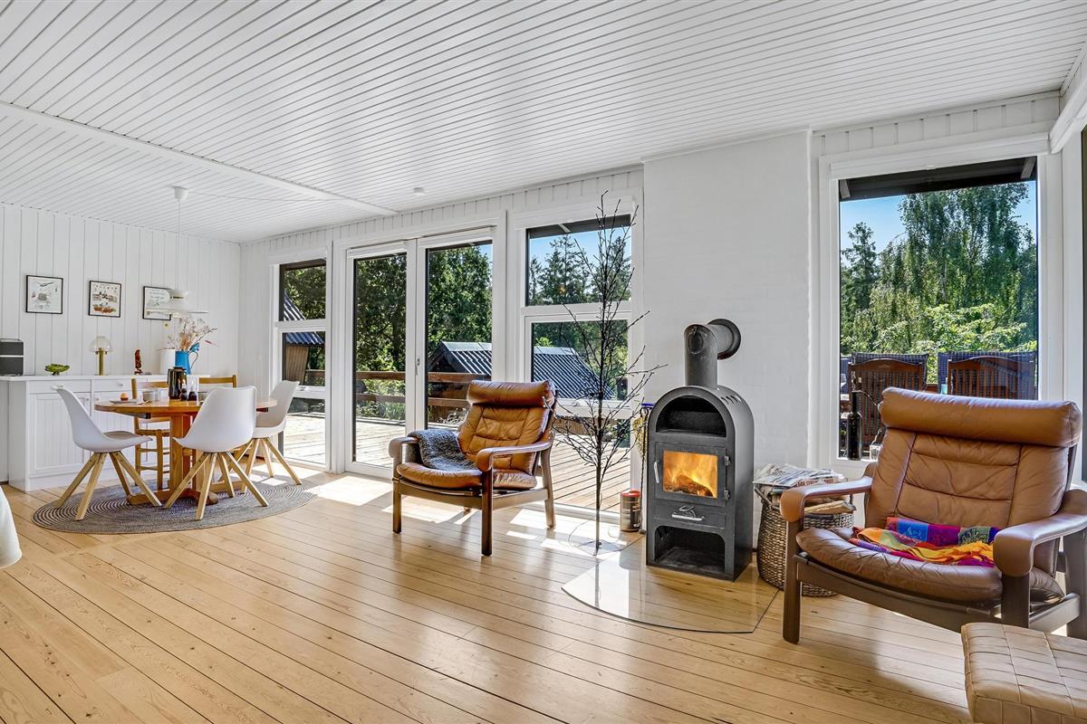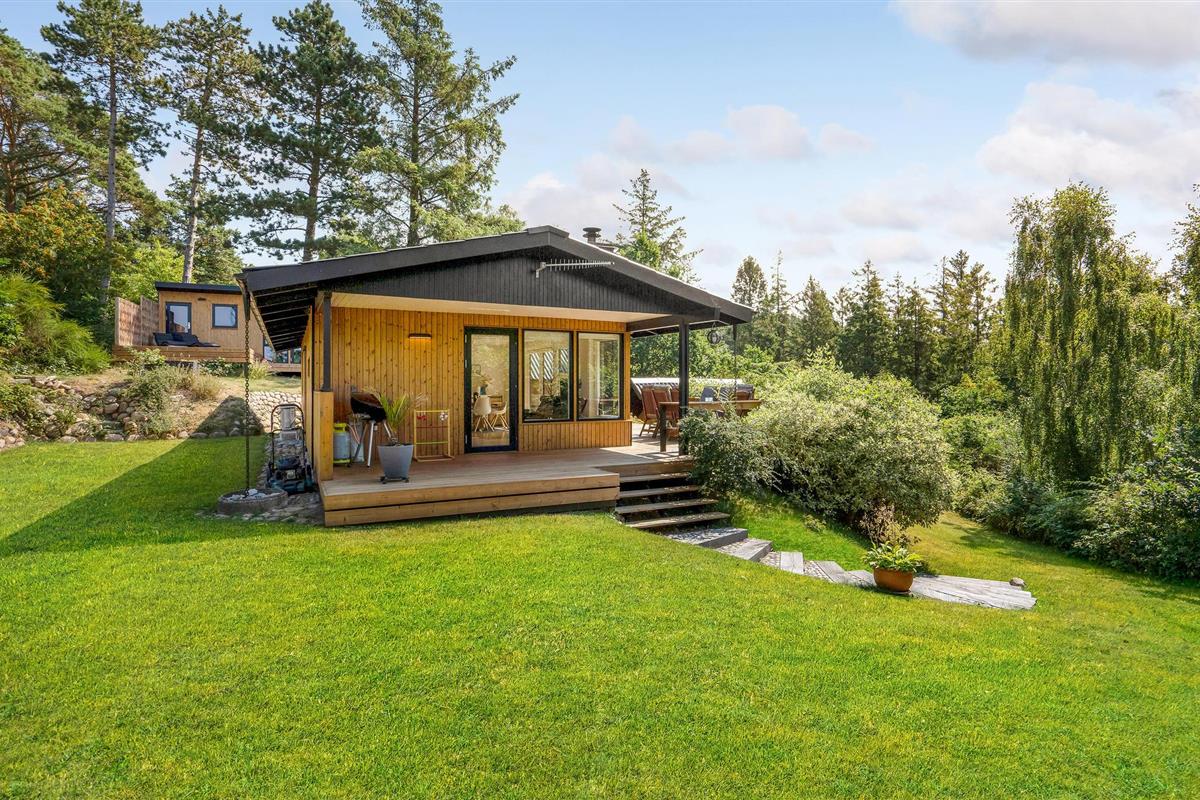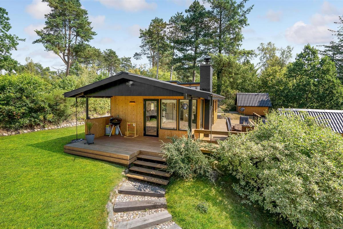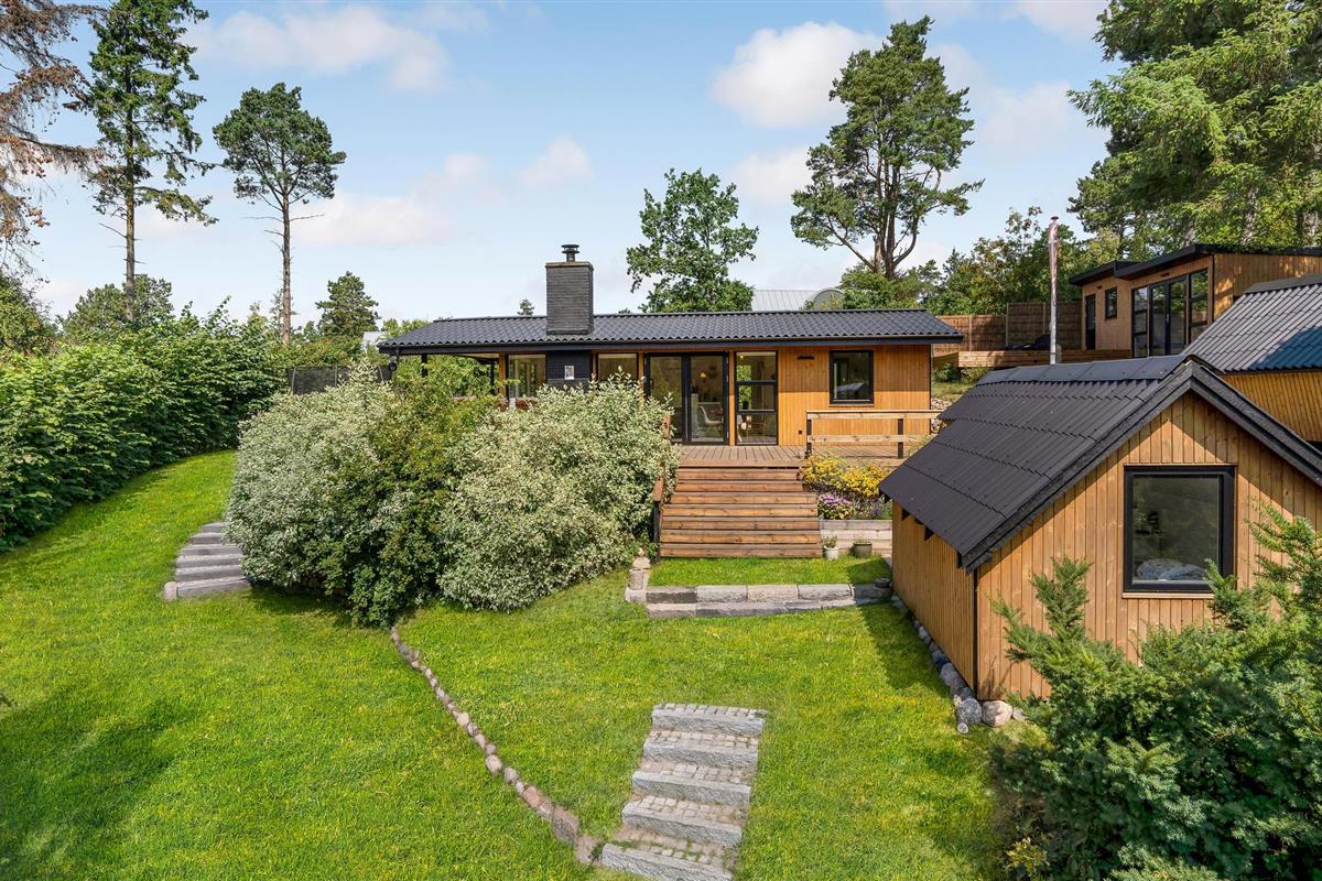 Comfortabel vakantiehuis met zeezicht, open keuken, houtkachel en terras nabij Ebeltoft.