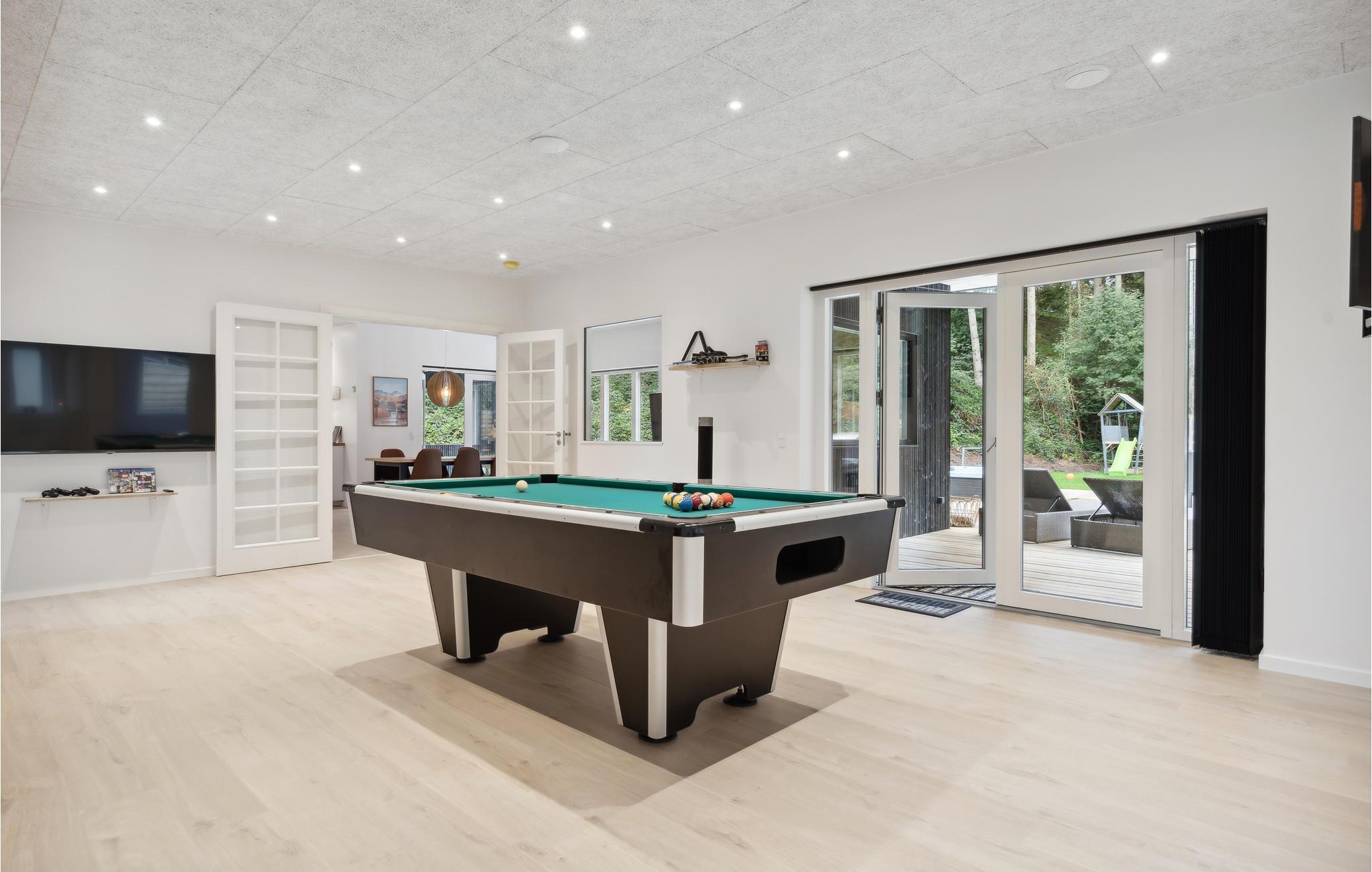 Droom je van comfort, luxe en talloze mogelijkheden om je vakantie te veraangenamen? Dan is dit gedroomde vakantiehuis echt iets voor jou! Het energiezuinige huis ligt in een gevestigde woonwijk met bos en natuur direct voor de deur en belooft je, in combinatie met het prachtige huis, het perfecte vakantiehuis. Geniet van de grote en goed uitgeruste kamers. Binnen kun je ontspannen terwijl je pool speelt, tv kijkt of gezellig samen bent met je uitgebreide familie of vrienden. Gebruik samen de open leefruimte en geniet van het natuurlijke licht door de grote ramen. Als je hier bent gekomen om te ontspannen, zul je blij zijn om de sauna, het bubbelbad en de verwarmde zwemspa buiten te ontdekken, waar je kunt ontspannen in de hitte of de zon en kunt genieten van het uitzicht op de tuin en de lucht terwijl je kinderen genieten van de speeltoestellen. Verheug je op een onvergetelijke tijd in de buitenlucht, die je 's avonds kunt afsluiten met een barbecue.