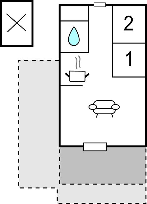Woonkamer met open keuken - 2 Slaapplaatsen. (Opklapbed(den) of matras(sen)).