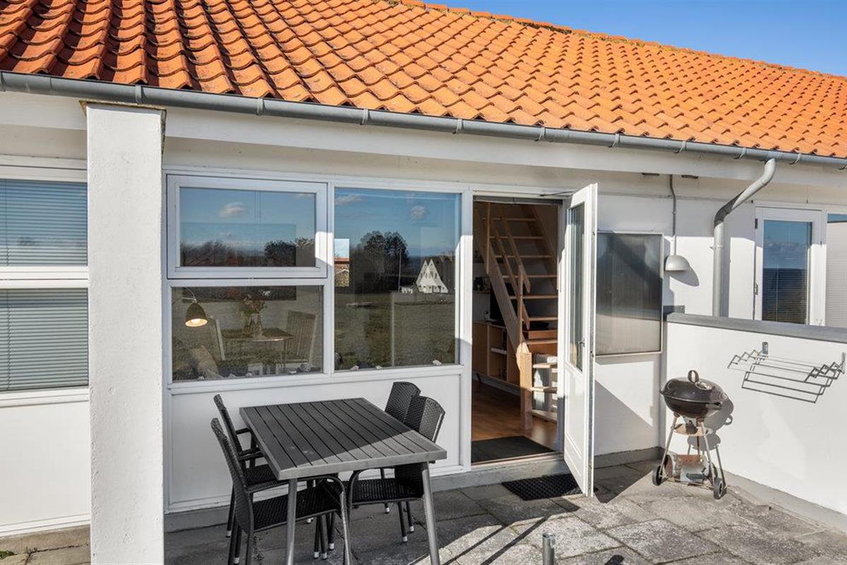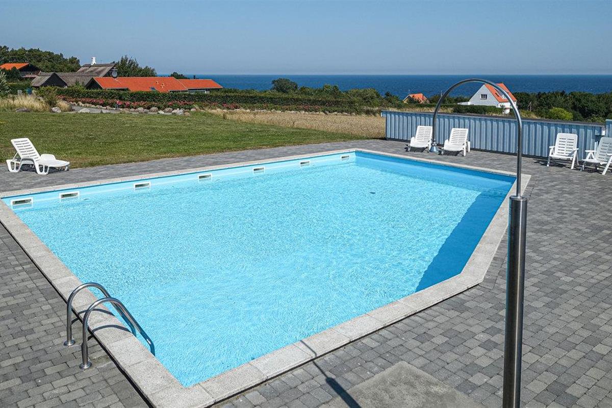 Licht en gezellig vakantiehuis met zeezicht en terras, vlak bij Allinge en het verwarmde buitenzwembad.