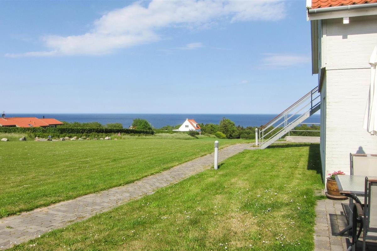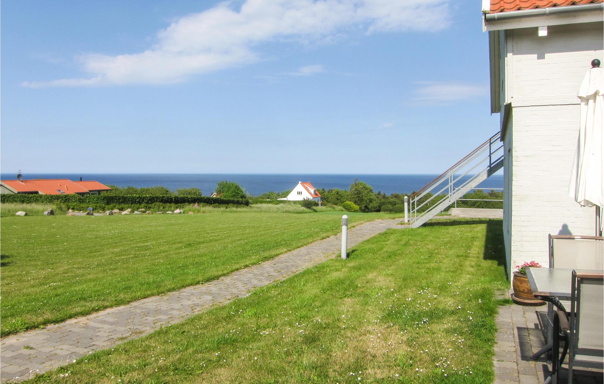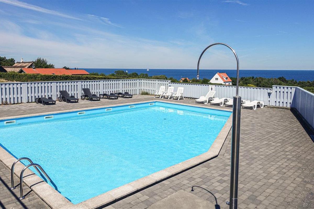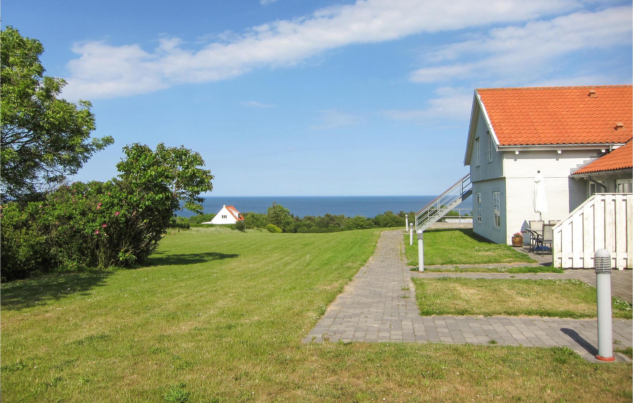 Gezellig vakantiehuis nabij Allinge met zeezicht, terras en gedeeld buitenzwembad, ideaal voor een rustige vakantie op Bornholm.