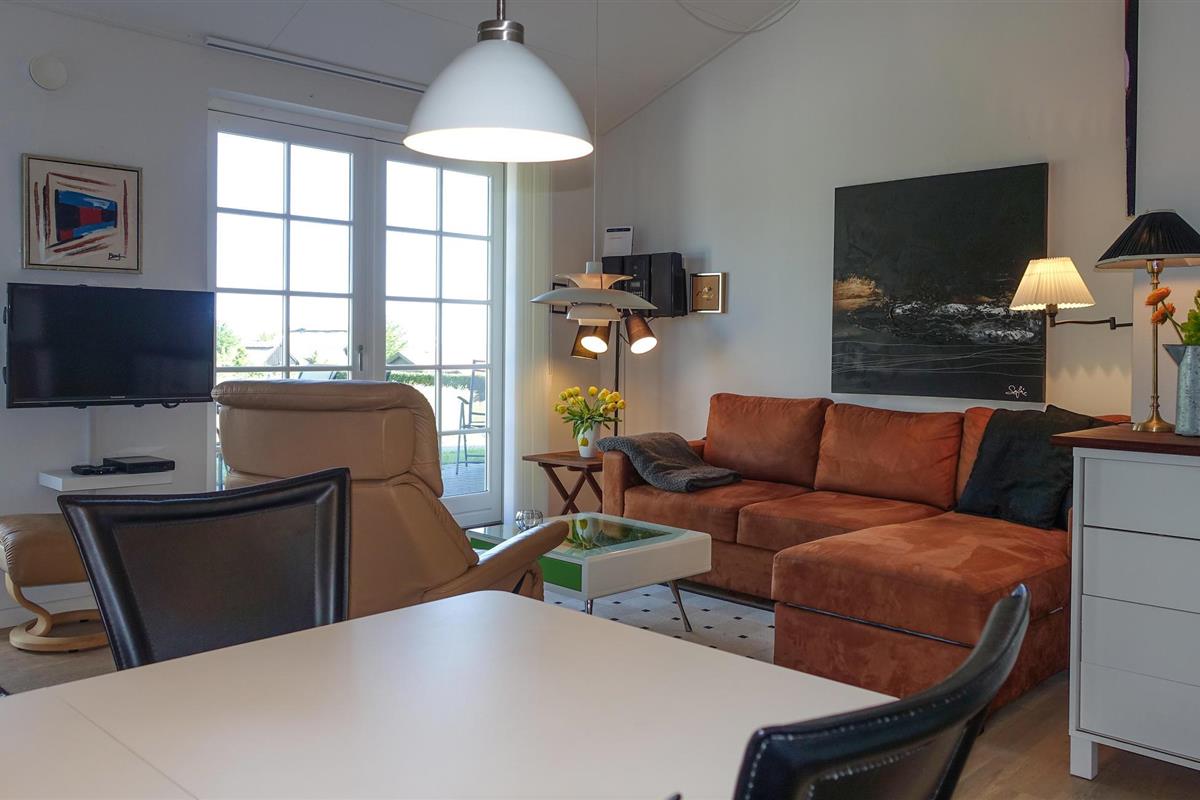 De flat is licht en mooi ingericht. Een slaapbank, een tweepersoonsbed en een eenpersoonsbed wachten op u voor de nachten. Vanuit de woonkamer heeft u toegang tot uw eigen terras met buitenmeubilair en barbecue, zodat u vele mooie zomeravonden buiten kunt doorbrengen. U heeft ook een ander, extra terras tot uw beschikking.