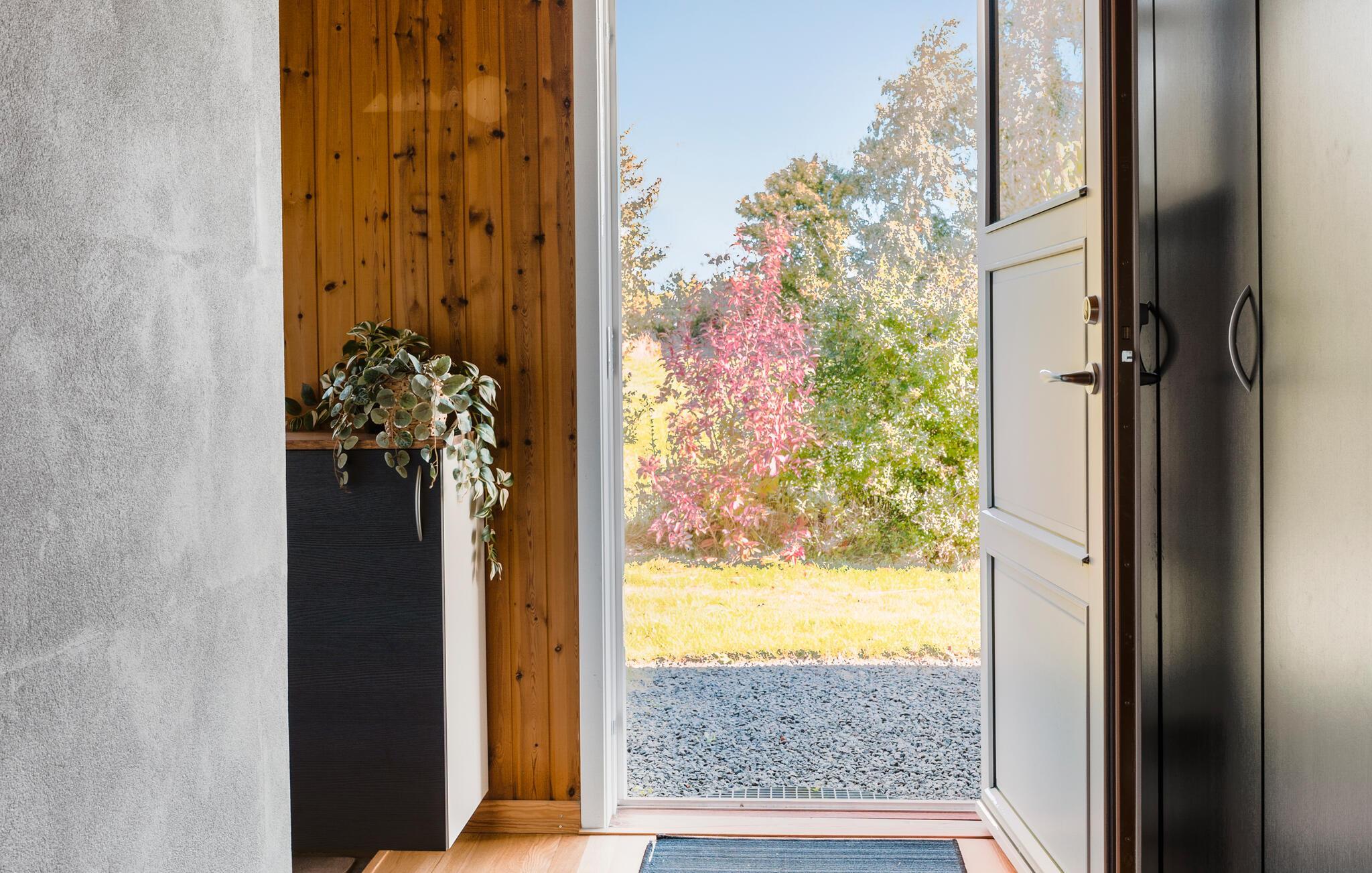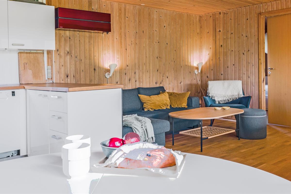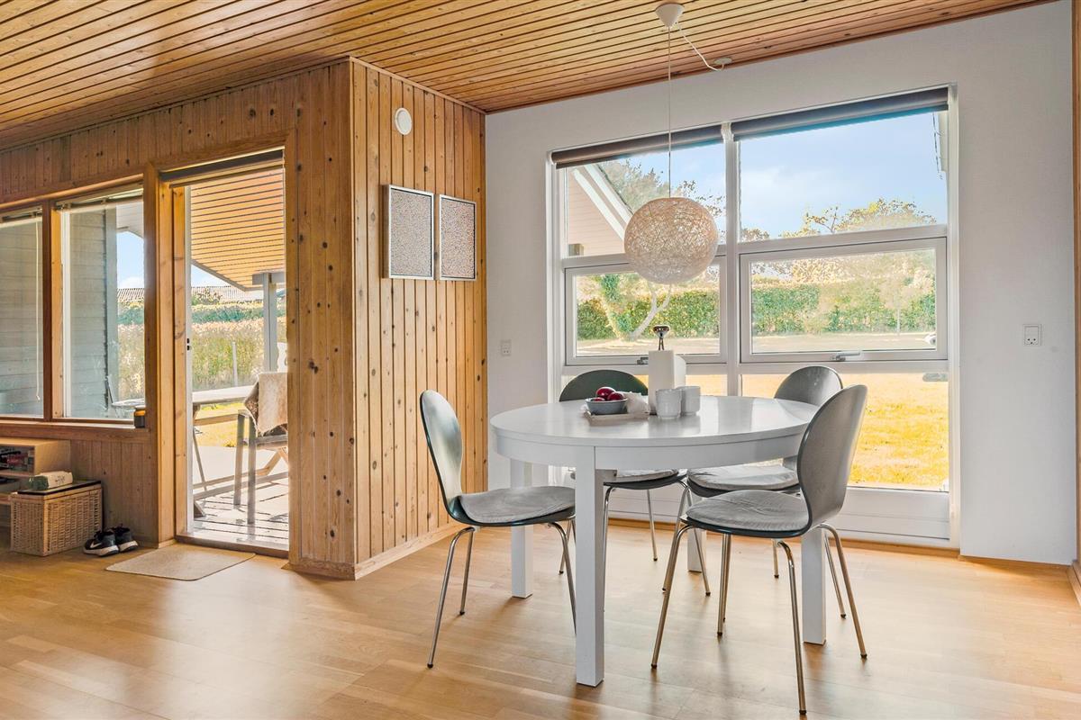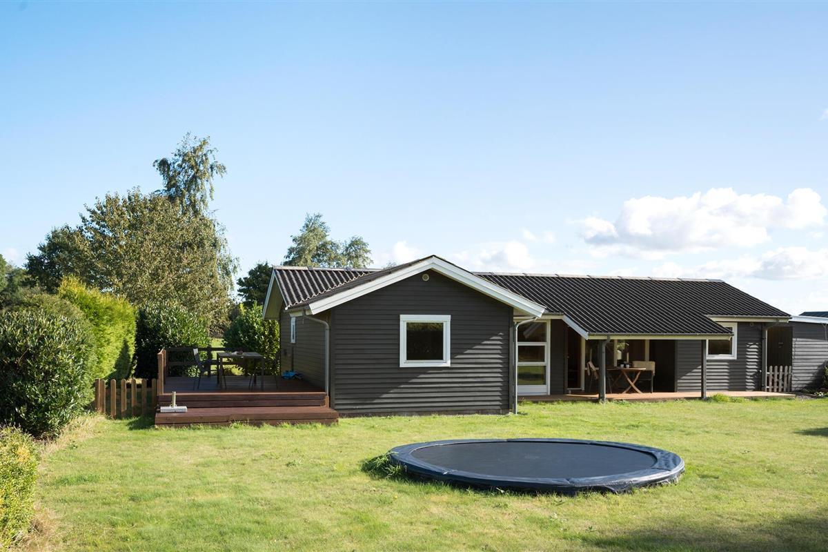 Je vakantiehuis is omgeven door een ruime tuin die veel ruimte biedt voor ontspanning en vrijetijdsbesteding. Geniet van zonnige dagen op het terras met uitzicht op het groene landschap en de glinsterende zee op de achtergrond. Of laat de kinderen op de trampoline springen en zich buiten uitleven. Binnen in het huis vind je een vriendelijk, licht interieur. De open keuken nodigt uit om samen te koken en te genieten van maaltijden aan de eettafel met uitzicht op de tuin. Ontspan op de gezellige bank in de woonkamer, die bekleed is met warm hout, en breng je avonden door met het spelen van leuke bordspellen of het samen oplossen van een uitdagende puzzel.