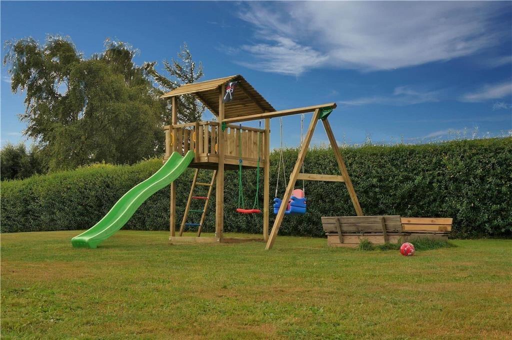 Het huis ligt op een perceel van ca. 970 m2. De tuin heeft een schommel en tuinmeubelen.
