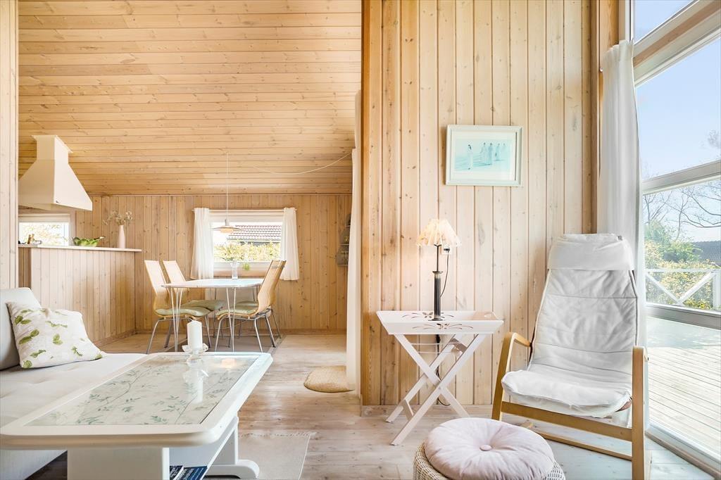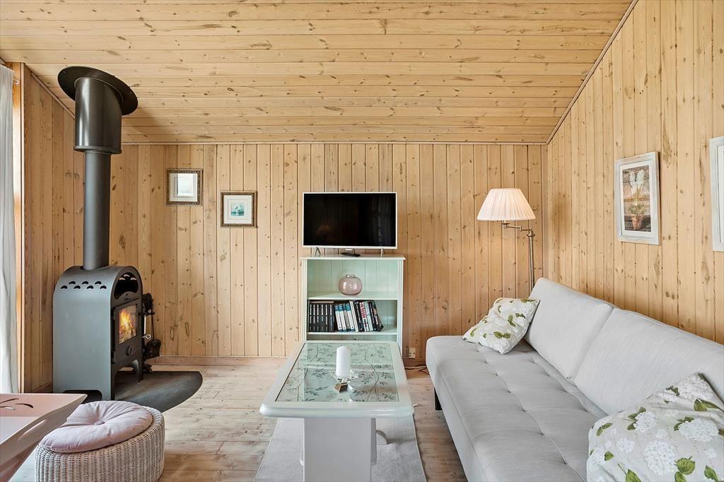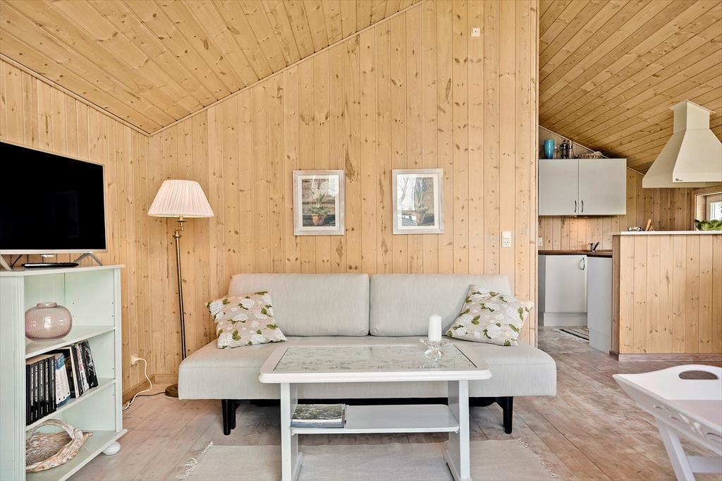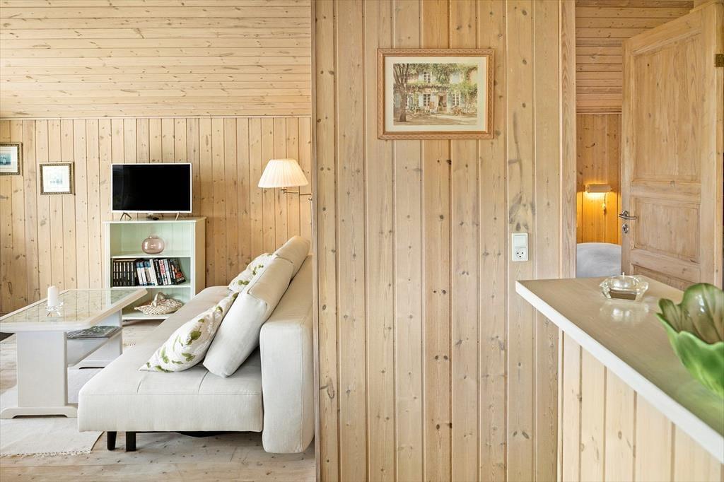 Stue er indrettet med 1 dobbeltsovesofa, TV (vær opmærksom på at man kun kan streame via chromecast), spiseplads og udgang til terrassen. Skøn havudsigt fra stuen og terrassen. Ikke-ryger-hus.