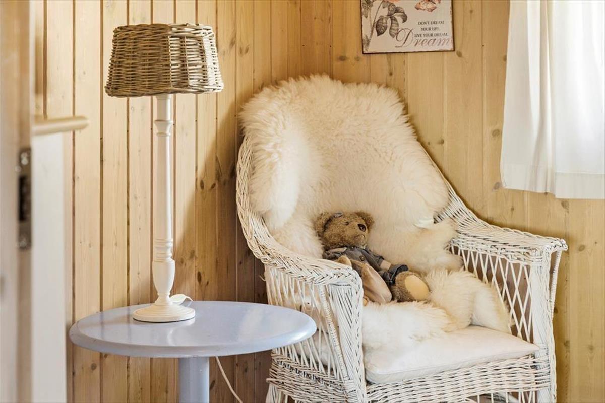 Huset er hyggeligt indrettet i lyse farver.