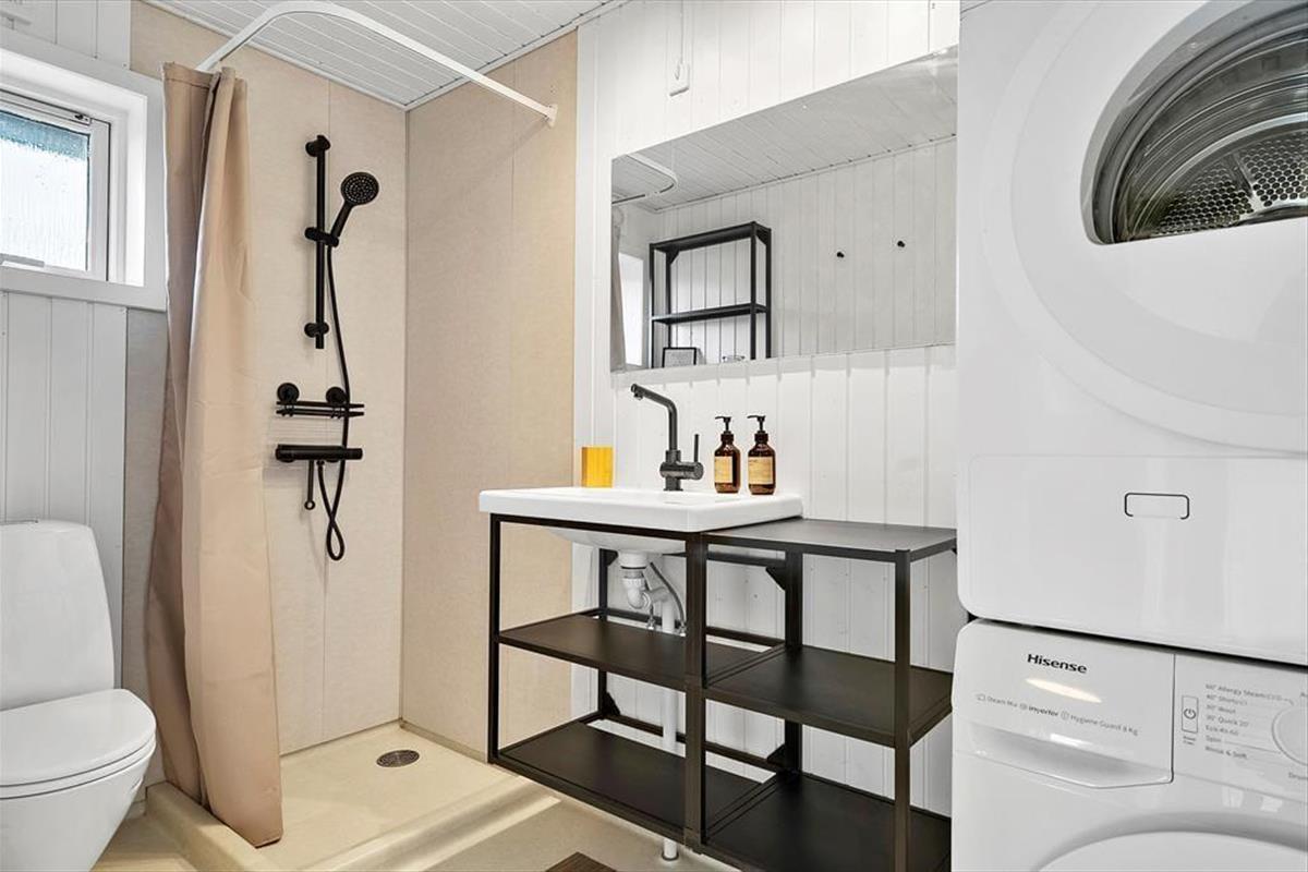 Vom Eingangsbereich kommen Sie direkt in ein ansprechendes Badezimmer mit WC, Waschbecken und Duschnische, sowie Waschmaschine und Wäschetrockner und in ein Schlafzimmer mit zwei Einzelbetten.