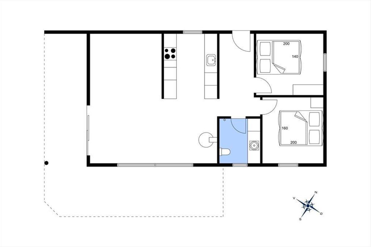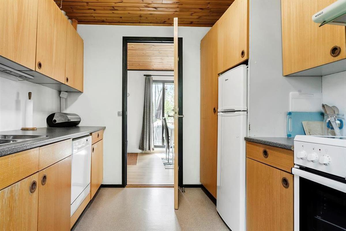 Hier kannst du dich entspannen und deinen Urlaub in den gemütlichen und einladenden Räumen genießen. Das Haus bietet Platz für vier Erwachsene und verfügt über ein Wohnzimmer mit Fernseher und Kaminofen und mit großen Fenstern zur sonnigen Terrasse und zum Garten. Es gibt eine gut ausgestattete Küche, in der ihr eure Mahlzeiten zubereiten und sie auf der Terrasse genießen könnt. Von den beiden Schlafzimmern ist eines mit einem Doppelbett und eines mit einem ausziehbaren Doppelbett ausgestattet. Hier kannst du dich ausruhen oder ein gutes Buch lesen. Das Ferienhaus verfügt nicht zuletzt auch über ein und funktionelles Badezimmer.