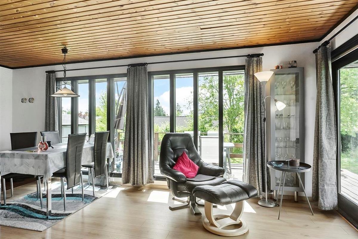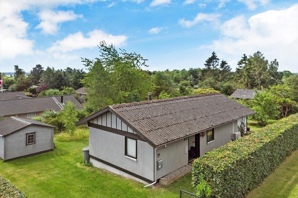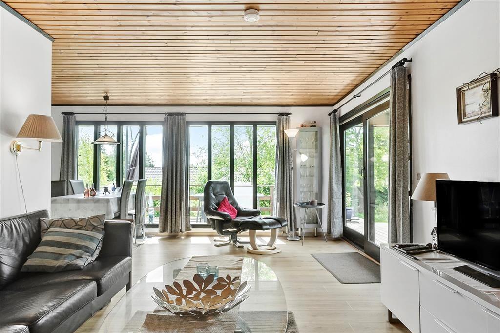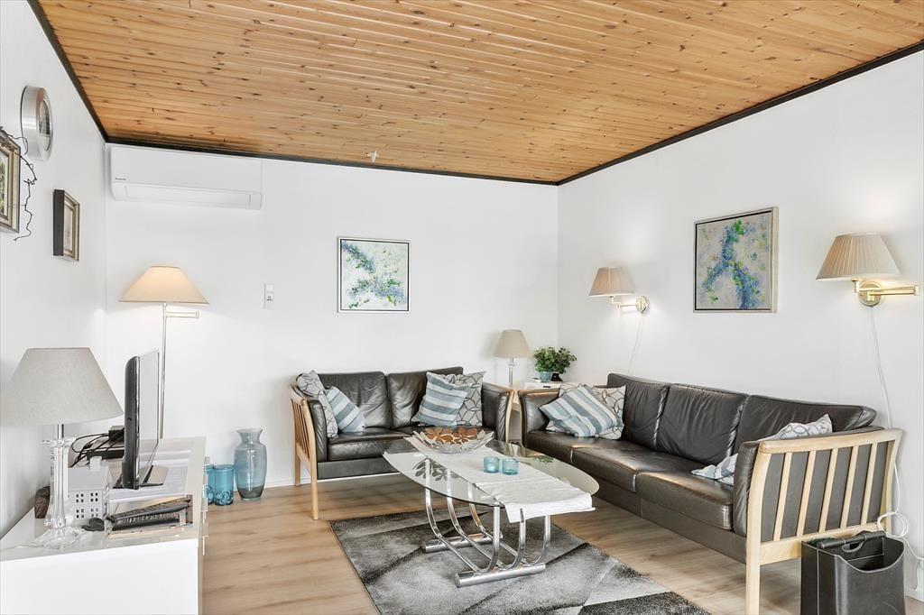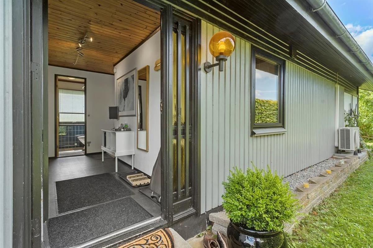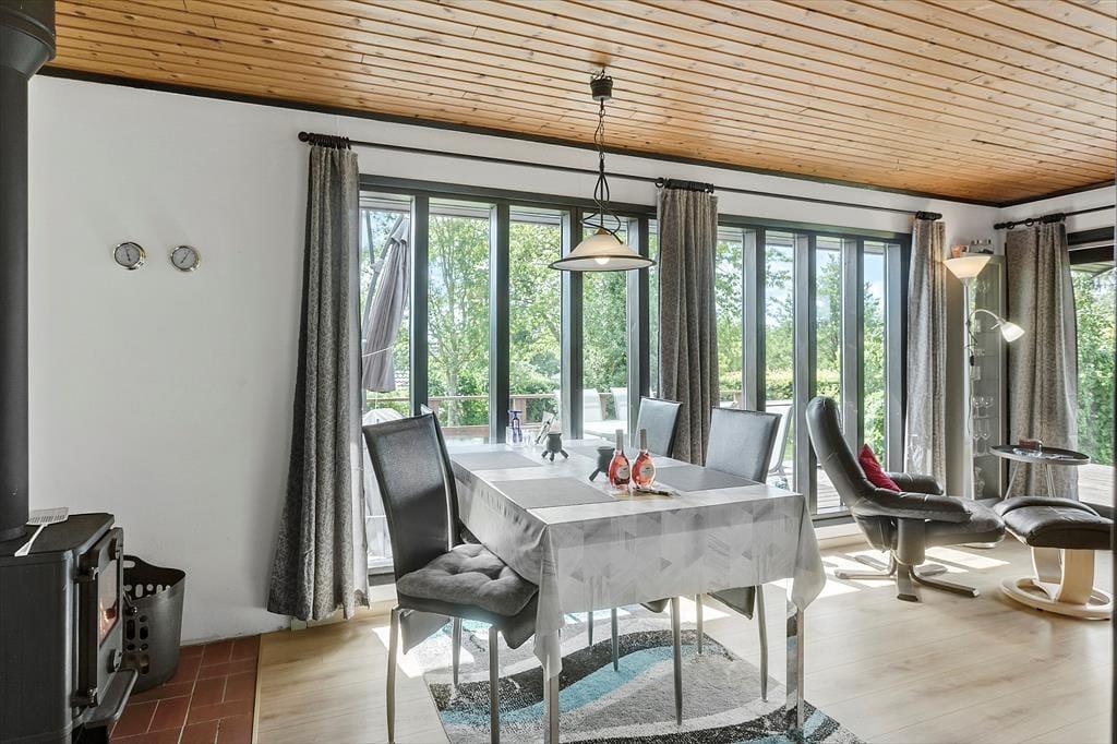 Das Ferienhaus ist von einem schönen umschlossenen Garten umgeben. Vom Wohnzimmer aus hast du Zugang zu einer schönen, großen und teilweise überdachten Holzterrasse, auf der du die sonnigen Tage und den Sternenhimmel genießen kannst, wenn es dunkel wird. Der Garten ist sichtgeschützt und bietet dir viele Möglichkeiten, die Sonne zu genießen.