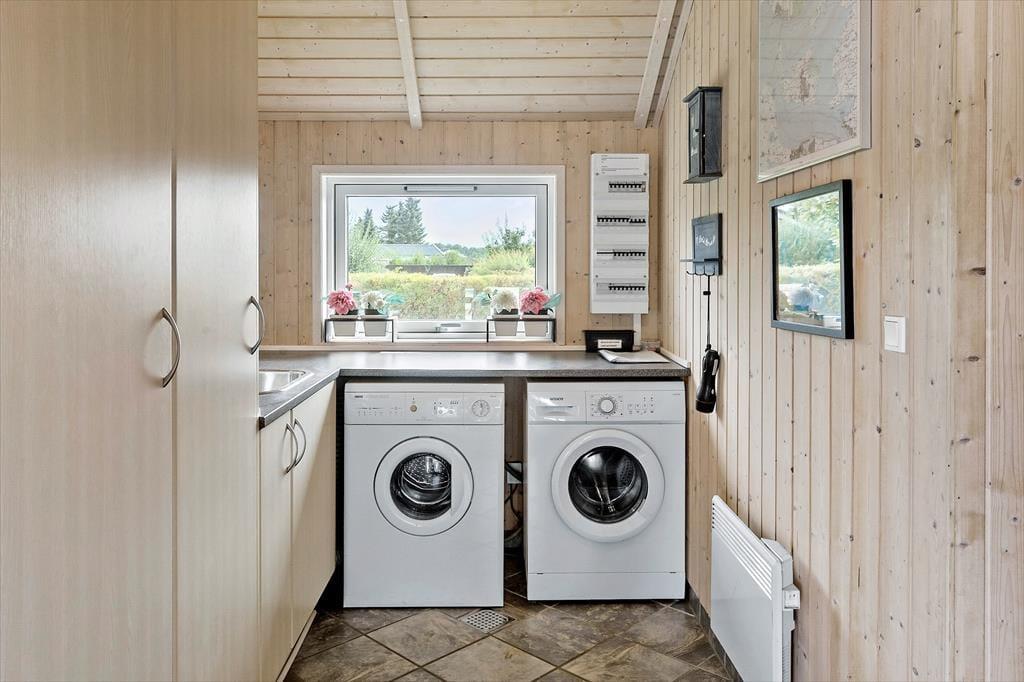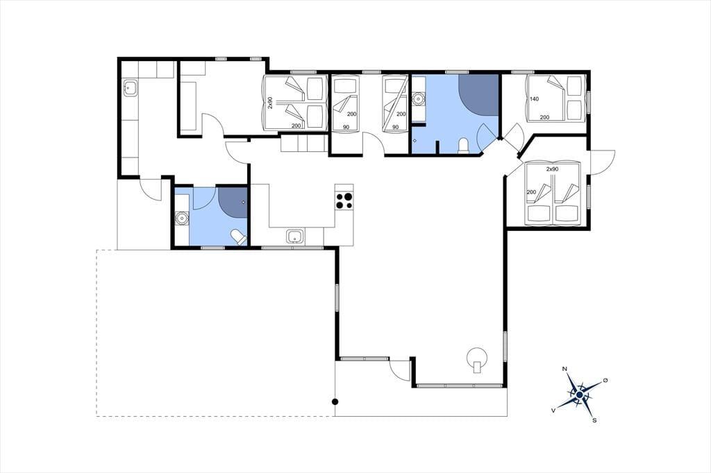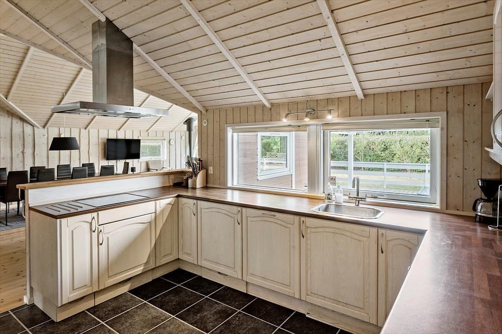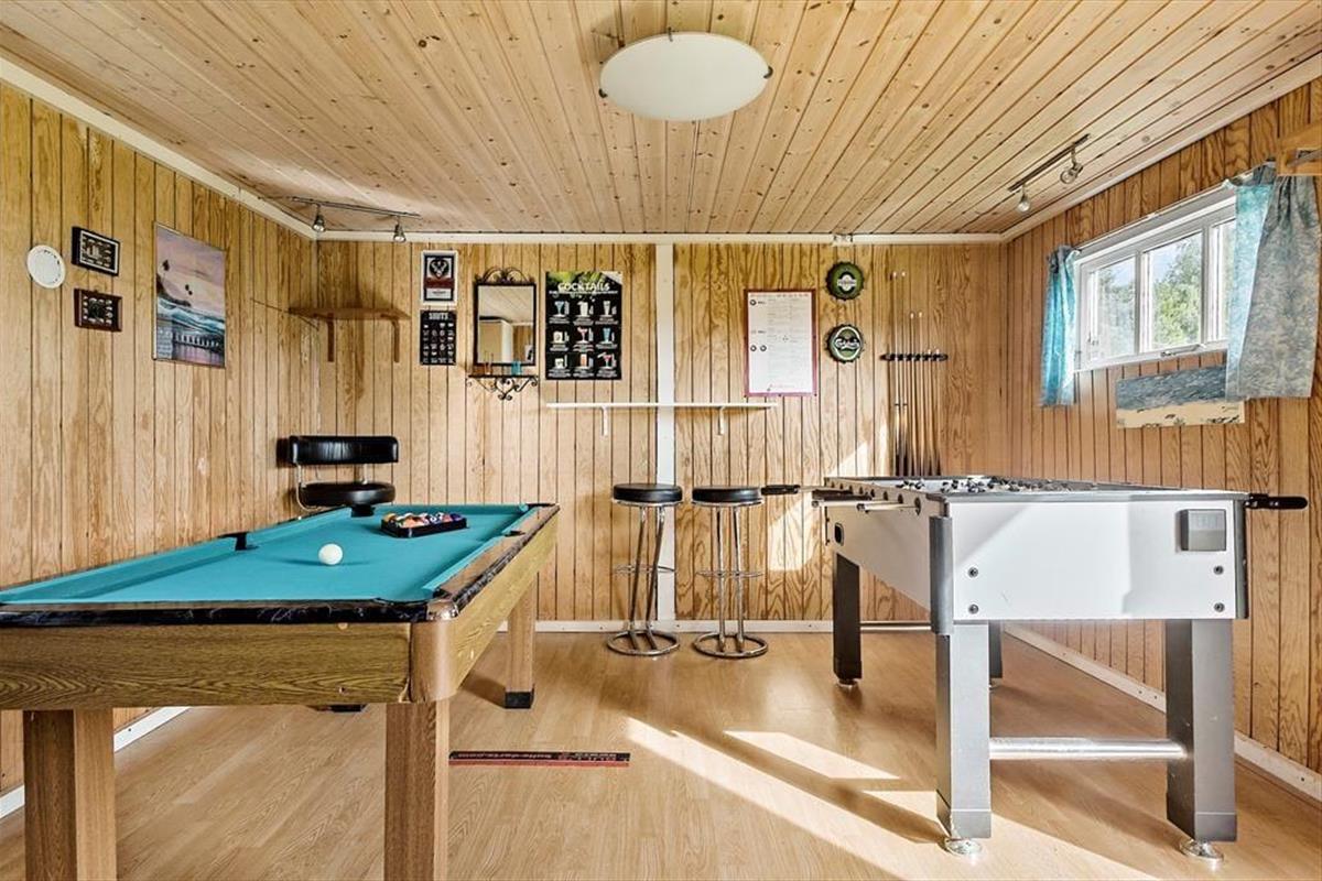 Spüre, wie dich herrliche Ruhe umhüllt und genieße erholsame Urlaubstage in den hellen, einladenden Räumlichkeiten deines Ferienhauses, das mit einer wohldurchdacht aufgeteilten Wohnfläche besticht. In der offenen Küche bereitest du die Mahlzeiten zu, während der Rest der Familie am Esstisch unterhaltsame Gesellschaftsspiele spielt oder bei einem kühlen Getränk die Erlebnisse des Tages Revue passieren lässt. Durch die großen Fenster des Wohnraums blickst du hinaus in den Garten. Während du dich in aller Ruhe niederlässt, ziehen sich deine Kinder garantiert gern auf den offenen Schlafboden zurück oder machen es sich vor dem Fernseher gemütlich. Die vier ansprechenden Schlafräume erweisen sich als schöne Rückzugsorte für Teenager und bieten sich wunderbar für das ein oder andere Mittagsschläfchen an. Eines der beiden schönen Badezimmer lädt mit seinem 2-Personen-Whirlpool zu traumhaft entspannten Momenten voller Wellnessflair ein. Der großzügig bemessene Hauswirtschaftsbereich ist praktischerweise mit einer Waschmaschine und einem Wäschetrockner ausgestattet. Spiel und Spaß für kleine und große Gäste verspricht der Aktivitätsraum, in dem unter anderem ein Tischkicker und eine Dartscheibe zur Verfügung stehen.
