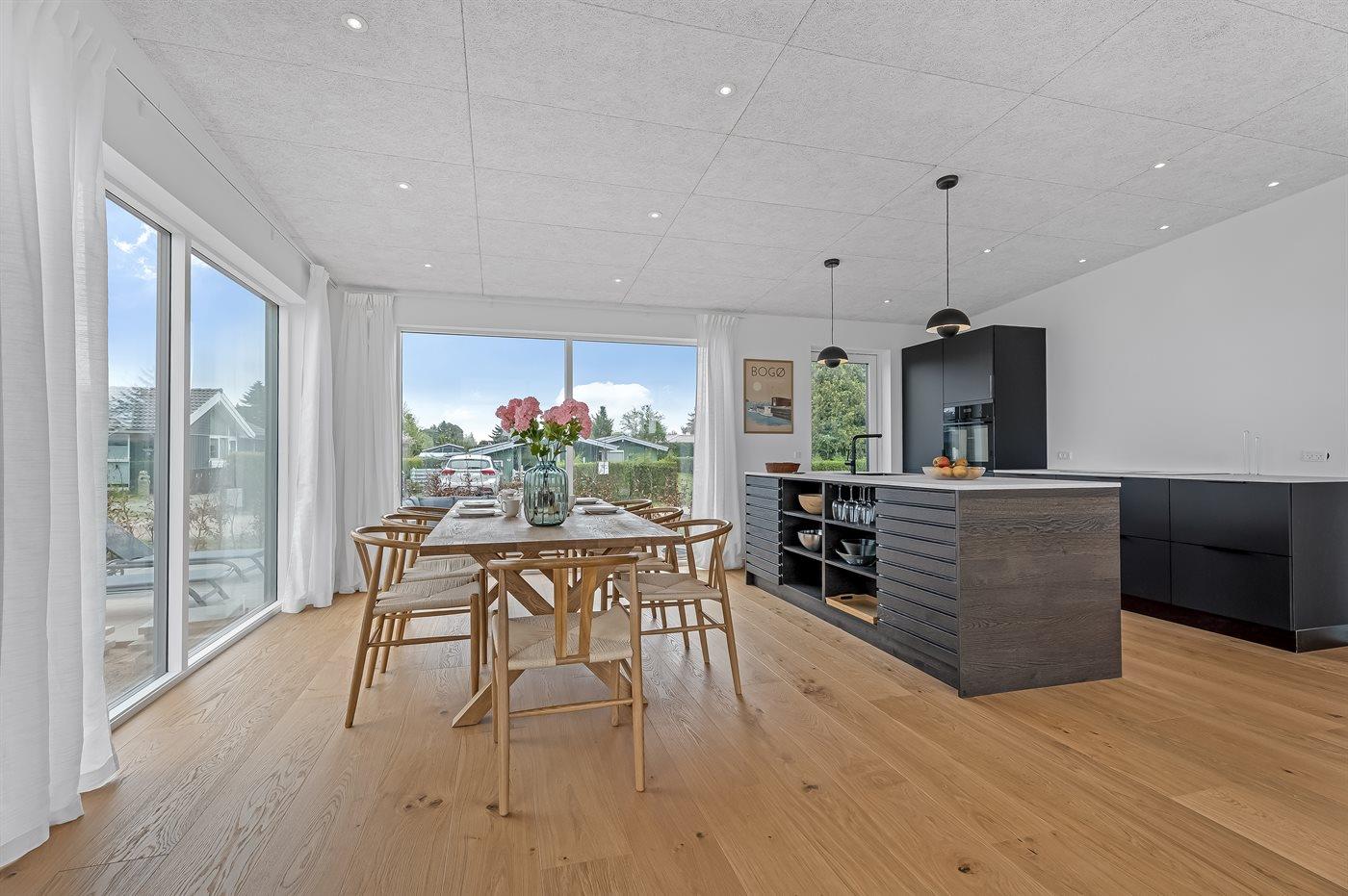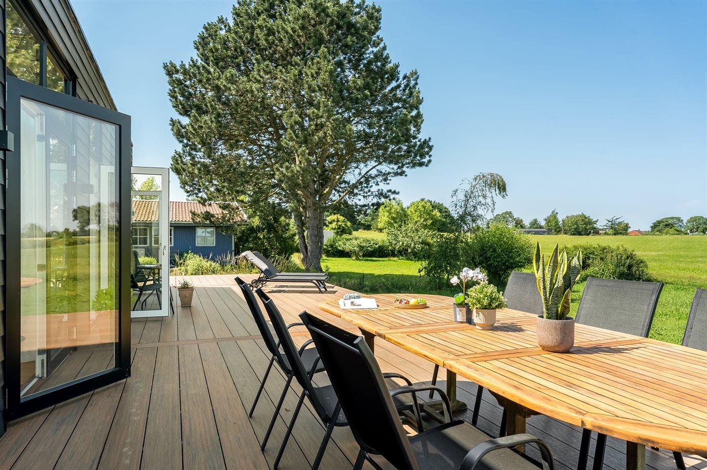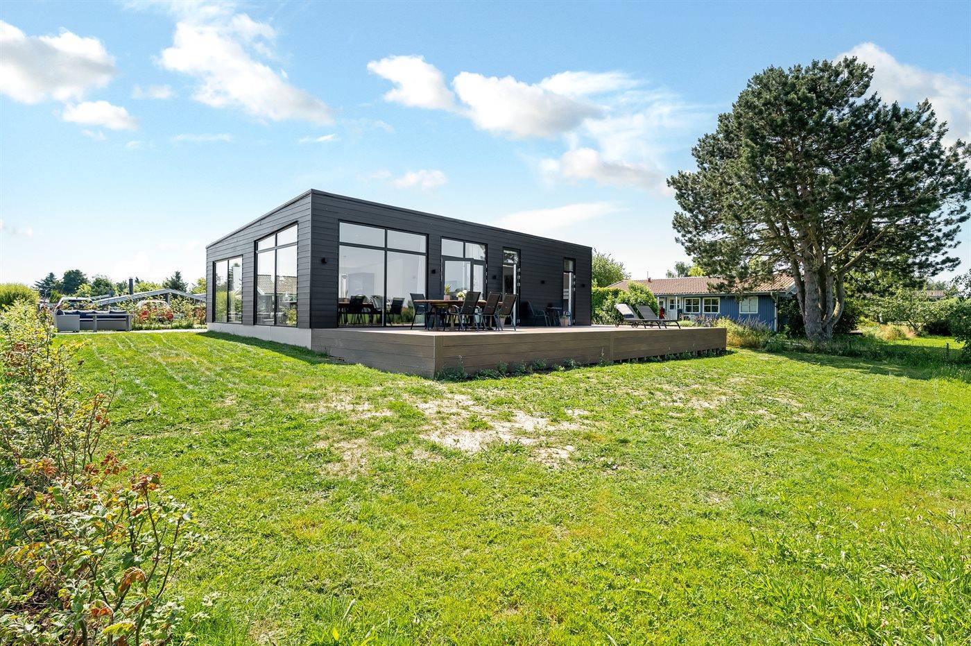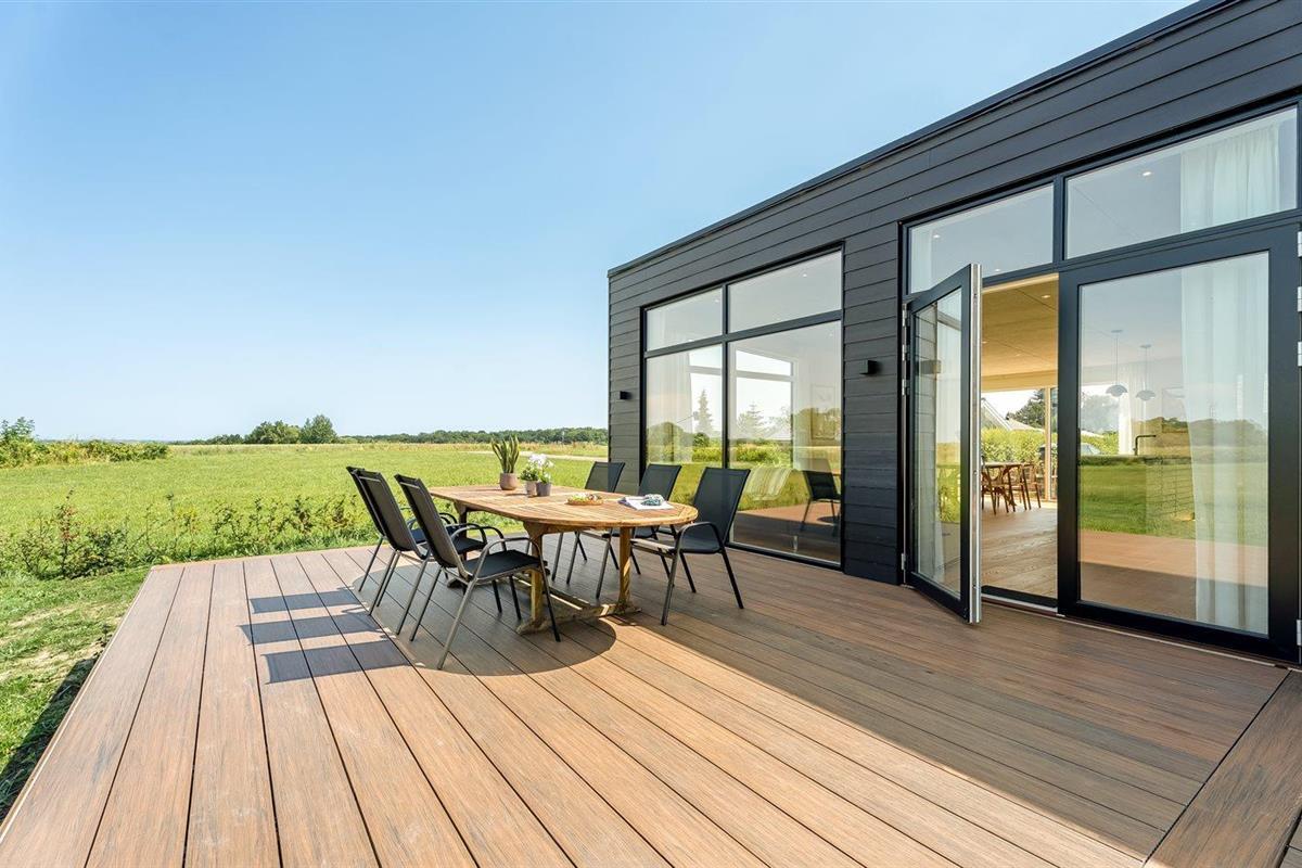 Modern vakantiehuis in Bogø met vloerverwarming, smart-tv's en een groot terras voor 8 personen.