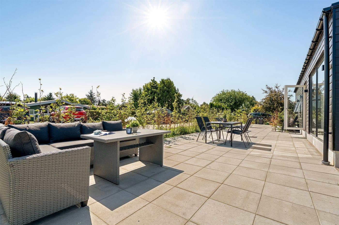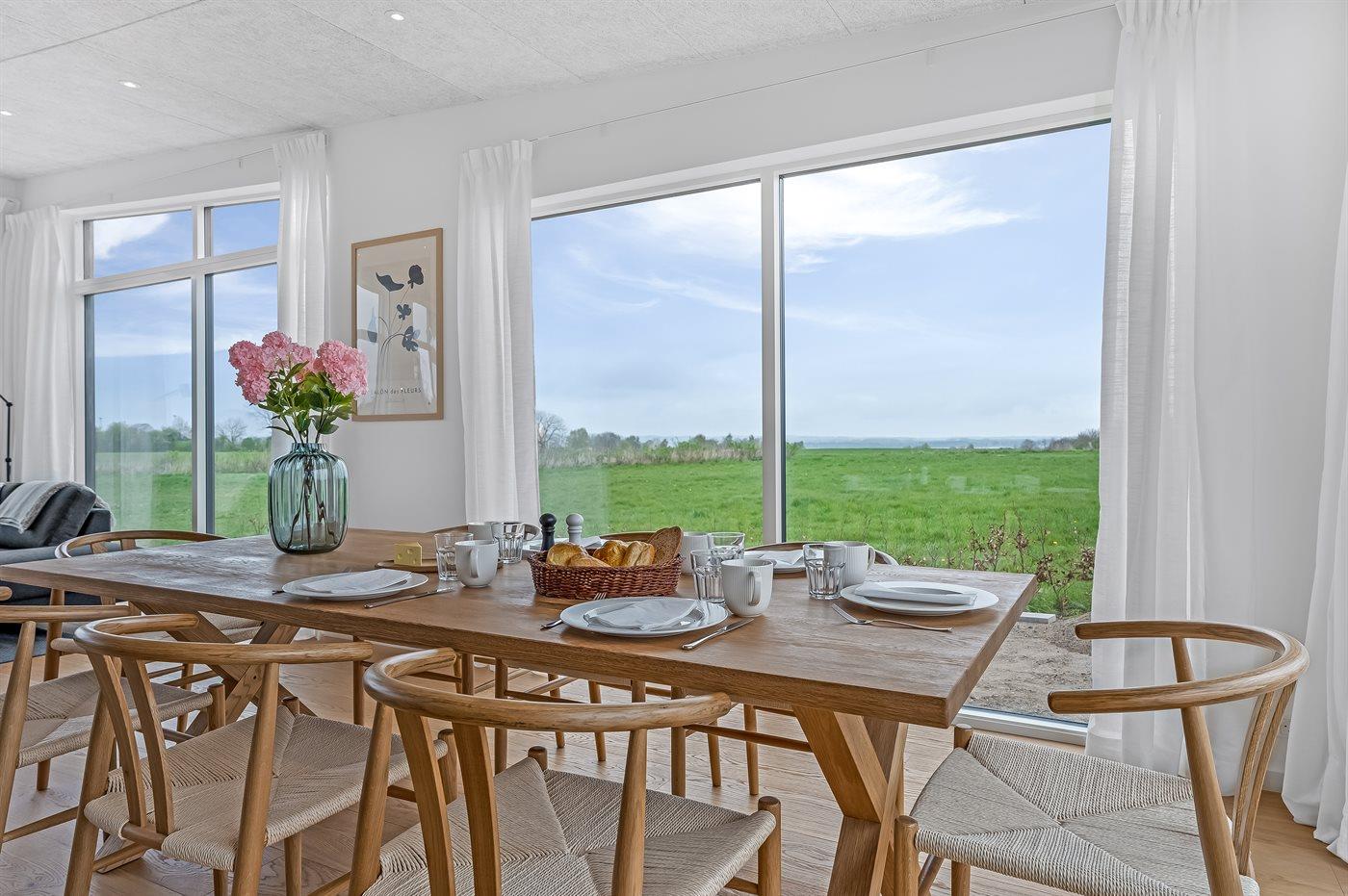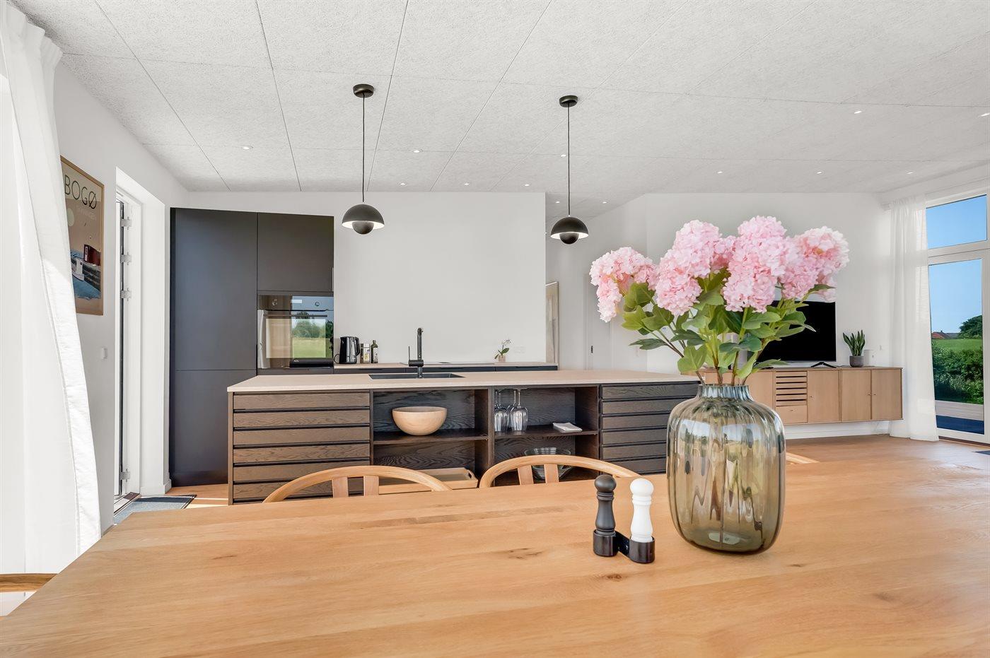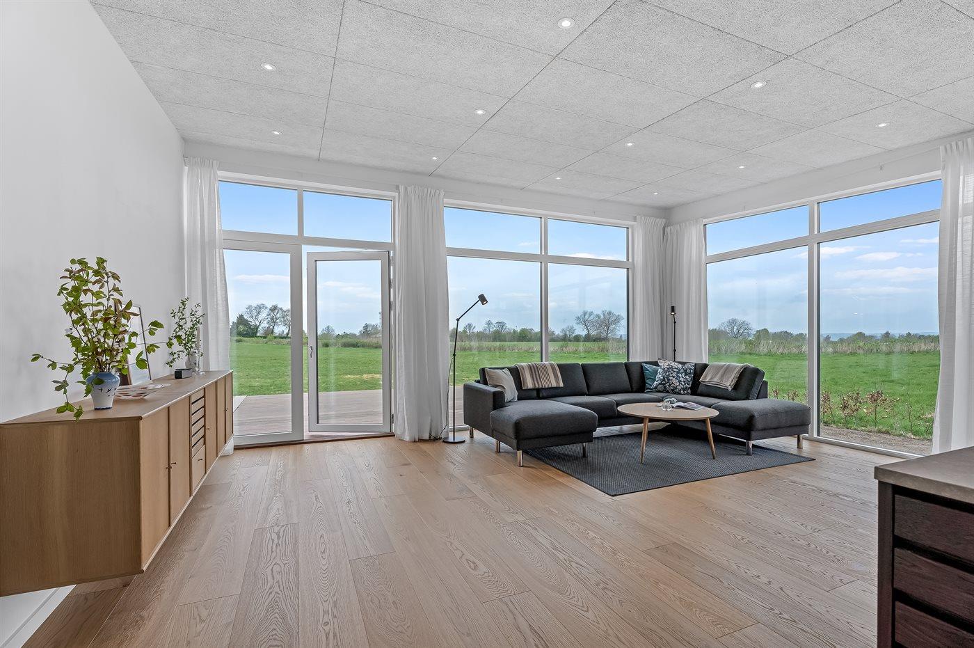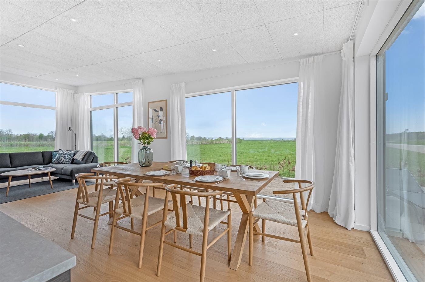 Modern vakantiehuis in Bogø met vloerverwarming, smart-tv's en een groot terras voor 8 personen.