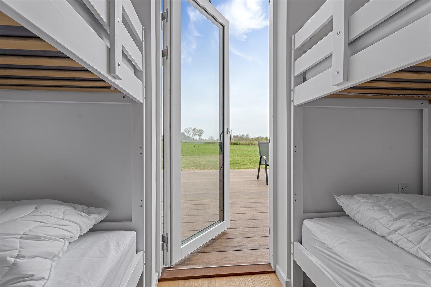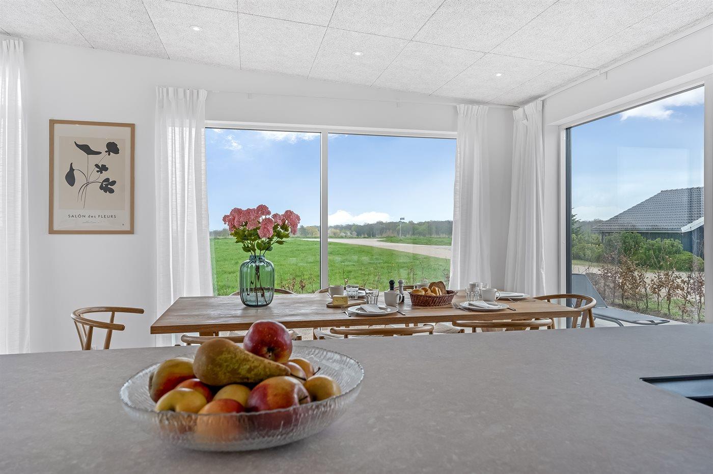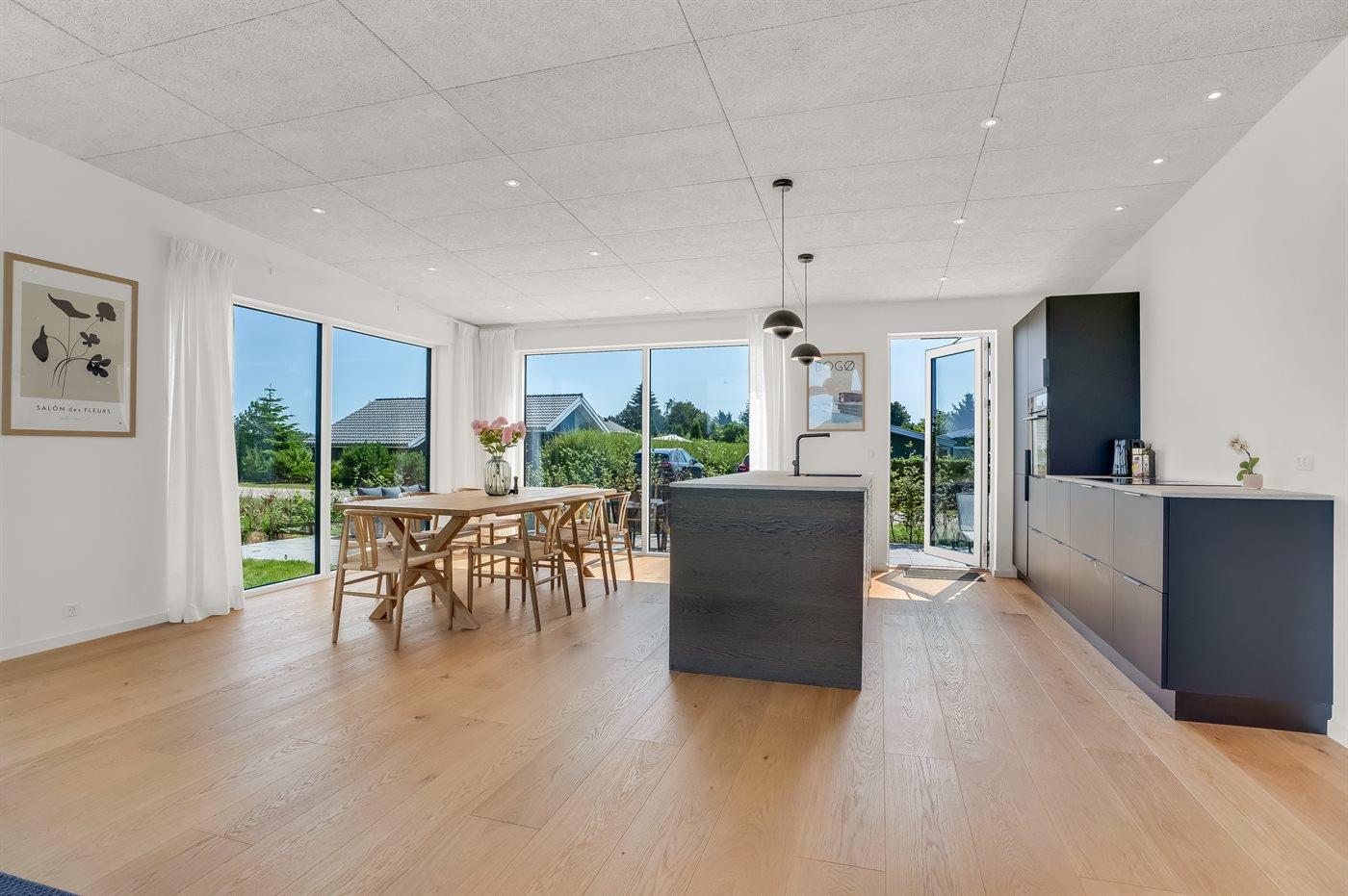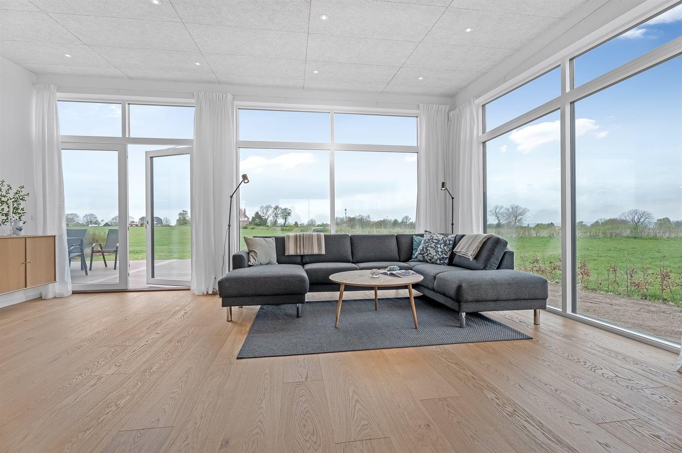 Modern vakantiehuis in Bogø met vloerverwarming, smart-tv's en een groot terras voor 8 personen.