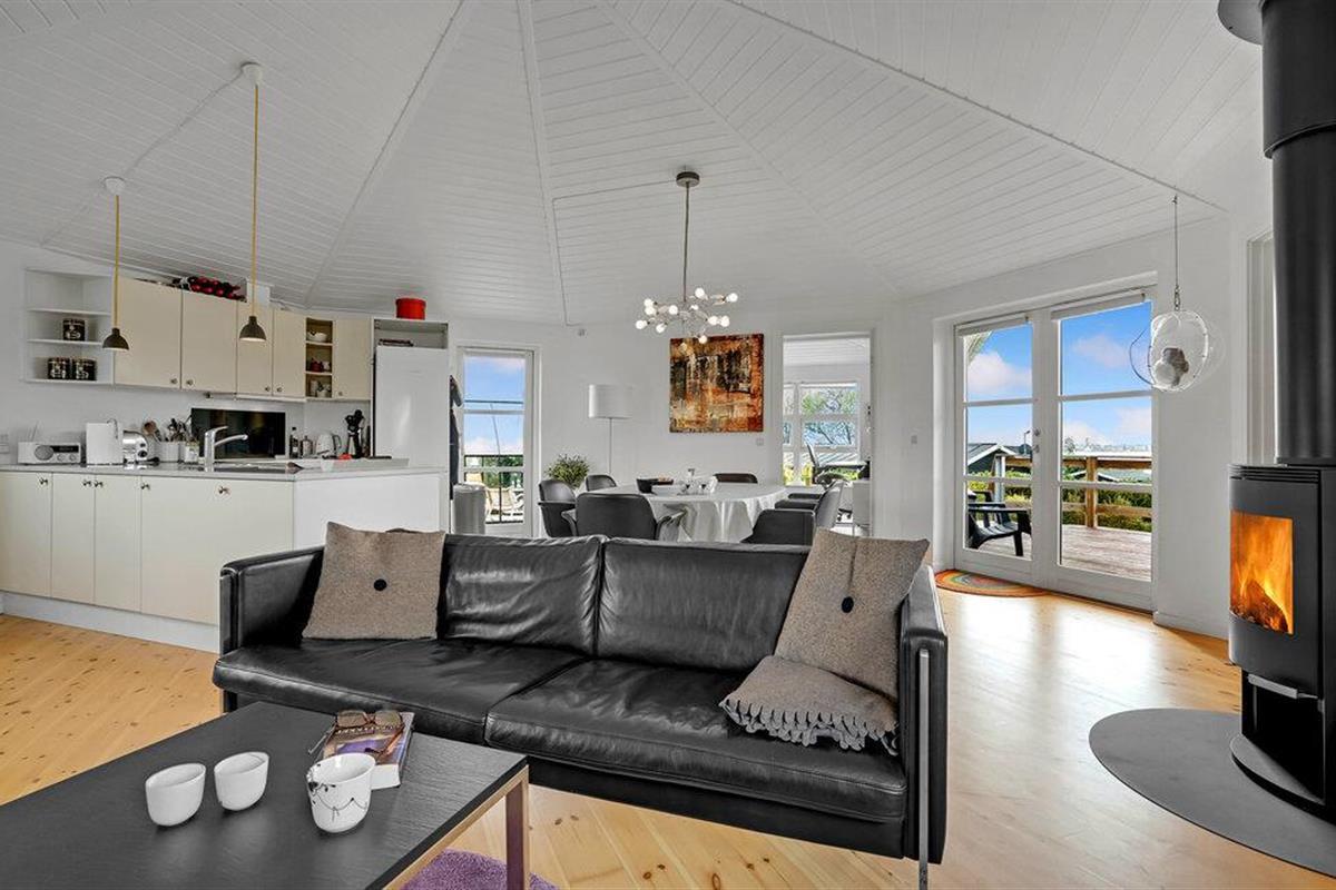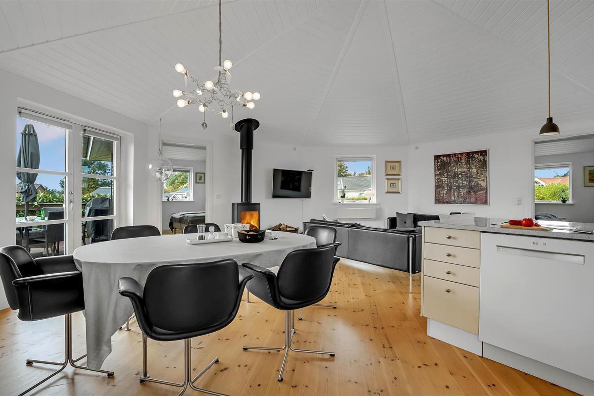 Geniet van de lichte, open woonsfeer met veel hout en grote ramen die de kamer overspoelen met licht en uitzicht op het platteland. Ontspan bij de knisperende houtkachel en leun achterover op de bank om comfortabel je favoriete serie te streamen. Breng een avond door met samen koken in de goed uitgeruste keuken, neem dan plaats aan de grote eettafel en sluit de dag gezellig af.