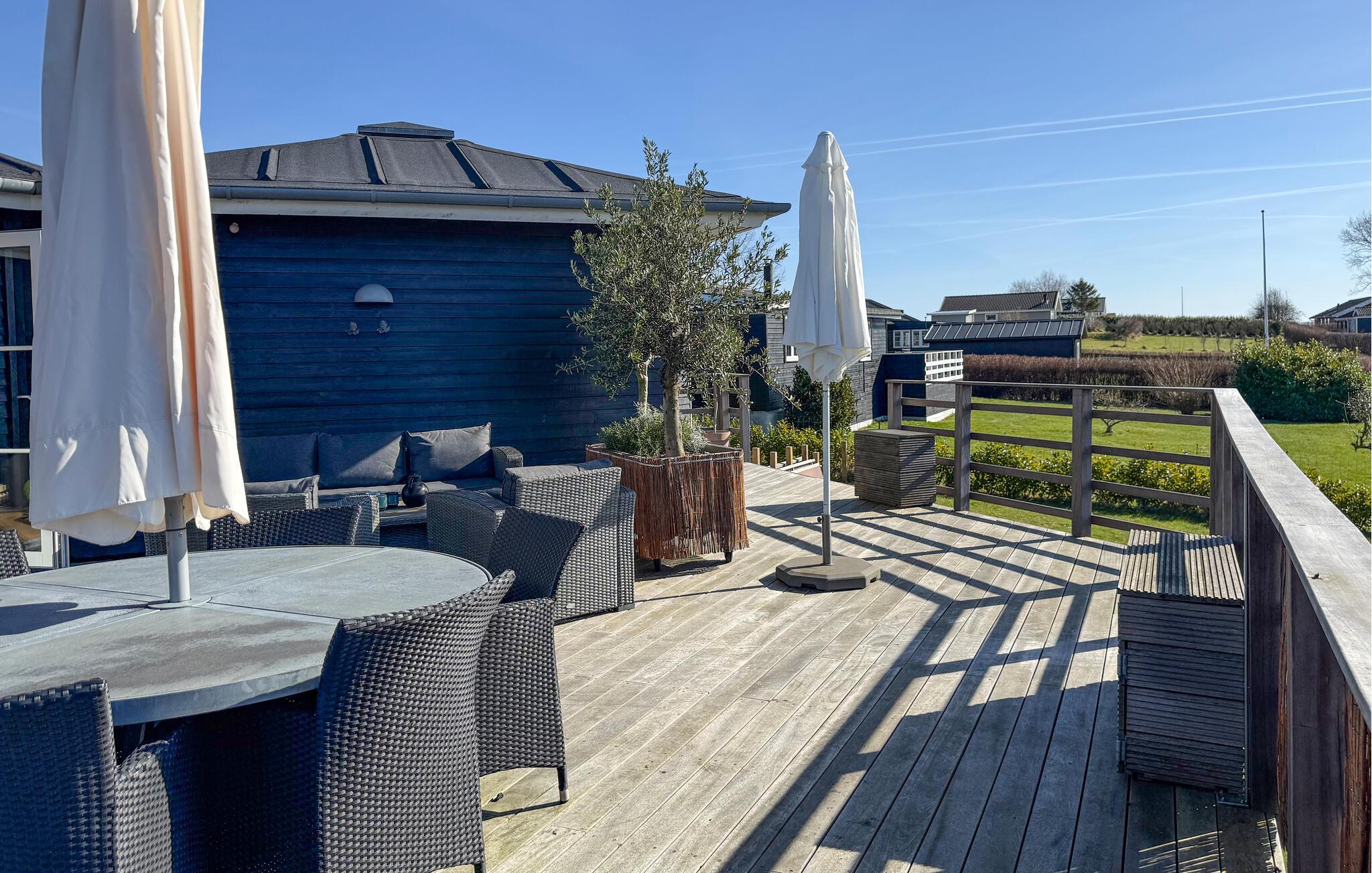 Geniet van ontspannende uren in de zon op het ruime terras en laat je blik over het water dwalen. Maak het jezelf gemakkelijk in de loungemeubels en voel de frisse bries. Breng gezellige avonden door met barbecueën of ontspan in de prachtige sauna en sluit je dag af met weldadige warmte.