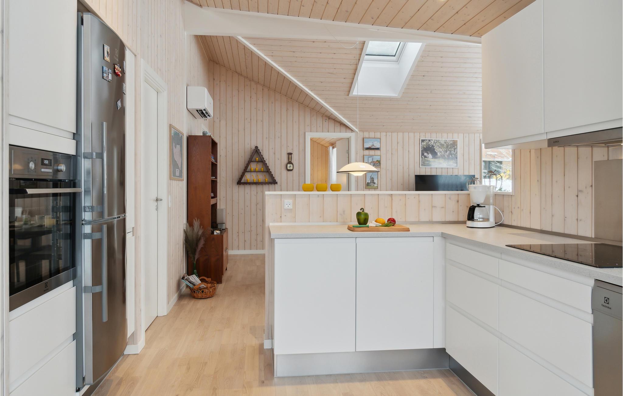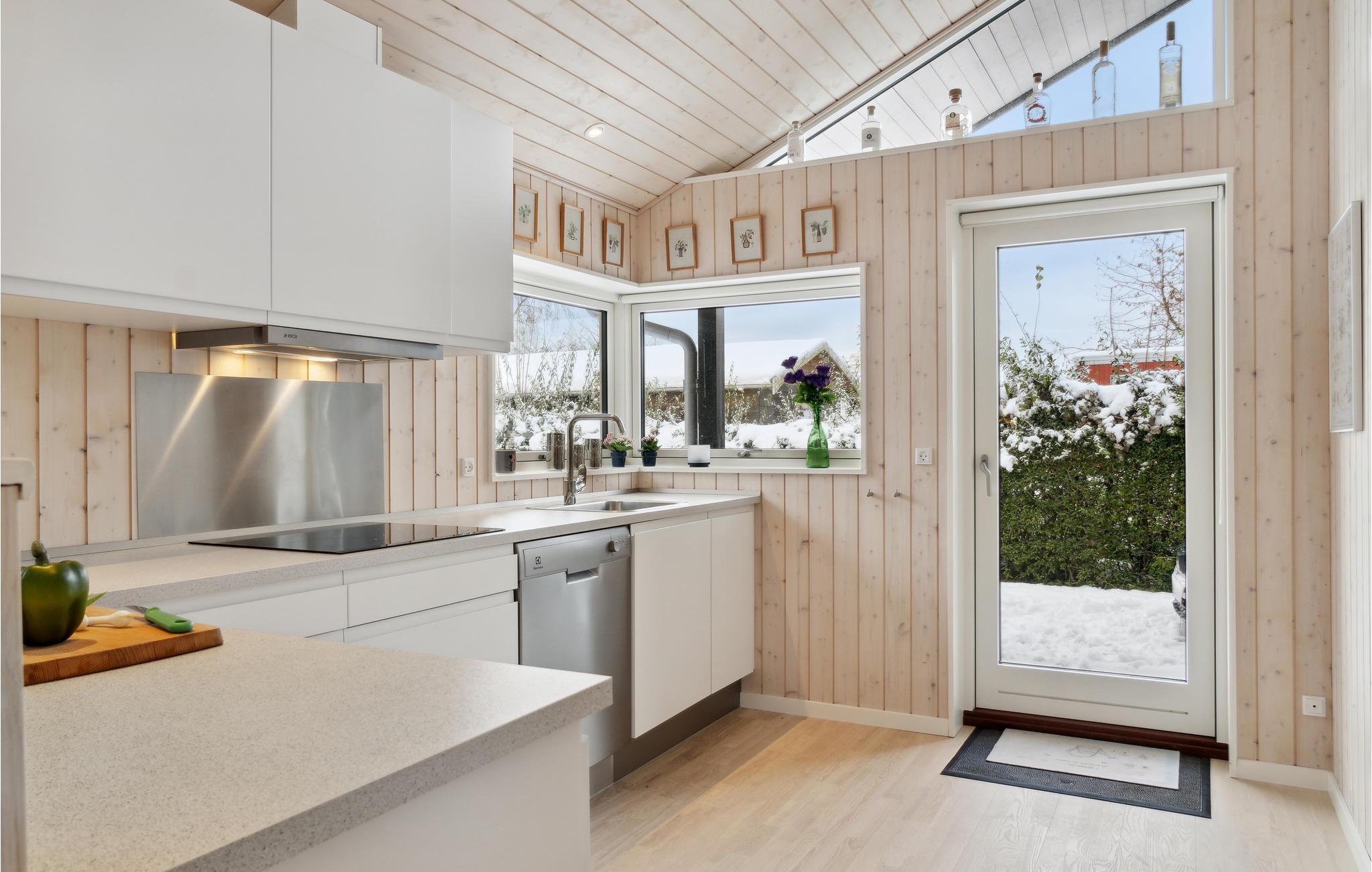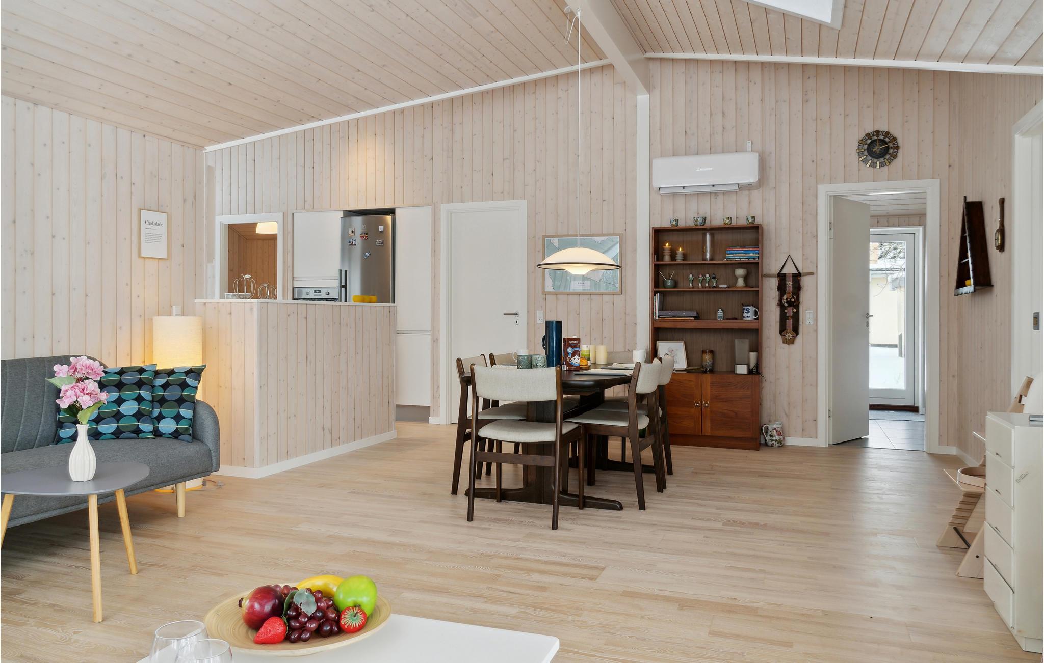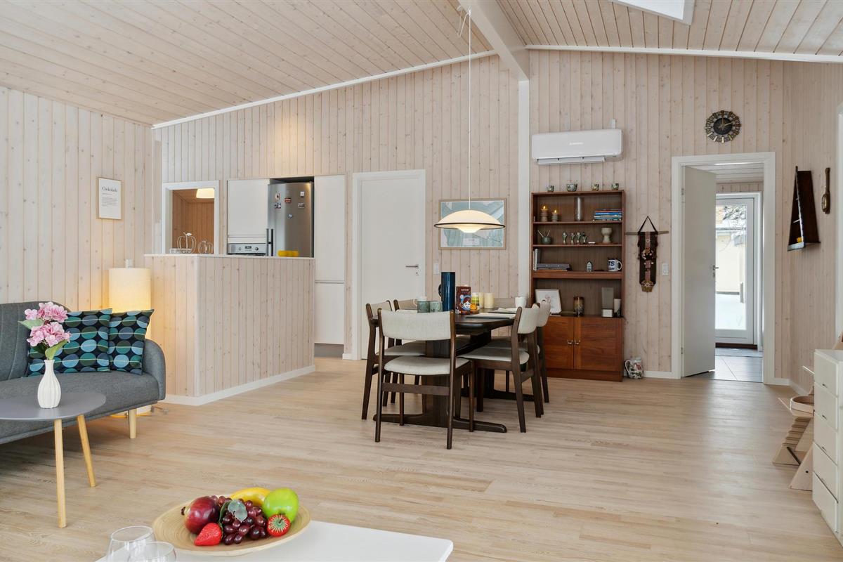 Welkom in dit uitnodigende houten huis, waar je het jezelf comfortabel kunt maken met je gezin terwijl je geniet van je vakantie op een idyllische locatie in het centrum van Bogø. De klassieke charme van het zomerhuis en de lichtgekleurde meubels maken het gemakkelijk om je hier thuis te voelen, en je kunt genieten van een prachtig uitzicht op de tuin door de grote ramen terwijl je samen eet en ontspant. De gezellige woonkamer nodigt uit om samen te zitten en 's avonds lang te kletsen of te kaarten.