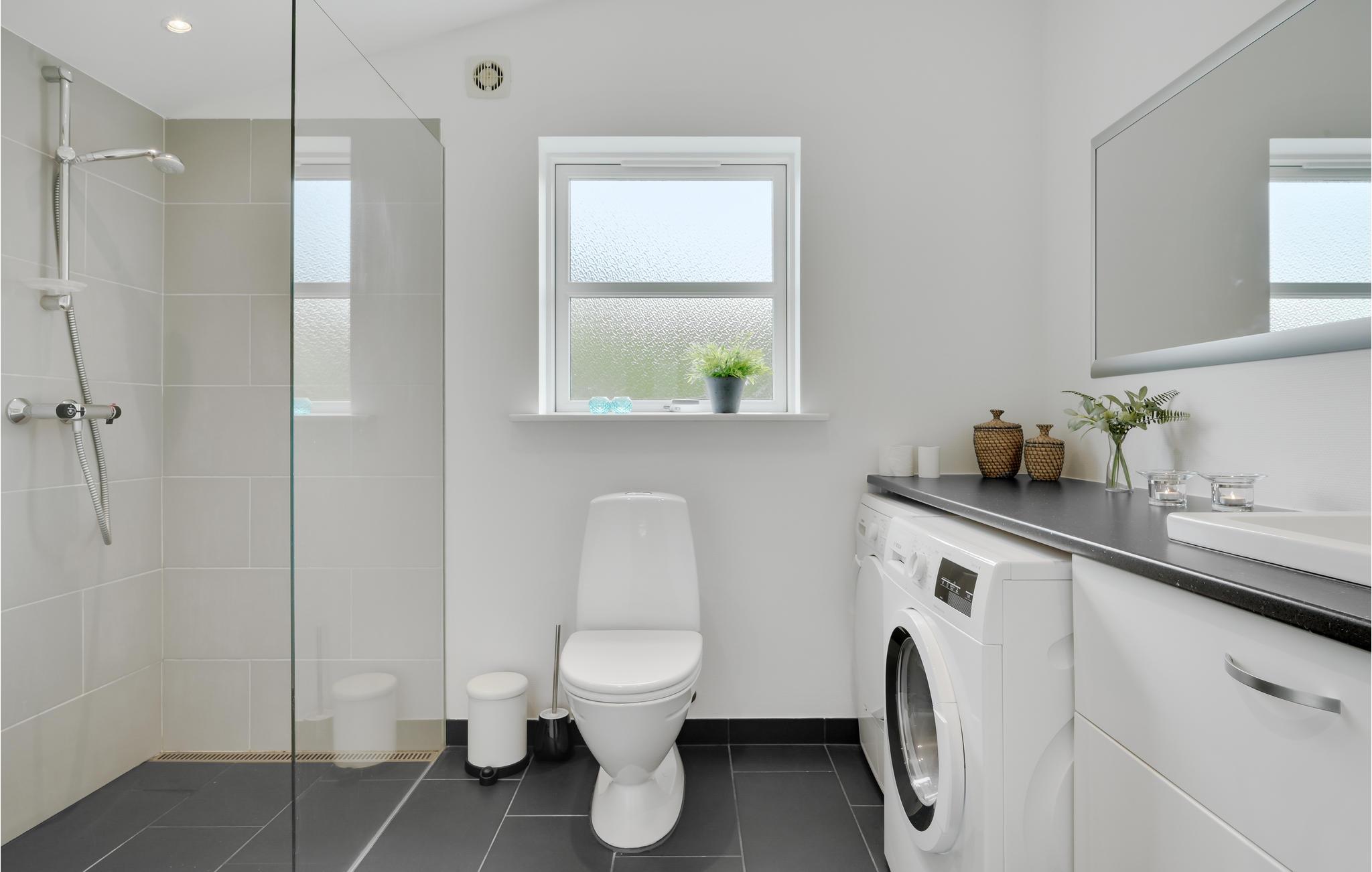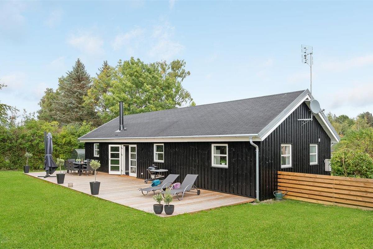 Ontdek dit lichte vakantiehuis op Bogø met open keuken, groot terras en luxe voorzieningen, ideaal voor een actief gezin.