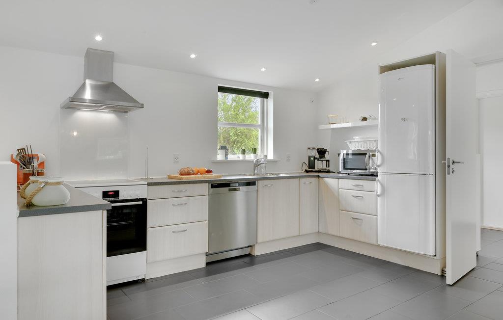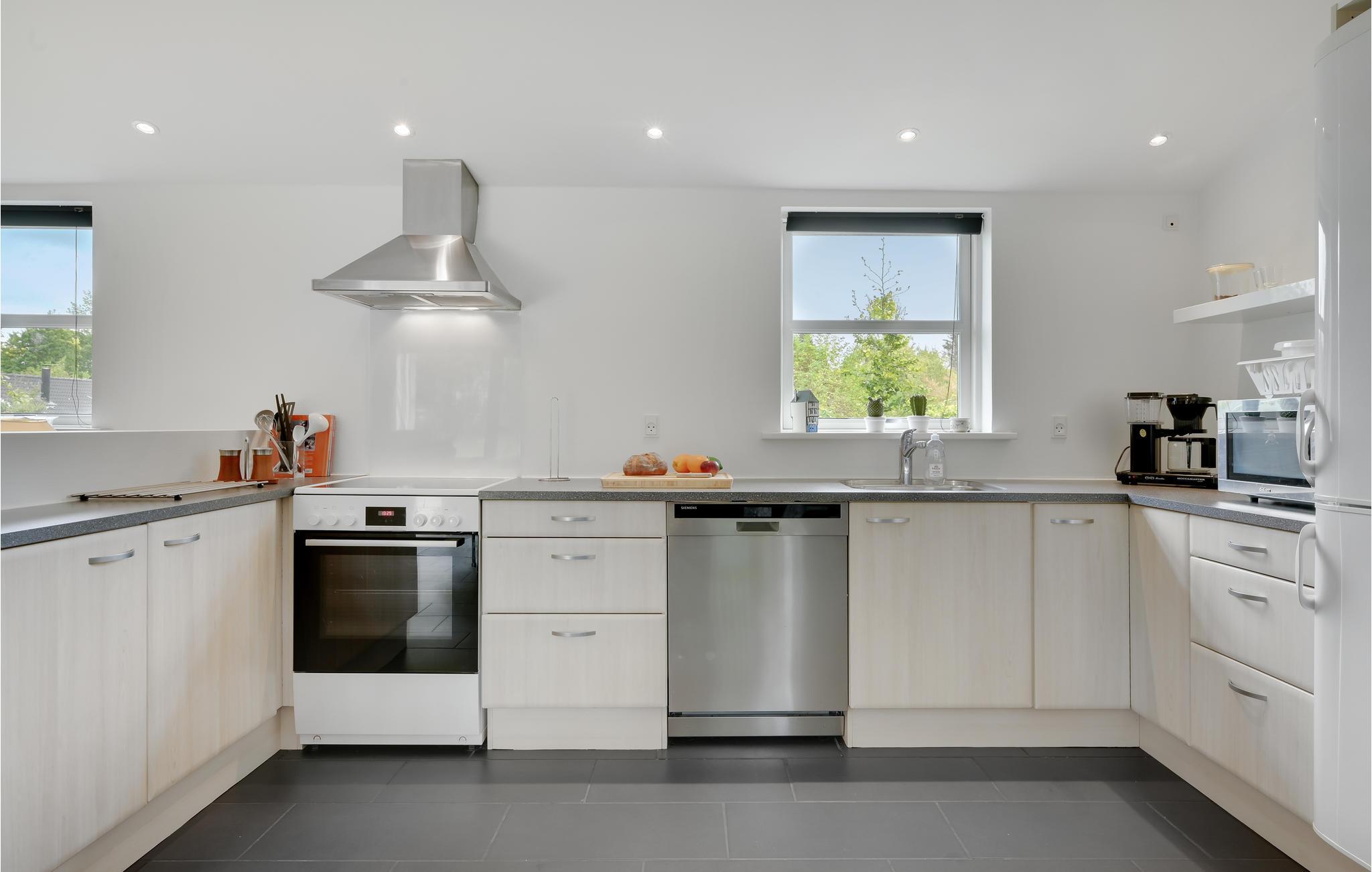 Op Bogø vindt u dit lichte en mooie vakantiehuis met een open keuken en een grote woonkamer ingericht met goede meubels.