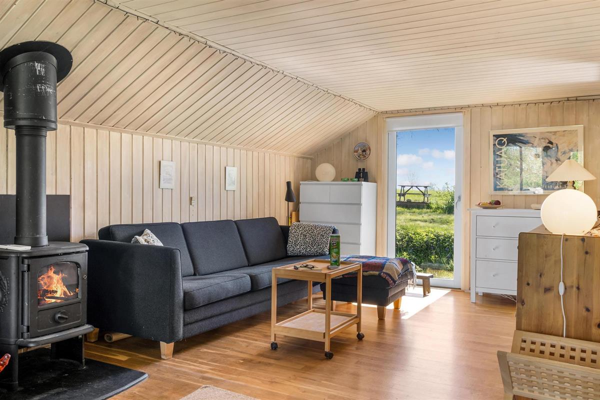 Gezellig vakantiehuis op eiland Bogø met tuin, open haard en terras, ideaal voor rust en familieplezier.