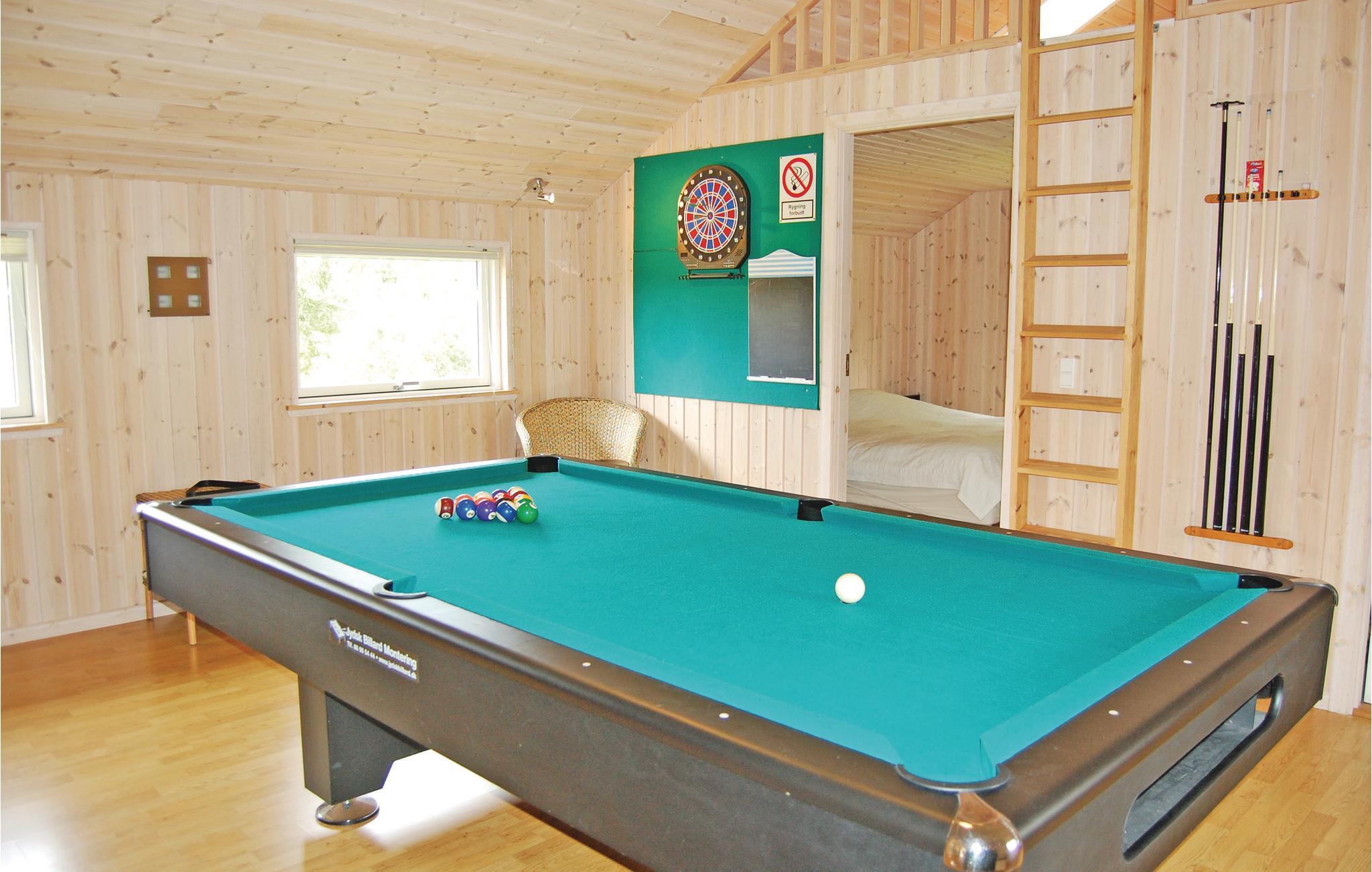Eersteklas houten vakantiehuis uit 2006, gelegen op Bogø op een natuurlijk perceel, dicht bij natuurgebieden. Groot, open terras met beschutte plekken en comfortabel tuinmeubilair. Binnen vindt u overal houten wanden en vloerverwarming. Alles is van hout, behalve de vloeren in de keuken en badkamers. Ontspan in het gebruiksvriendelijke bubbelbad in de ene badkamer, en de wasmachine en droger bevinden zich in de andere. Grote ramen in het woongedeelte zorgen voor prachtig licht. Voor uw kinderen zijn biljart, tafeltennis en darts beschikbaar in de fantastische activiteitenruimte. 3 slaapkamers met een tweepersoonsslaapbank, een slaapkamer met een tweepersoonsbed.