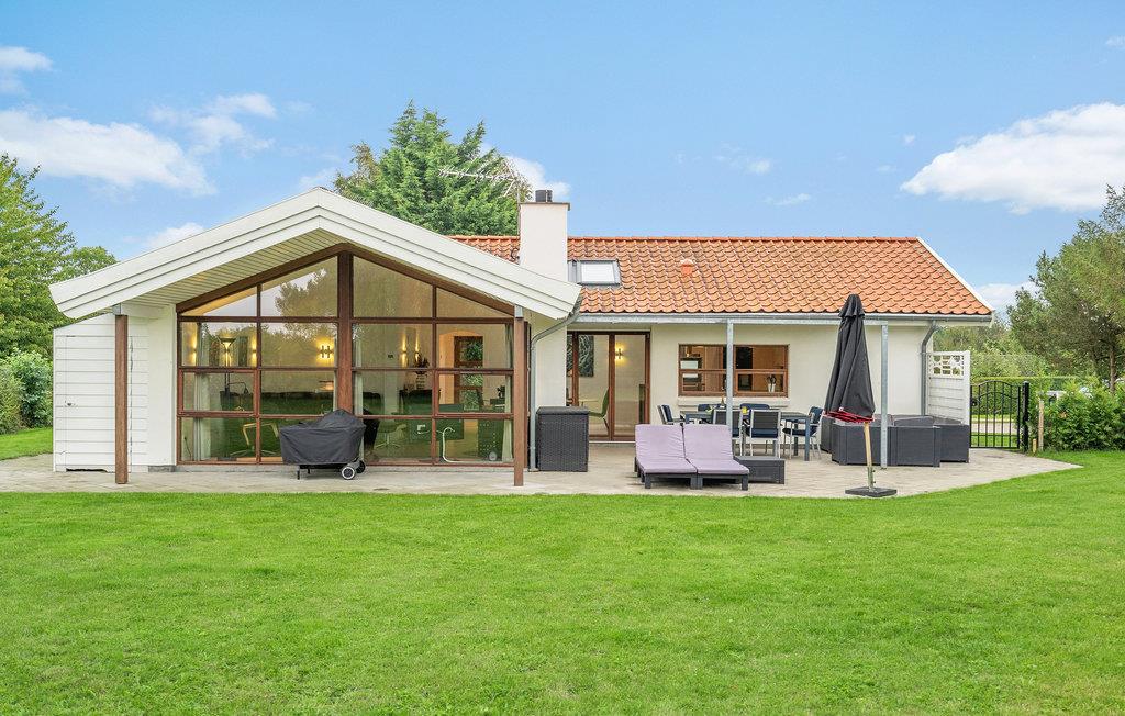 Ontspan in dit energiezuinige vakantiehuis op Bogø met luxe voorzieningen en een fraaie tuin.