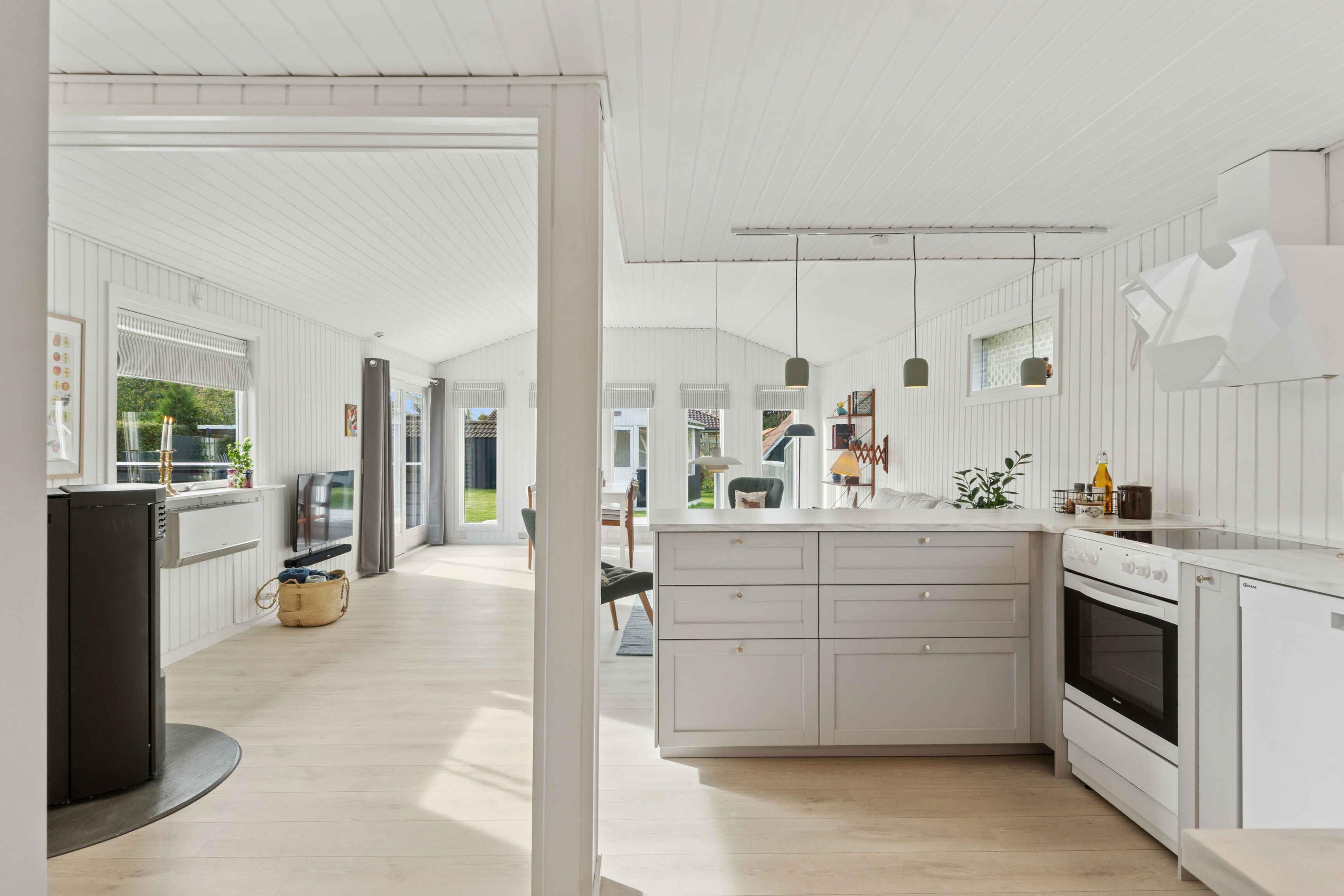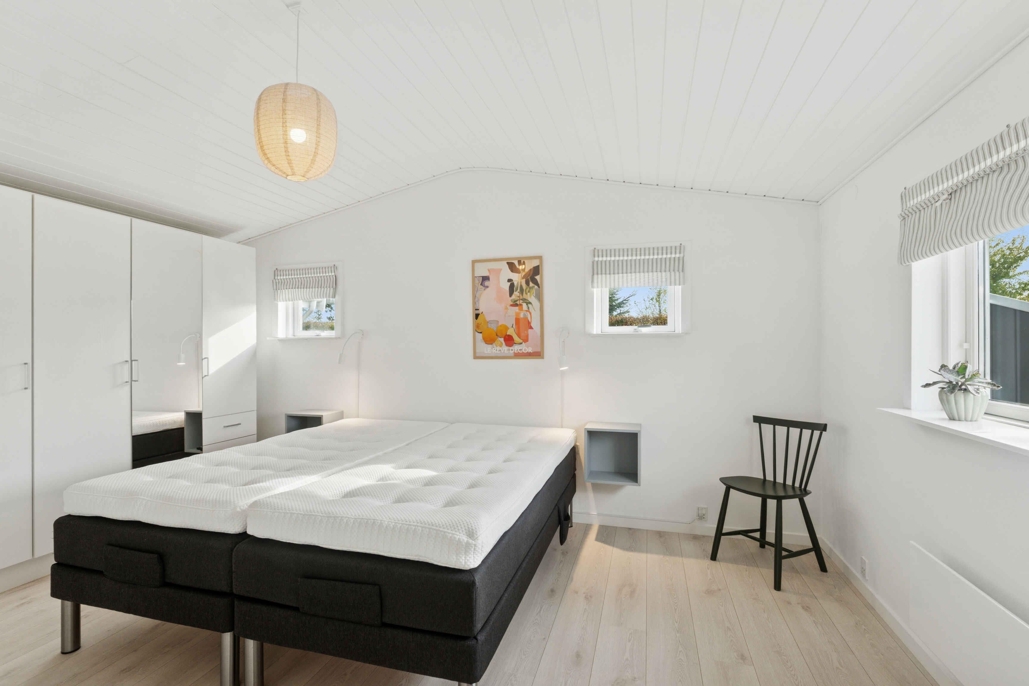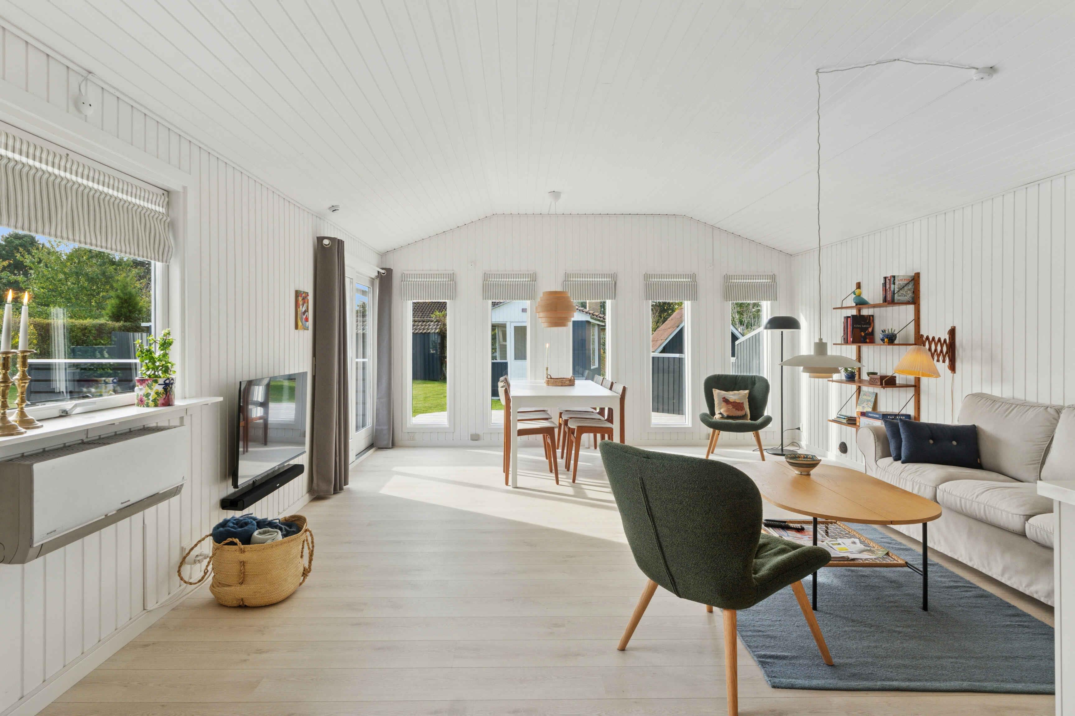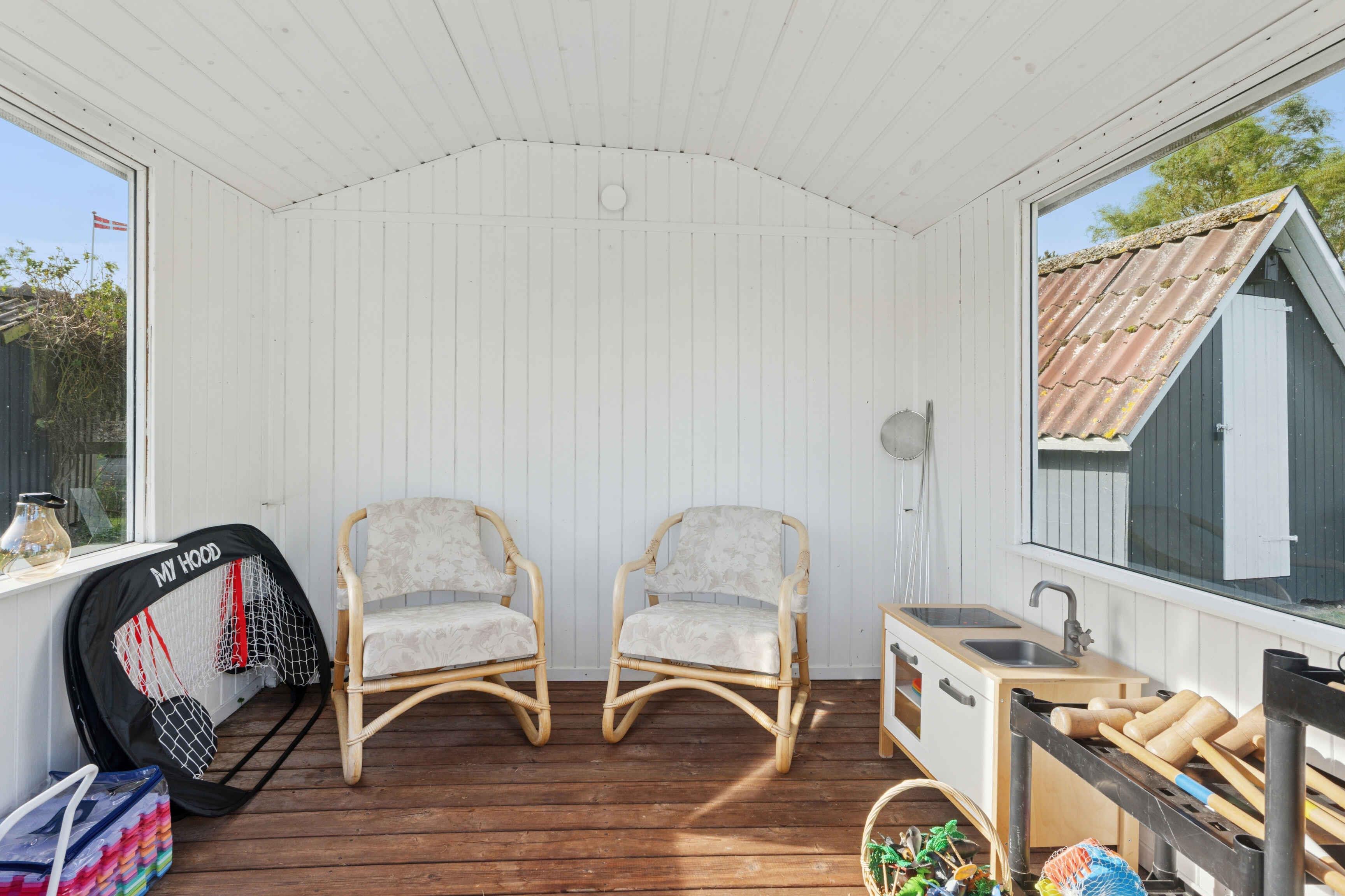 Het huis biedt 102 m² comfort voor alle seizoenen en een apart, geïsoleerd bijgebouw van 12 m². Er zijn drie slaapkamers met tweepersoonsbedden, waarvan één in het bijgebouw dicht bij het huis. Een kinderbed, campingbedje en Trip Trap-stoel maken het praktisch voor gezinnen met kleine kinderen. De woonkamer vormt het hart van het huis, met televisie, warmte van de pelletkachel of warmtepomp en directe toegang tot de tuin. De badkamer heeft vloerverwarming en een extra gastentoilet beschikt over een wasmachine. Buiten is er ruimte voor spel en ontspanning. De tuin heeft een speelhuisje, speelgoed, krocket, Kubb en een voetbaldoel. Daarnaast zijn er een gasbarbecue, tuinmeubelen en een gezellig vuurplaats. De omgeving is ideaal voor een ontspannen vakantie. Bogø staat bekend om zijn rustige sfeer, mooie natuur en korte afstanden tot het water. Het eiland nodigt uit tot wandel- en fietstochten door velden, kleine bossen en langs de kust. Vanuit hier is het gemakkelijk om de bezienswaardigheden van Møn te bezoeken, zoals de Møns Klint, Dark Sky-gebieden en gezellige haventjes op zowel Bogø als Møn. Natuur, lokale charme en activiteiten maken het bijzonder aantrekkelijk. In de nabije omgeving kun je ook vissen, vogels spotten en genieten van rustige stranddagen. Kleine veerverbindingen en lokale eetgelegenheden zorgen voor extra vakantiesfeer.