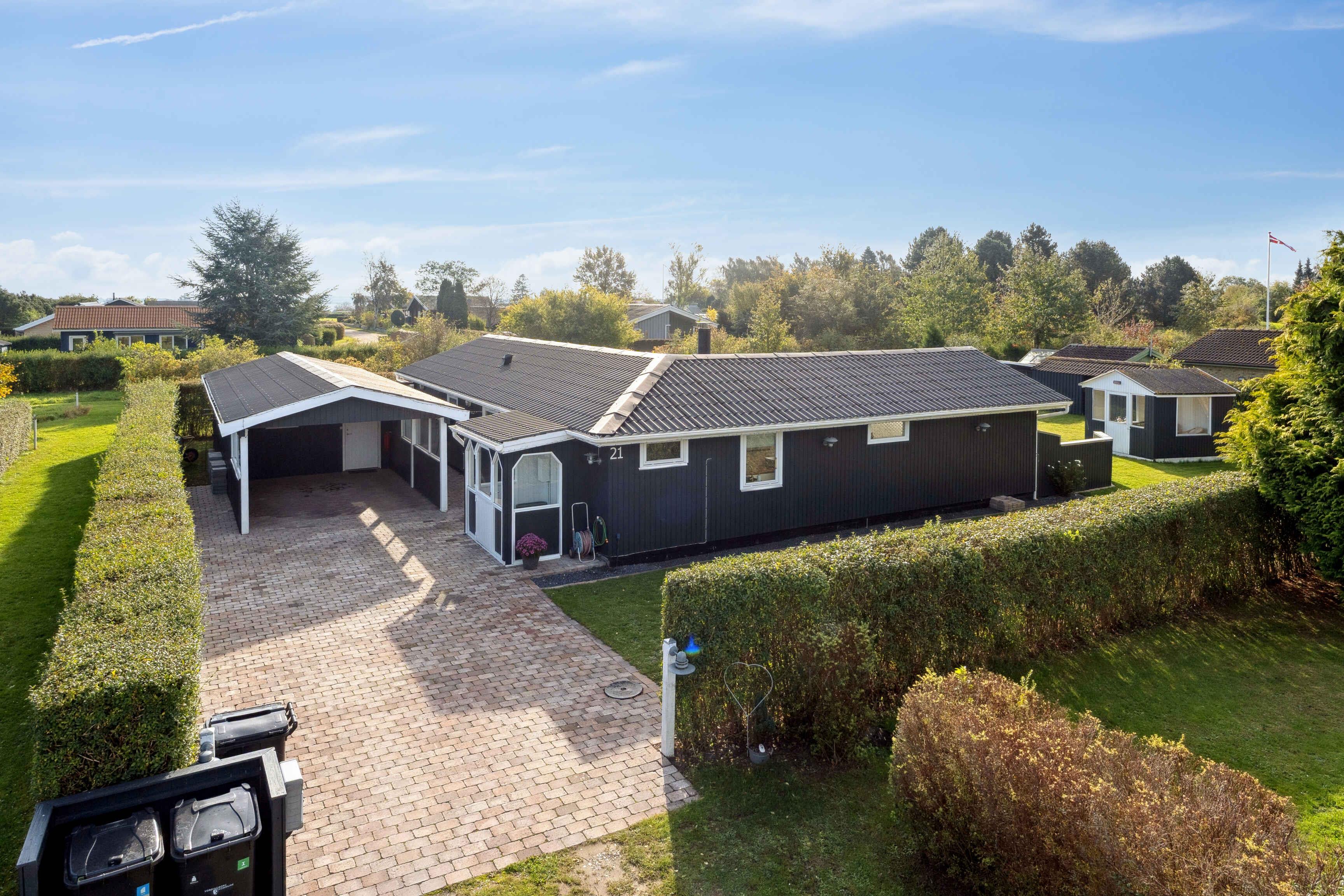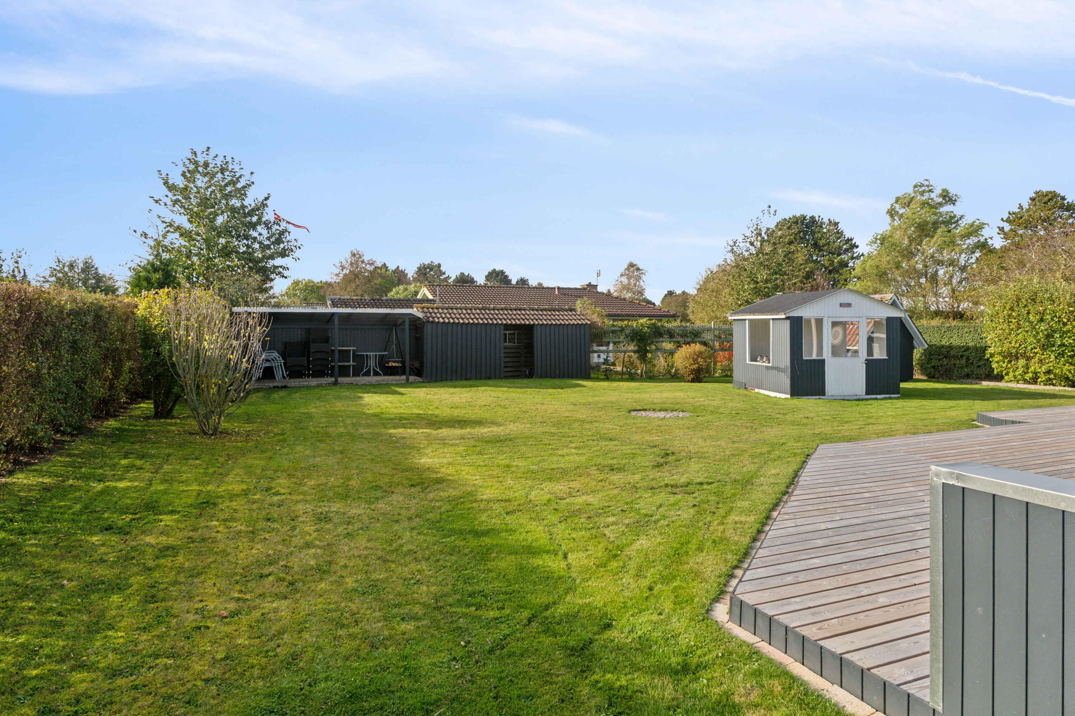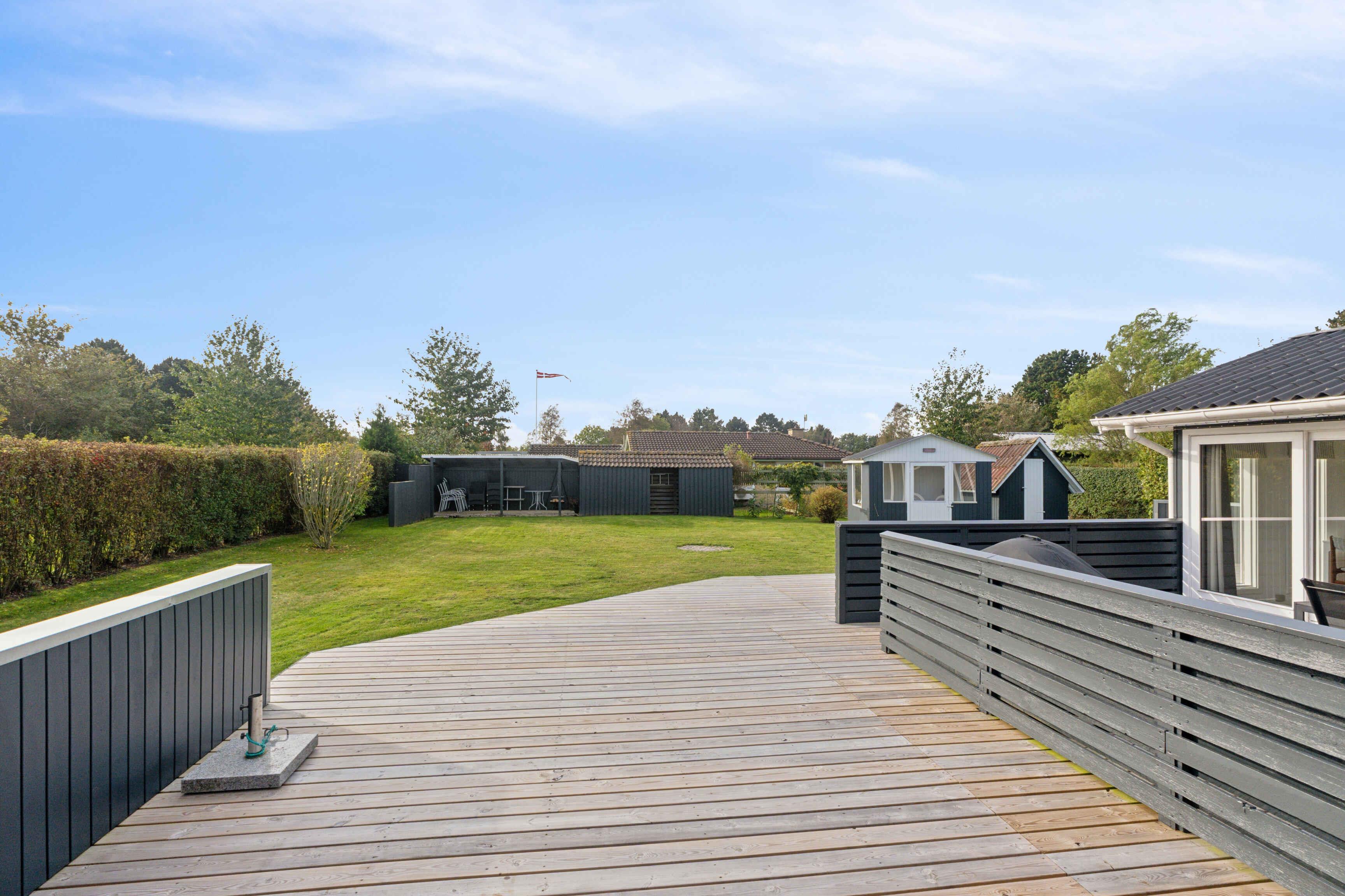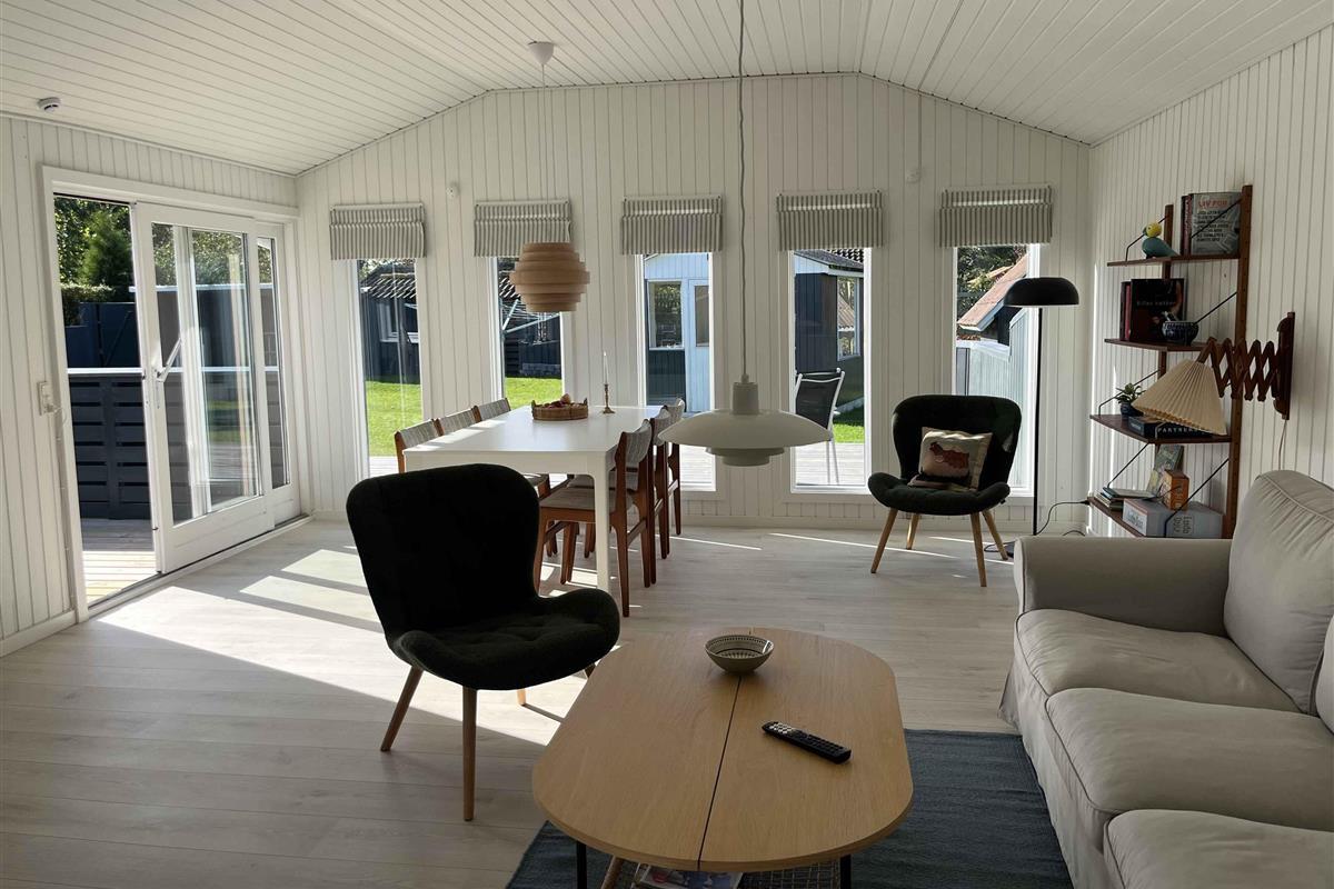 Het huis biedt 102 m² comfort voor alle seizoenen en een apart, geïsoleerd bijgebouw van 12 m². Er zijn drie slaapkamers met tweepersoonsbedden, waarvan één in het bijgebouw dicht bij het huis. Een kinderbed, campingbedje en Trip Trap-stoel maken het praktisch voor gezinnen met kleine kinderen. De woonkamer vormt het hart van het huis, met televisie, warmte van de pelletkachel of warmtepomp en directe toegang tot de tuin. De badkamer heeft vloerverwarming en een extra gastentoilet beschikt over een wasmachine. Buiten is er ruimte voor spel en ontspanning. De tuin heeft een speelhuisje, speelgoed, krocket, Kubb en een voetbaldoel. Daarnaast zijn er een gasbarbecue, tuinmeubelen en een gezellig vuurplaats. De omgeving is ideaal voor een ontspannen vakantie. Bogø staat bekend om zijn rustige sfeer, mooie natuur en korte afstanden tot het water. Het eiland nodigt uit tot wandel- en fietstochten door velden, kleine bossen en langs de kust. Vanuit hier is het gemakkelijk om de bezienswaardigheden van Møn te bezoeken, zoals de Møns Klint, Dark Sky-gebieden en gezellige haventjes op zowel Bogø als Møn. Natuur, lokale charme en activiteiten maken het bijzonder aantrekkelijk. In de nabije omgeving kun je ook vissen, vogels spotten en genieten van rustige stranddagen. Kleine veerverbindingen en lokale eetgelegenheden zorgen voor extra vakantiesfeer.