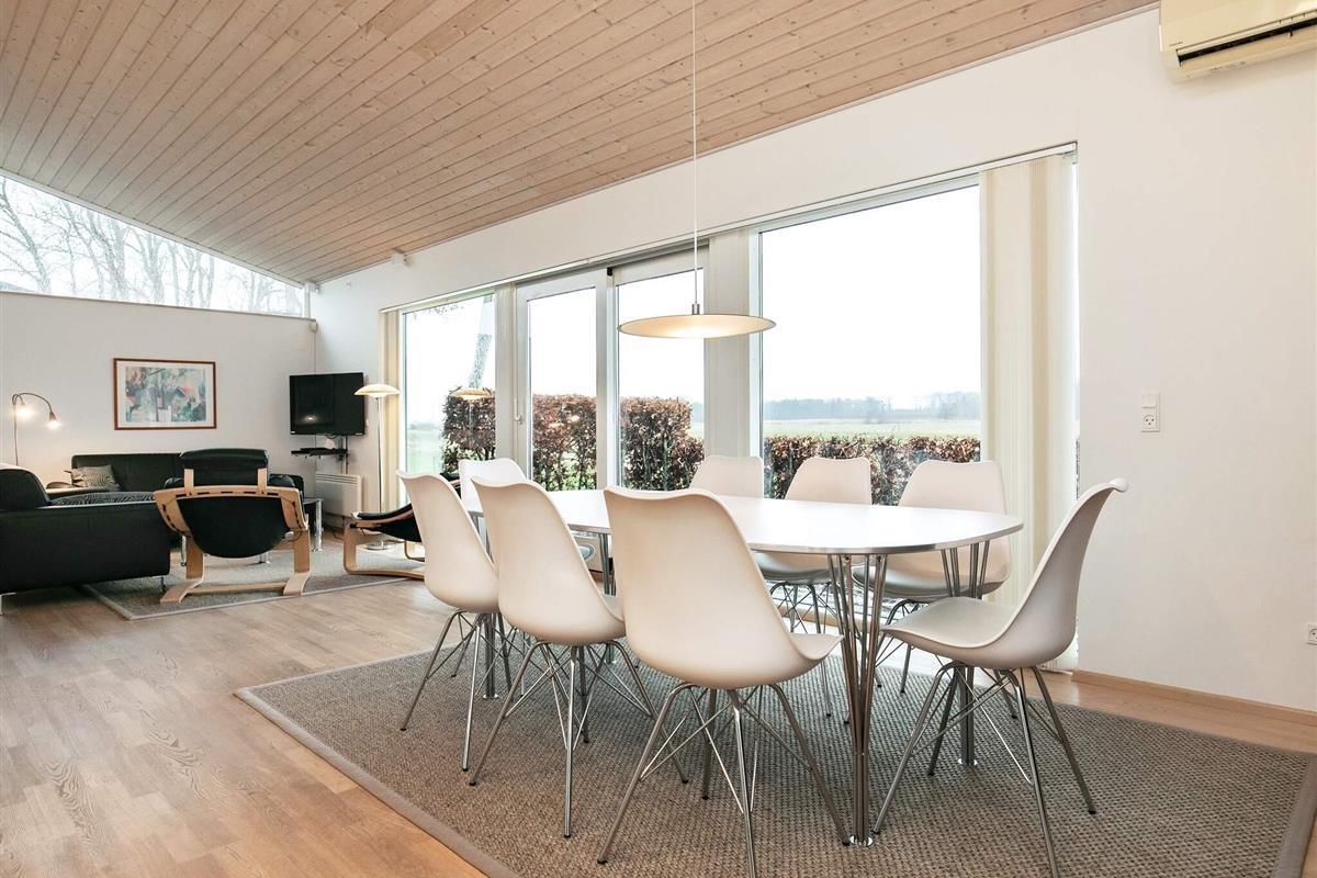 Das Ferienhaus hat vier Schlafzimmer, drei mit Doppelbetten, wobei die Betten auseinander gestellt werden können und das letzte mit einem Bett von 140 cm. Es gibt zudem zwei Bäder mit Fußbodenheizung im Haus, das eine mit Dusche, das zweite mit einem 2-Personen-Whirlpool mit Handbrause. Gute Küchenausstattung mit u.a. Ceranfeld, Heißluftofen und Geschirrspüler. Das Ferienhaus wird ggf. mittels klimafreundlicher Wärmepumpe und elektrischen Heizkörpern beheizt. Von dem offenen Küchen-/Wohnbereich aus hat man direkten Zugang zur Südterrasse mit Ausblick in die offene Feldlandschaft ringsum.