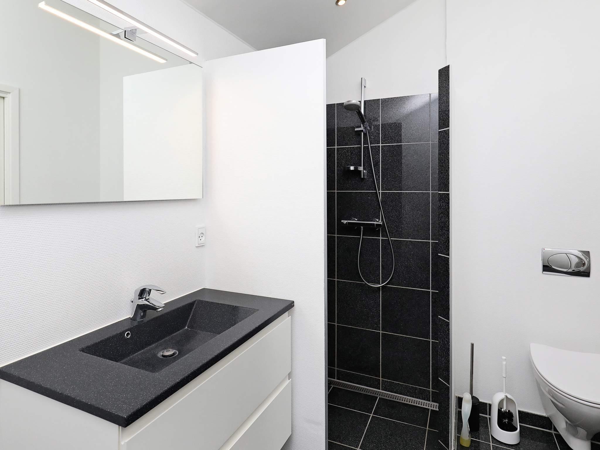 Bad: WC, Waschb., Dusche, Fußbodenheiz.