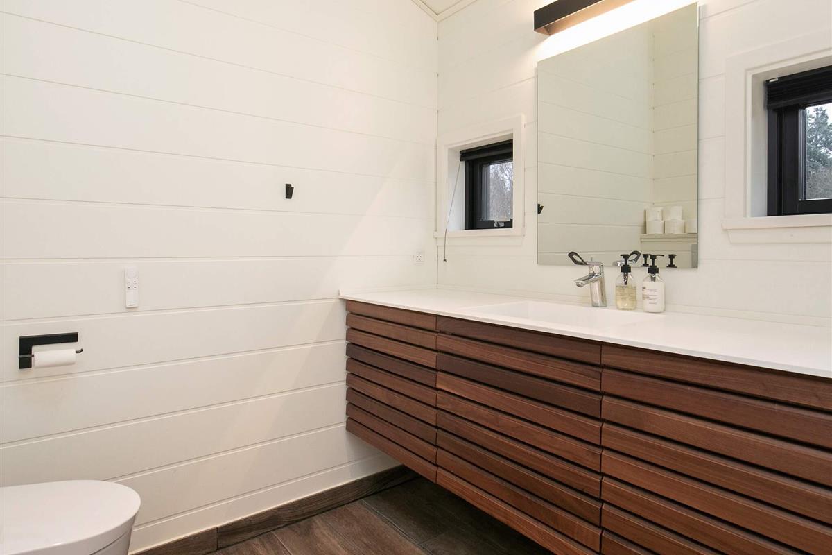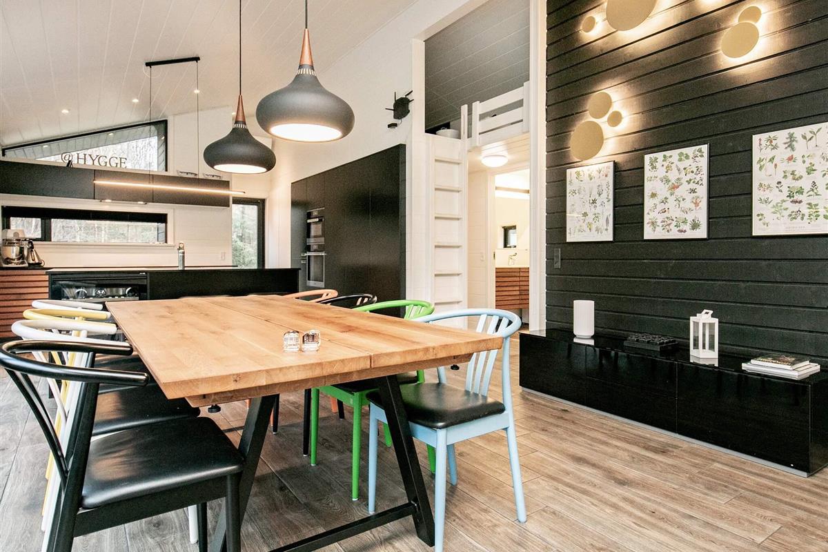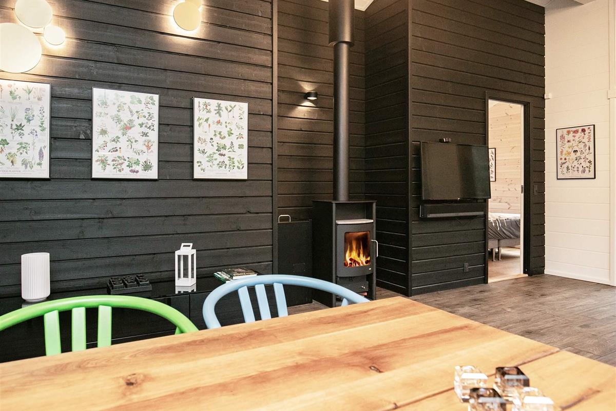 Das Haus ist durchdacht für Familien oder Gruppen ausgestattet und verfügt über zwei Badezimmer, einen gut möblierten offenen Wohn- und Essbereich sowie direkten Zugang zu den großzügigen Terrassen. Große Fenster durchfluten das Wohnzimmer mit viel Licht. Dort befindet sich auch ein gemütlicher Dachboden (Hems) mit Fernseher und Panoramablick auf den umliegenden Wald und den darunterliegenden Whirlpool. Die moderne Küche ist komplett ausgestattet und bietet alles, was Sie zum Zubereiten von Mahlzeiten benötigen. Drei helle Schlafzimmer bieten reichlich Stauraum und erholsamen Schlaf. Dank Highspeed-Glasfaser-Internet (50/50 Mbit) bleiben Sie bequem in Verbindung oder streamen von Ihren eigenen Anbietern.