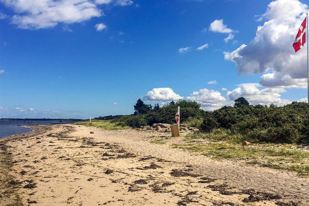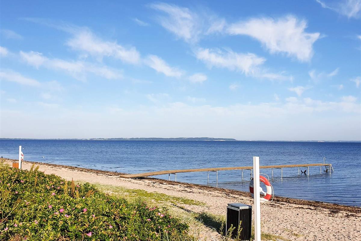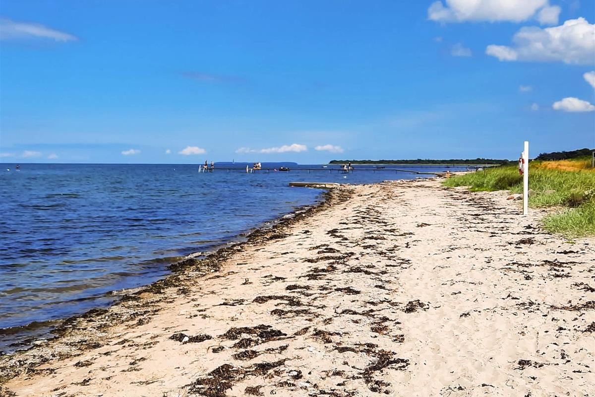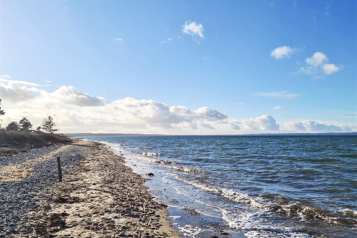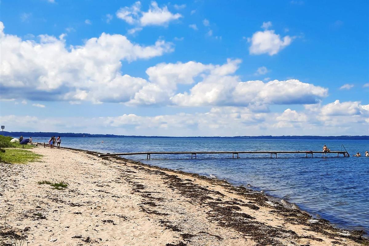 Für ganzjährigen Komfort verfügt das Haus sowohl über eine klimafreundliche Wärmepumpe als auch über einen Holzofen, der an kühleren Abenden für zusätzliche Wärme und Charme sorgt. Auf einem großen Waldgrundstück zwischen Skåstrup Strand und Bogense gelegen, verbindet die Lage ruhige Abgeschiedenheit mit einfachem Zugang zur Küste und den nahegelegenen Annehmlichkeiten der Stadt.