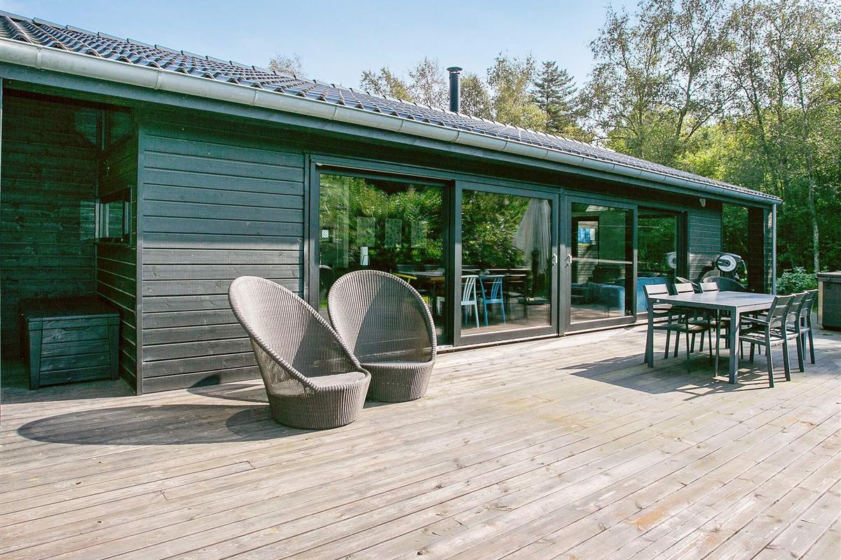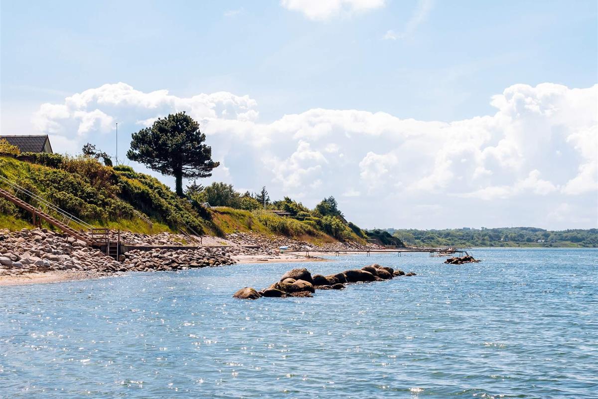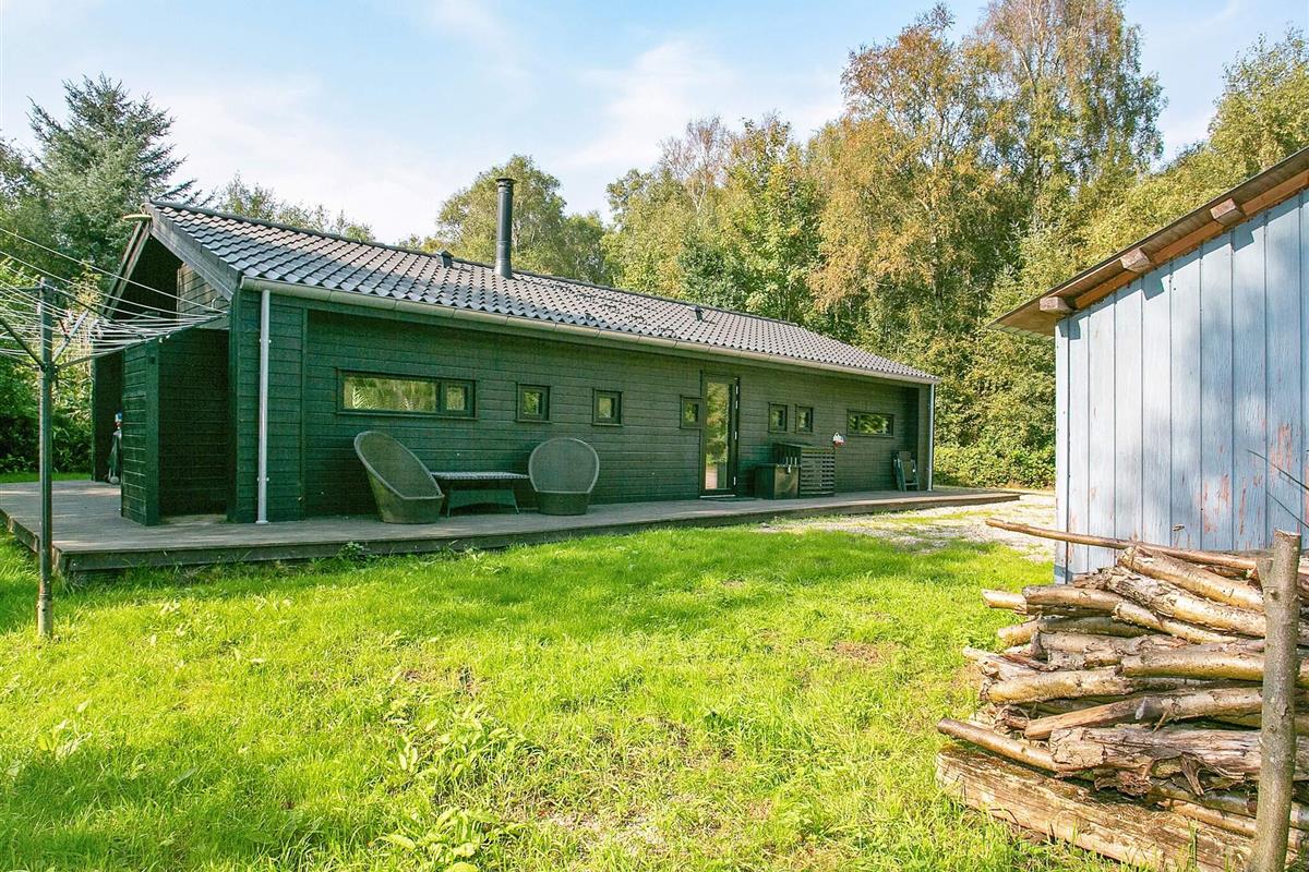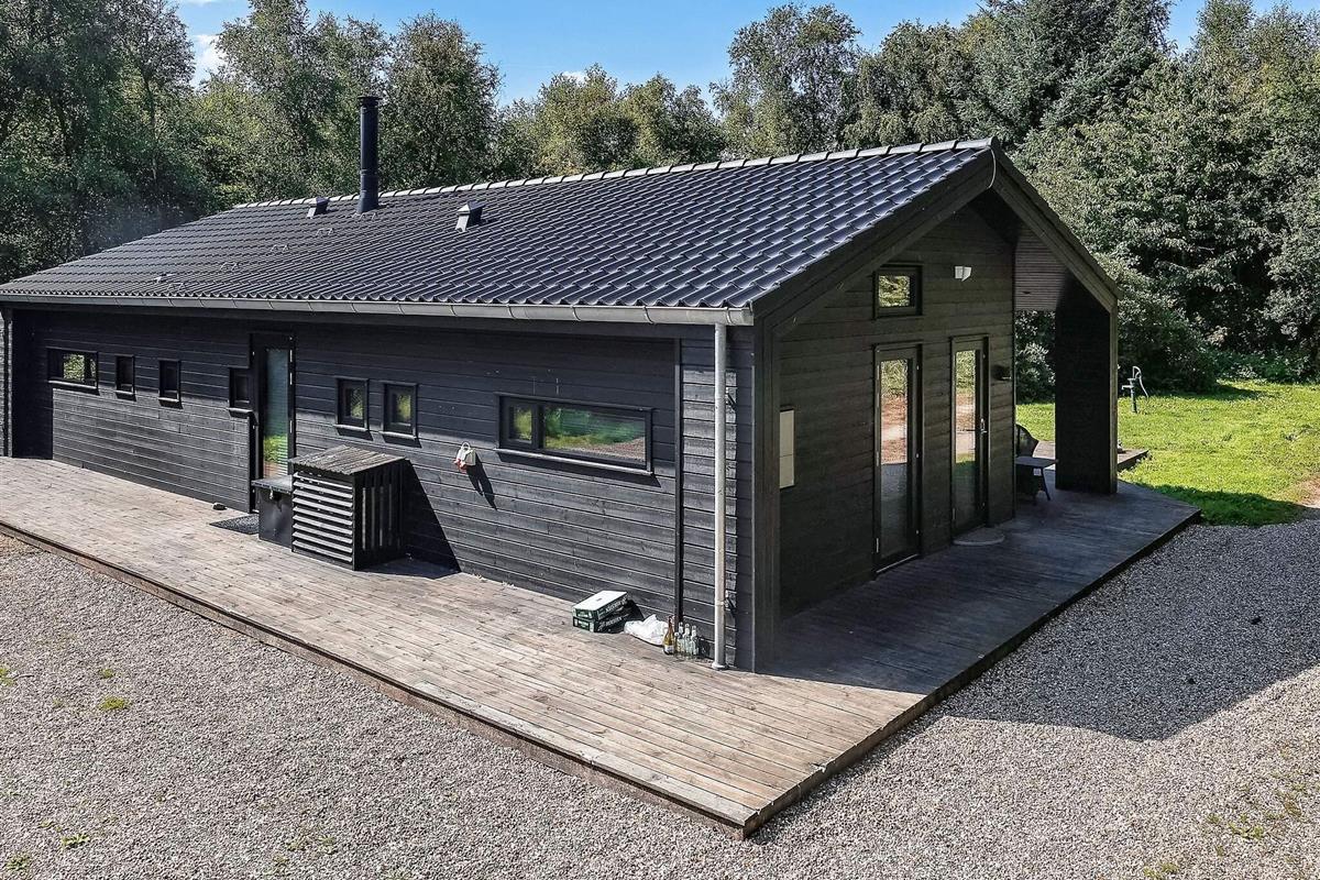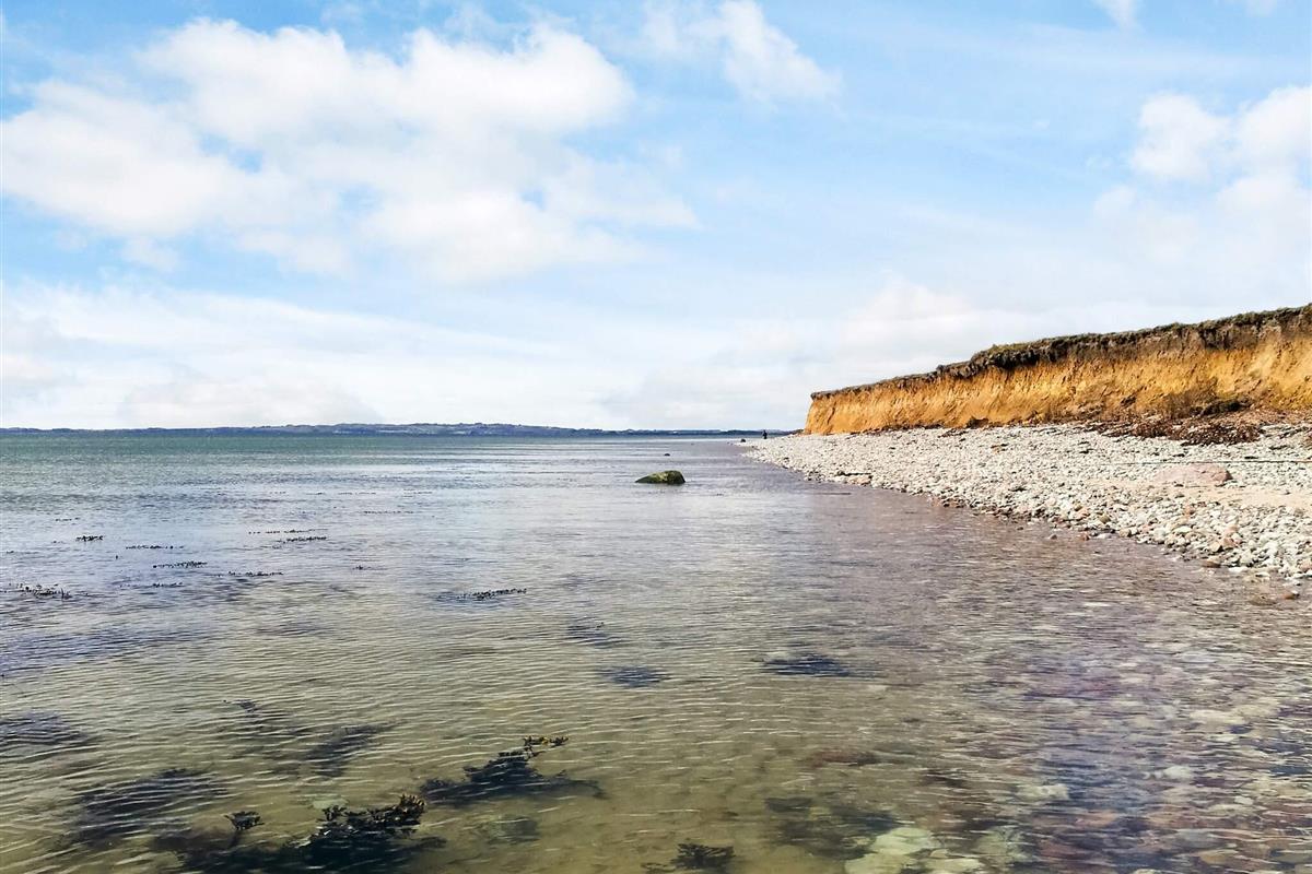 Für ganzjährigen Komfort verfügt das Haus sowohl über eine klimafreundliche Wärmepumpe als auch über einen Holzofen, der an kühleren Abenden für zusätzliche Wärme und Charme sorgt. Auf einem großen Waldgrundstück zwischen Skåstrup Strand und Bogense gelegen, verbindet die Lage ruhige Abgeschiedenheit mit einfachem Zugang zur Küste und den nahegelegenen Annehmlichkeiten der Stadt.