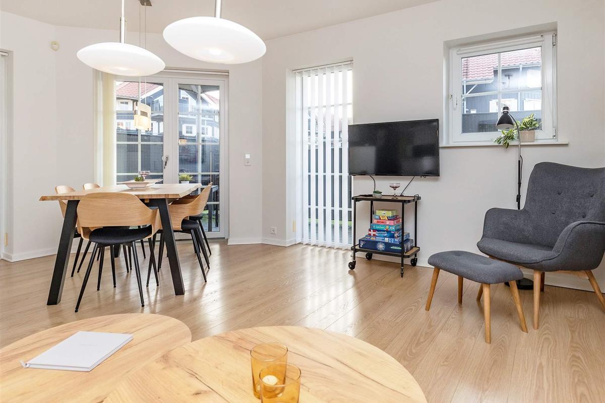 Ferienwohnung in der Nähe der Natur bei Bogense und nicht weit vom Hafen und Golfplatz sowie dem Schwimmbad des Ortes entfernt. Es gibt ein kombiniertes Wohn-/Esszimmer und eine gut ausgestattete Küche, die offen integriert ist. Guter Platz für bis zu fünf Personen, verteilt auf zwei Schlafzimmer, davon eines mit Doppelbett und eines mit Etagenbett. Darüber hinaus gibt es ein Zustellbett im Wohnzimmer. Badezimmer mit Dusche und angenehmer Fußbodenheizung. Die Ferienwohnung ist u.a. ausgestattet mit TV mit Chromecast, Internet und Bluetooth-Radio.