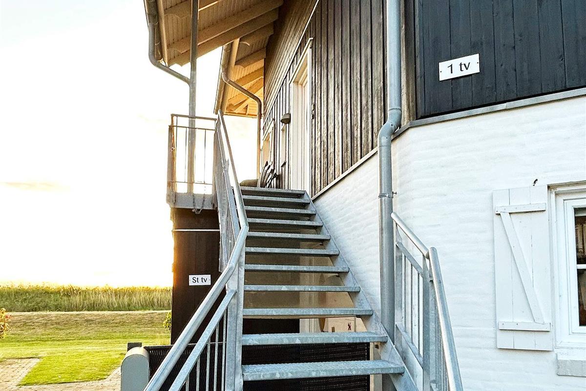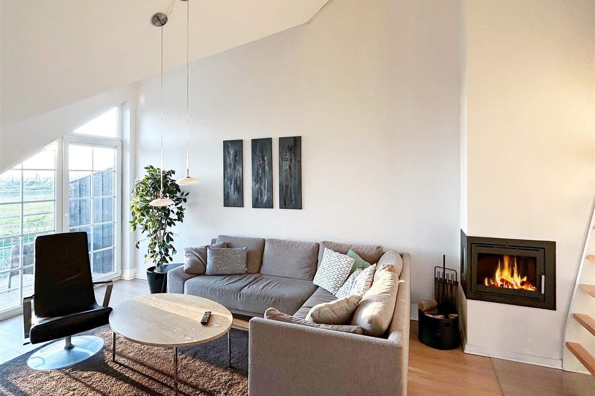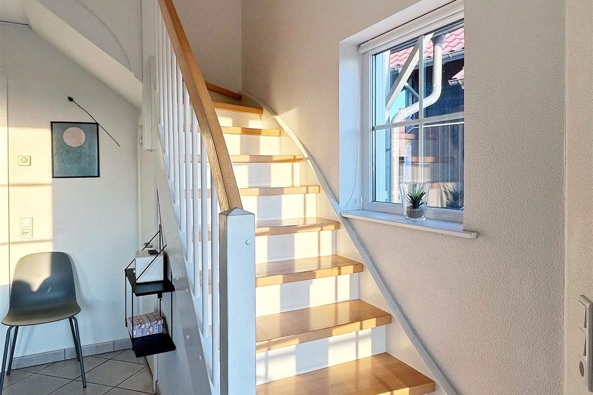 Die Wohnung verfügt über eine offene Wohnküche mit direktem Zugang zu einem großen Balkon mit herrlichem Meerblick. Im Erdgeschoss befinden sich ein Schlafzimmer mit Doppelbett und ein Badezimmer mit Whirlpool und Sauna – ein idealer Rückzugsort zum Entspannen.