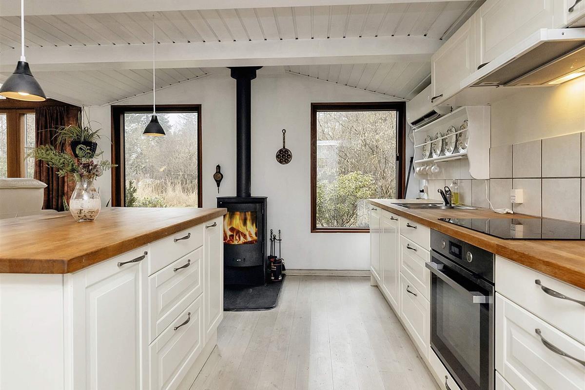Das „Mosehuset“ ist ein kleines Juwel inmitten der ruhigen Natur. Beim Betreten werden Sie von einem einladenden Wohnbereich mit großer Fensterfront begrüßt, der sich ideal für gesellige Zusammenkünfte oder entspannte Abende mit der Familie eignet. Die Lage dieses Hauses könnte nicht besser sein; inmitten der Marschlandschaft und schön geschützt vor Wind und Wetter, dennoch nahe des privaten Strandufers.