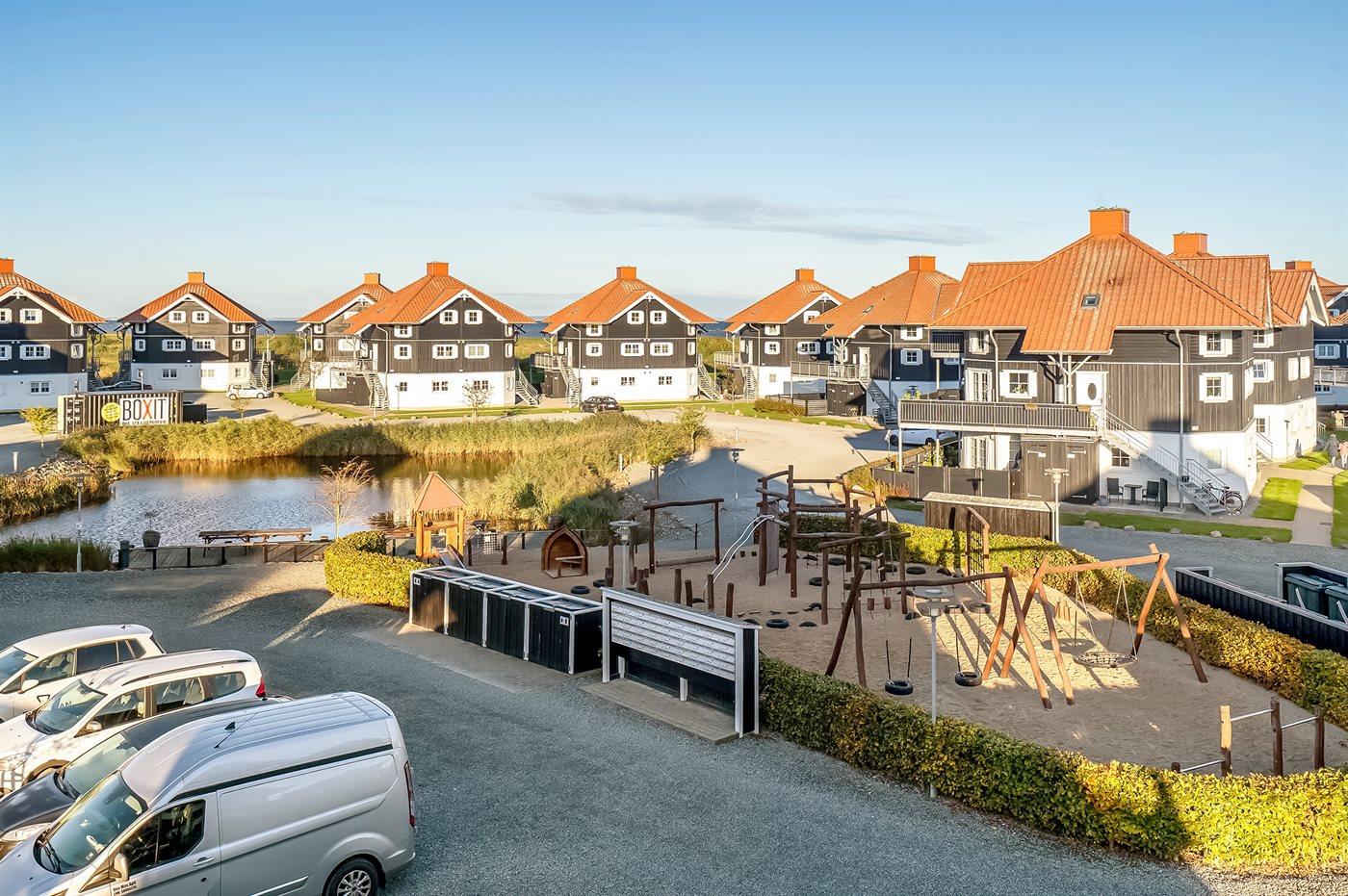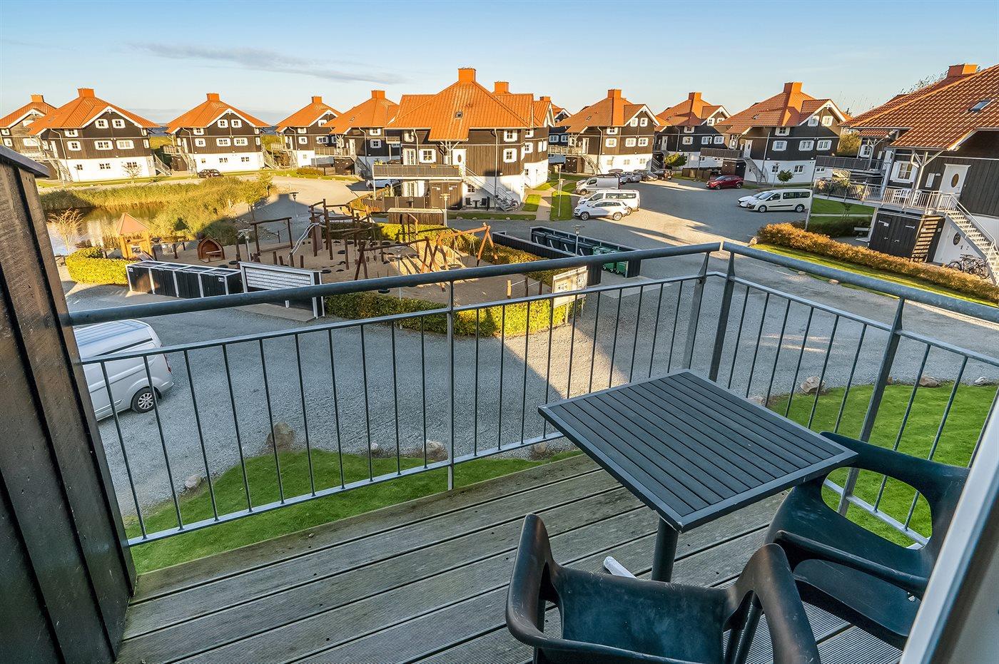 Afstand tot de zee 350 m. Afstand tot meer 35 m. Dichtstbijzijnde winkel 350 m. Er is een golfbaan op een afstand van 1500 m. Bij de vakantiewoning hoort 30 m² beschut terras. Balkon. Afstand tot speelplaats 20 m.