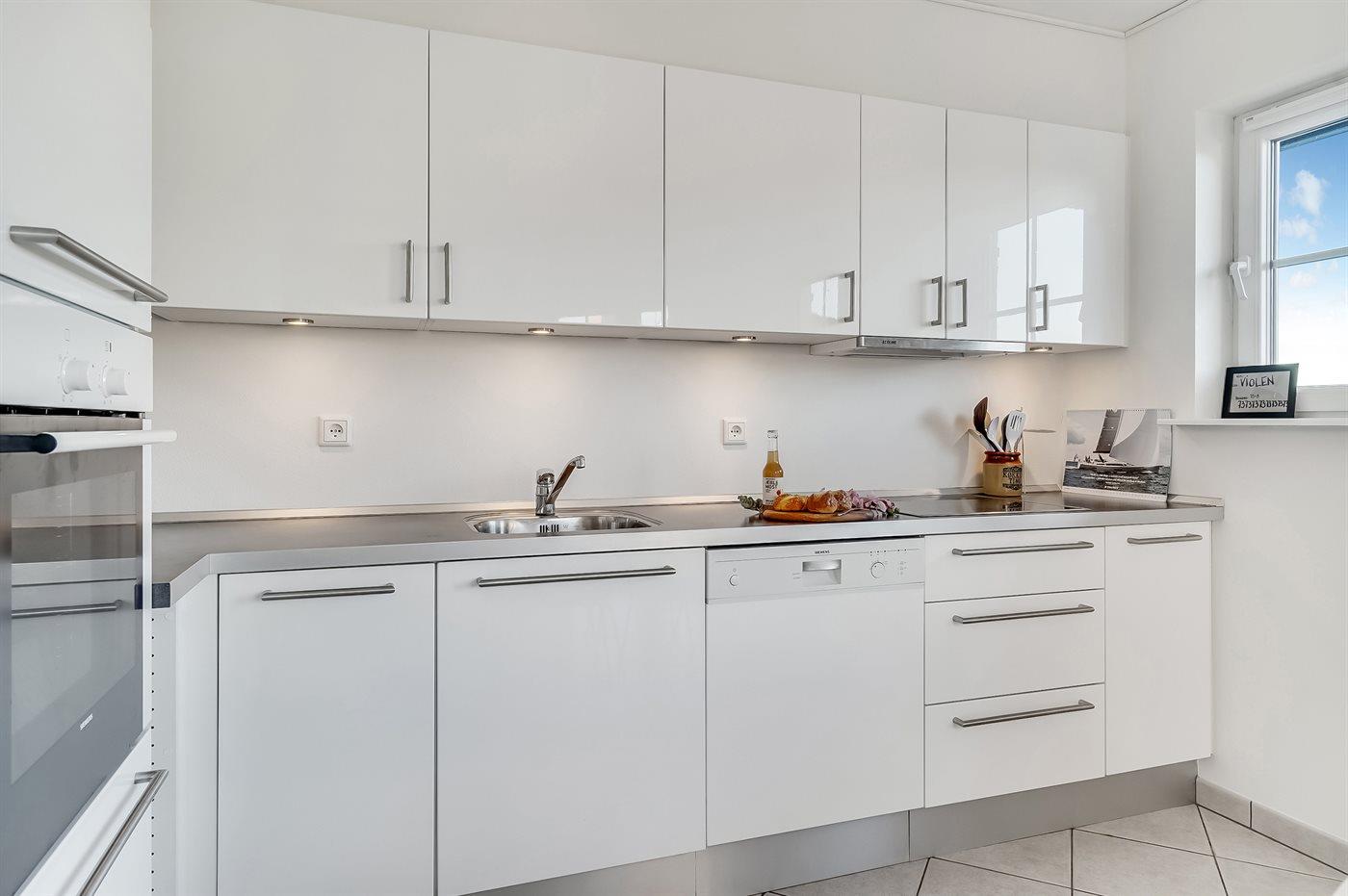 De keuken is uitgerust met koelkast Er zijn 4 keramische kookplaten, heteluchtoven, magnetron en vaatwasser.