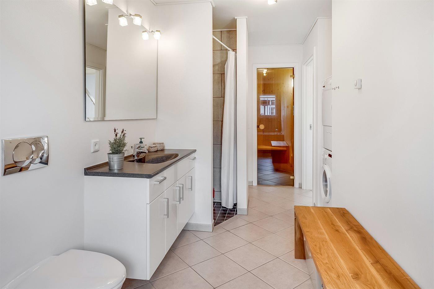 Er is 2 badkamers met douchehok en 2 toiletten. Er is vloerverwarming in 2 van de badkamers. De sauna biedt de gelegenheid tot ontspanning.