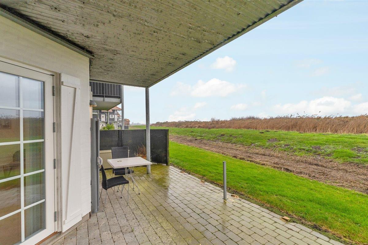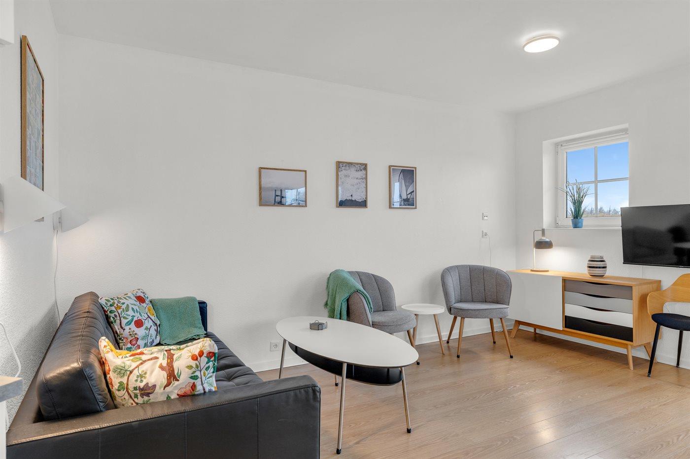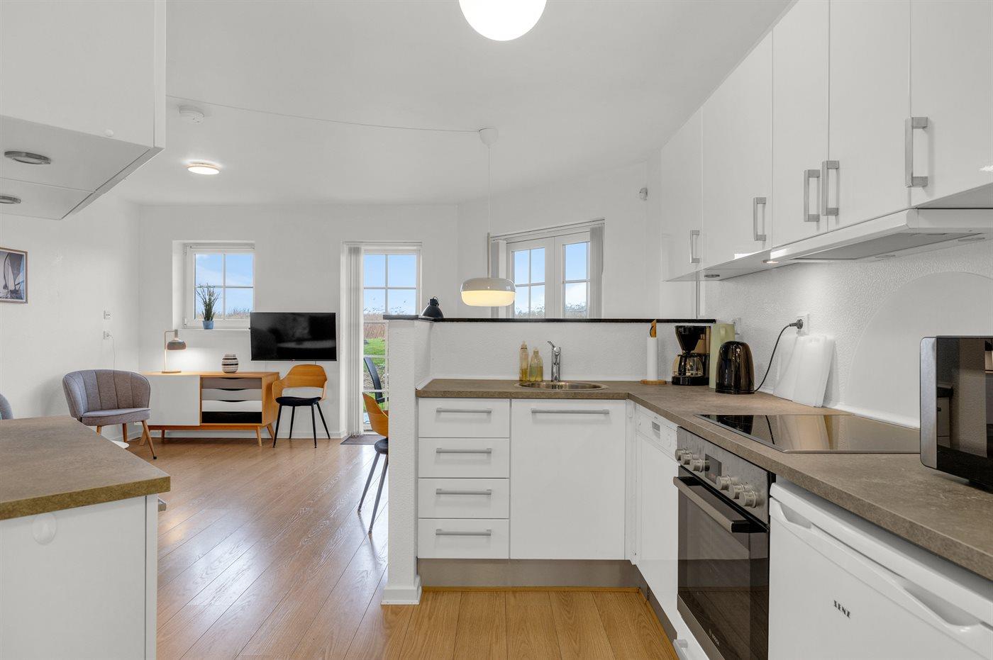 Comfortabel vakantieappartement in Bogense dicht bij zee met vloerverwarming en overdekt terras.