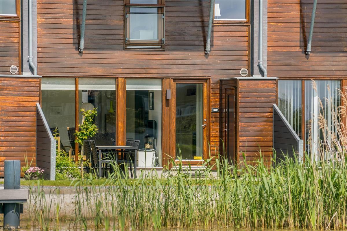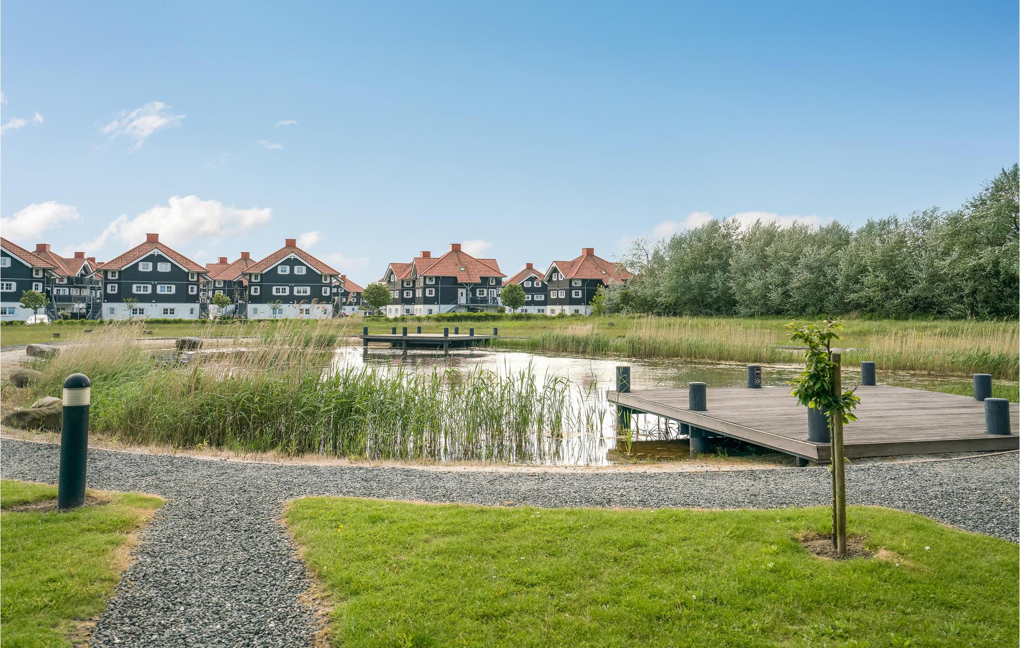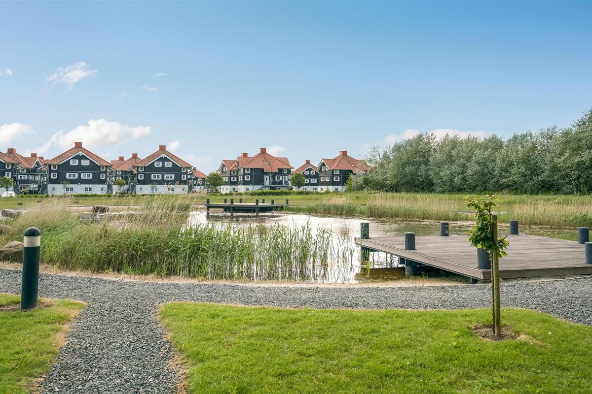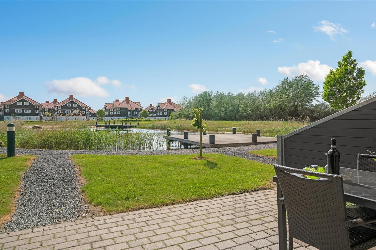 Ontspan op het open terras met uitzicht op een meertje.