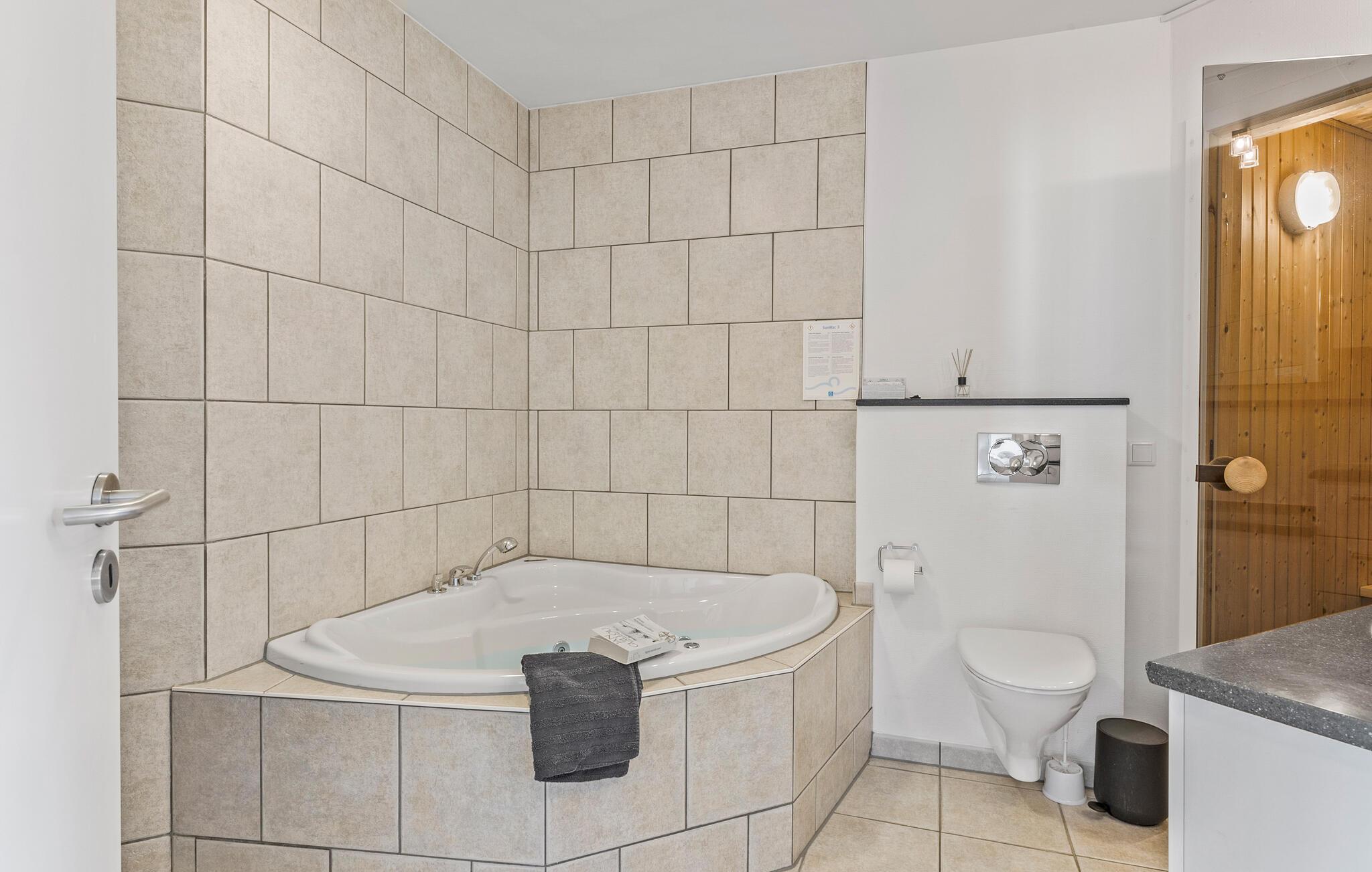 Geniet bij mooi weer van je eerste koffie van de dag op het terras. Je bevindt je op slechts een korte wandeling van het zandstrand, dat in de zomer een dagelijkse bestemming is voor zonnige zwemtochten. De kust nodigt het hele jaar door uit tot verfrissende wandelingen. In de koelere maanden vind je daarna behaaglijke warmte in de whirlpool of sauna, of je kunt gezellig voor de open haard zitten met een kopje thee.