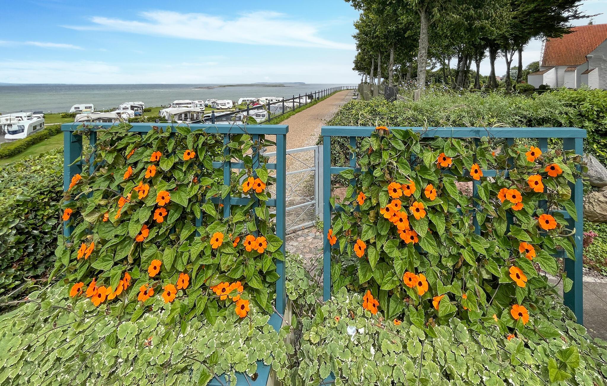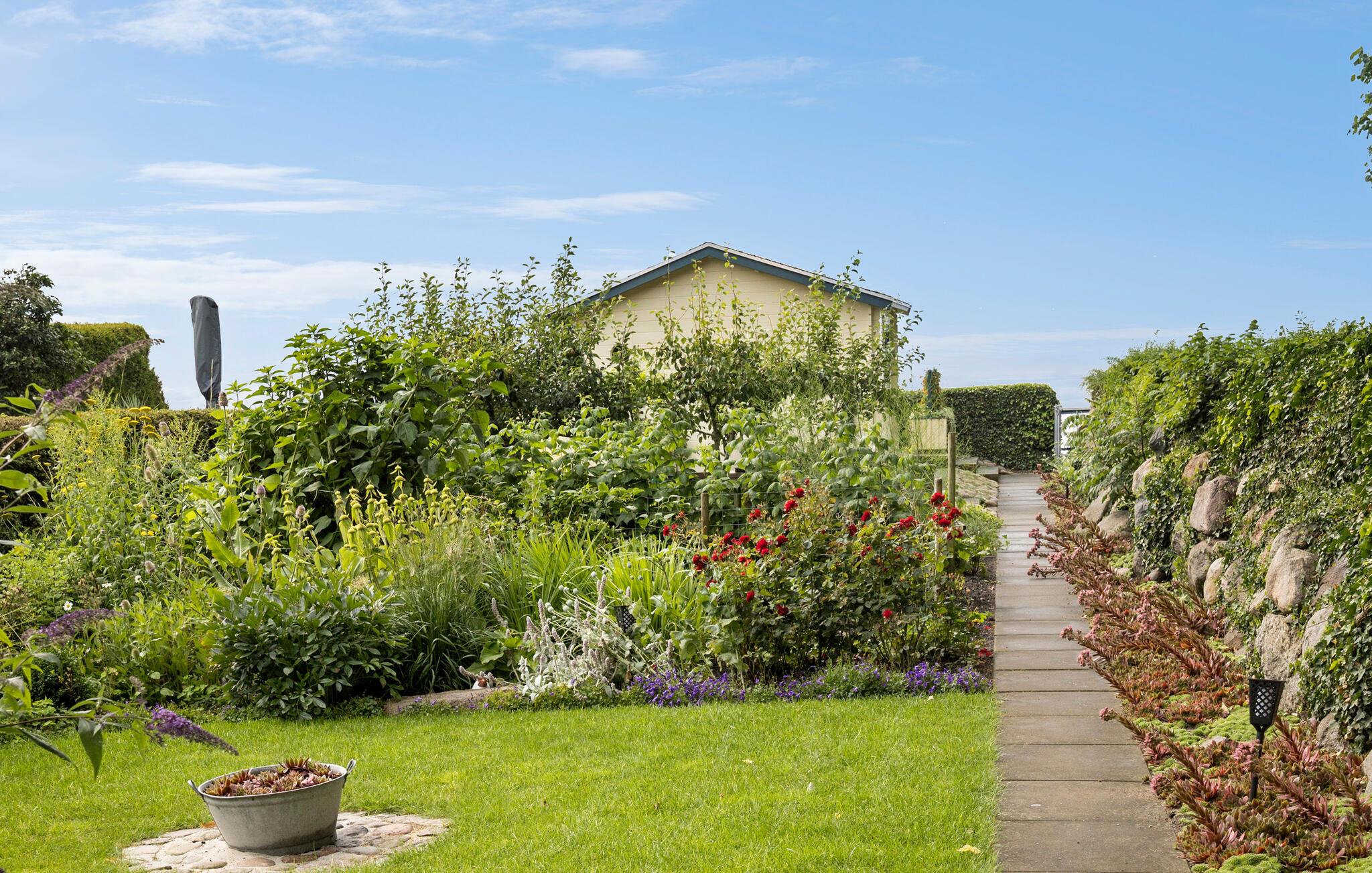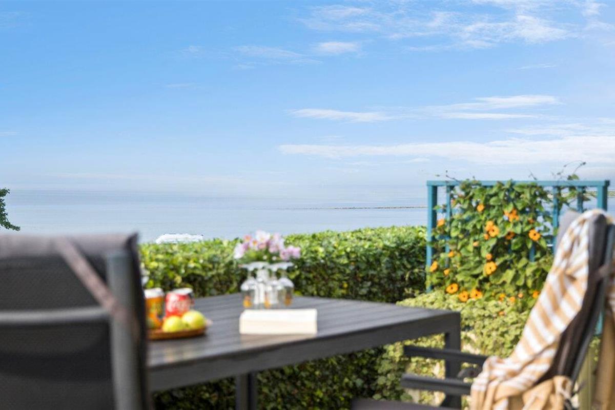 De liefdevol onderhouden privétuin leidt direct naar de zee en biedt je een adembenemend panoramisch uitzicht op het water. Geniet van je maaltijden op het terras of blijf hangen op de idyllische binnenplaats met zijn weelderige planten.